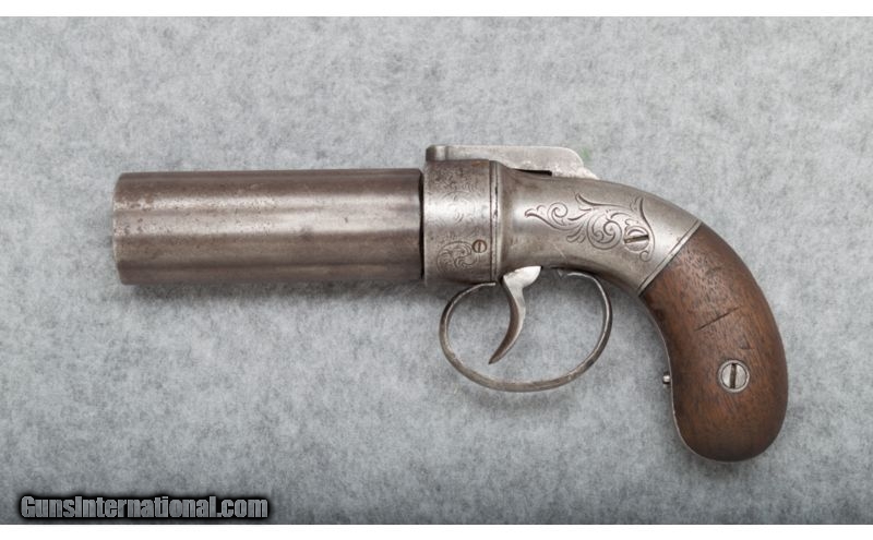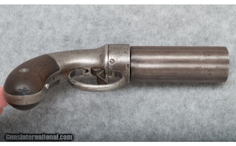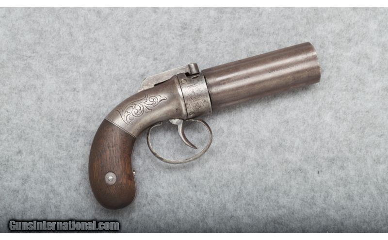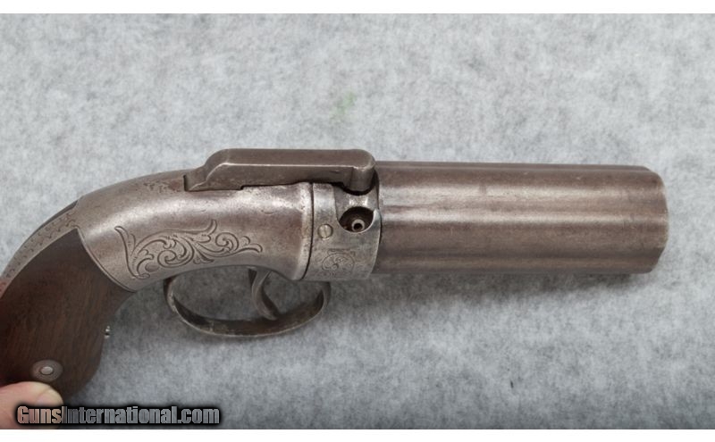 Description: SOLD Antique: Yes Manufacturer: Civil War Era Caliber Info: .32 caliber - 6 shot Chambers: Percussion - black powder Metal Condition: Brown patina, overall. Wood Condition: Good; couple of small marks Bore Condition: Good; usual fouling from black powder Barrels: 3 1/2 Triggers: Smooth; steel Stock: Smooth walnut grips Weight: 22 oz. Sights: None Item Location: Mitchell, SD |