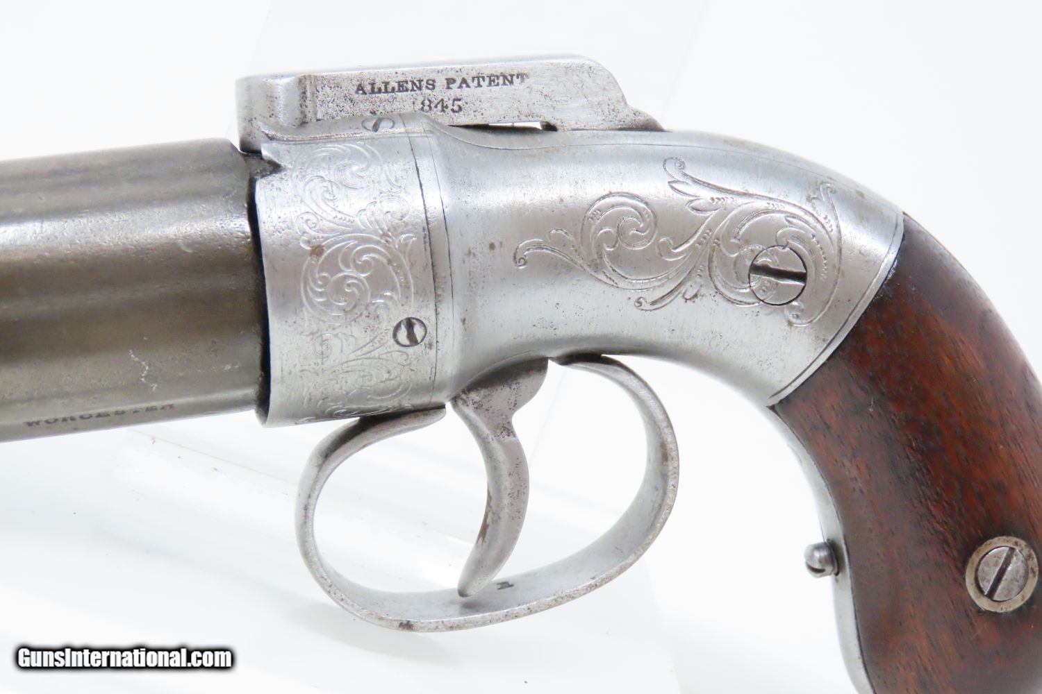 ANTIQUE Allen & Thurber WORCHESTER PERIOD .32 Bar Hammer PEPPERBOX Revolver First American Double Action Revolving Percussion Pistol