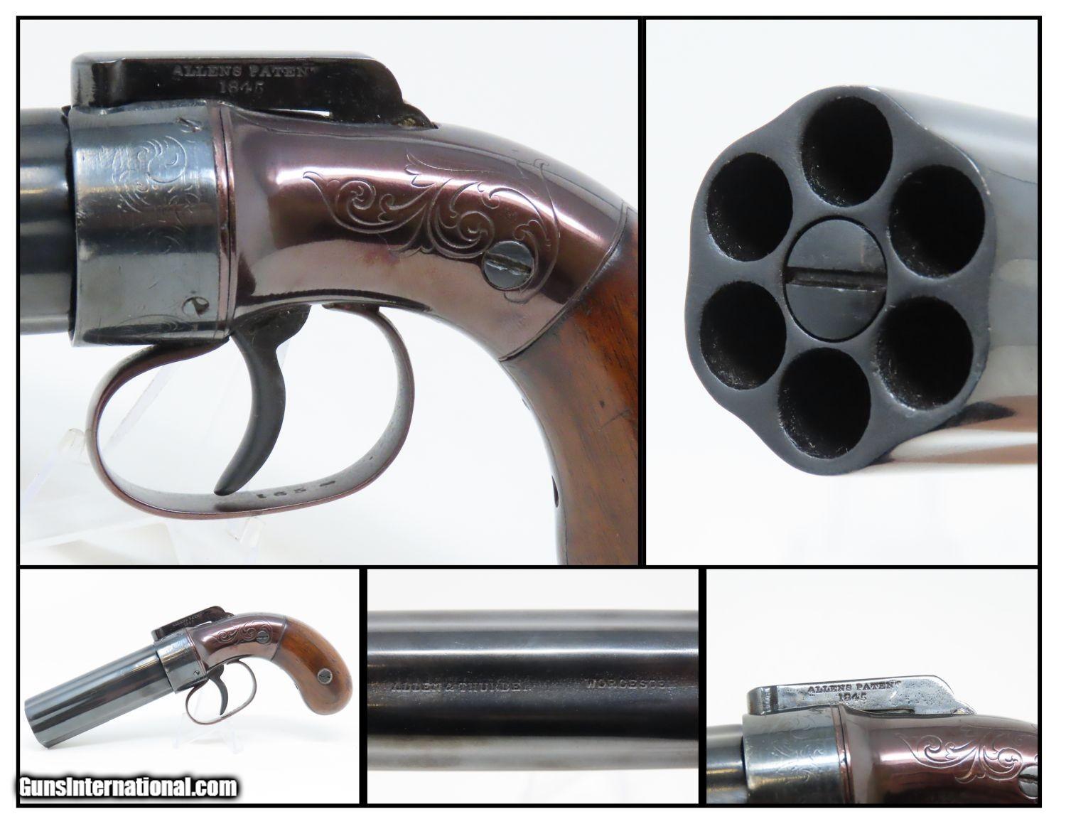 ANTIQUE Allen & Thurber WORCHESTER PERIOD Bar Hammer PEPPERBOX Revolver First American Double Action Revolving Pistol