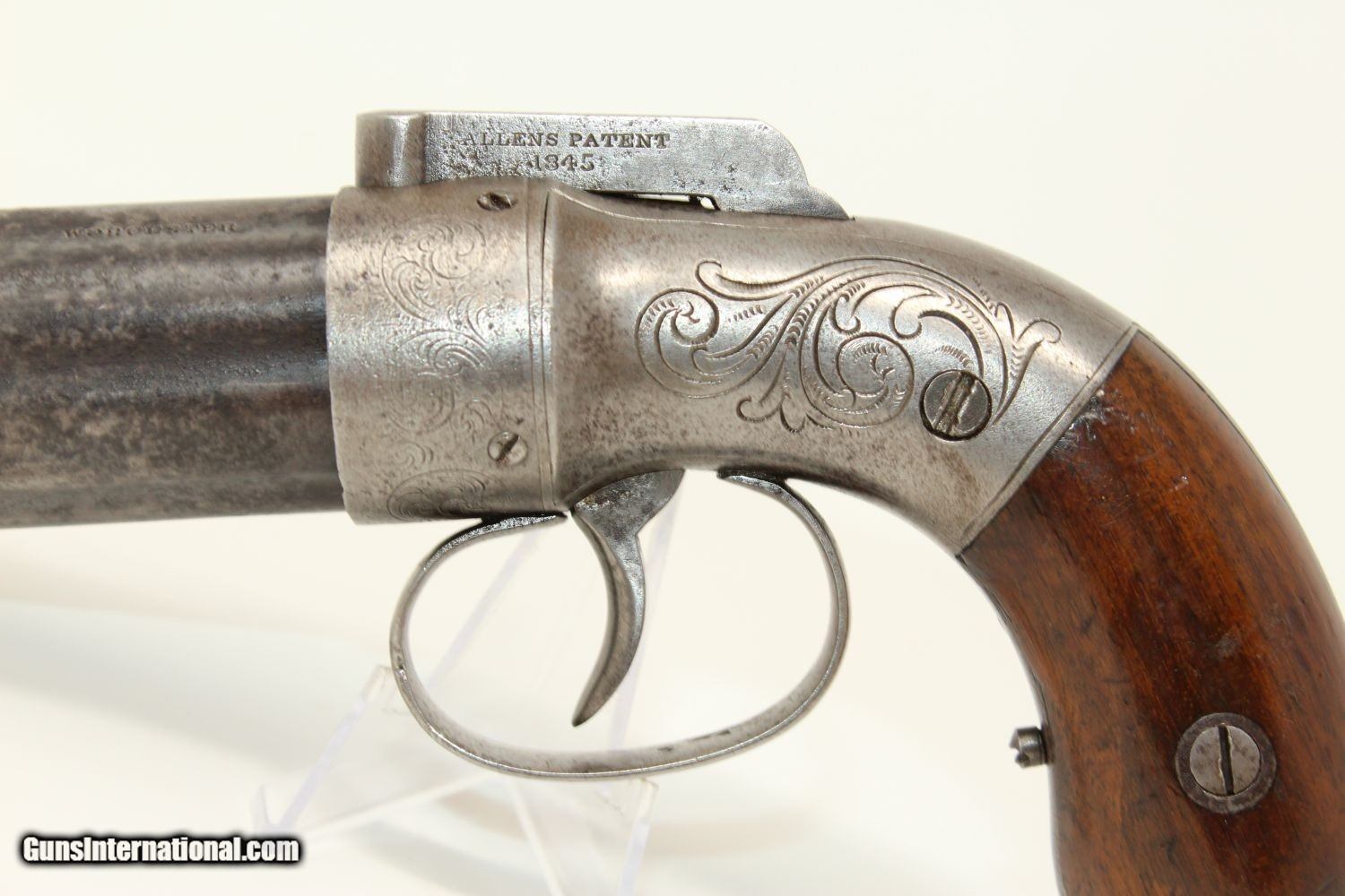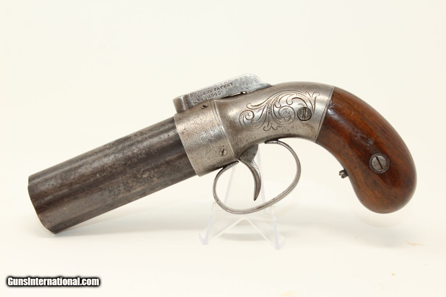 ANTIQUE c1850 Allen & Thurber Bar Hammer PEPPERBOX First American Double Action Revolving Pistol