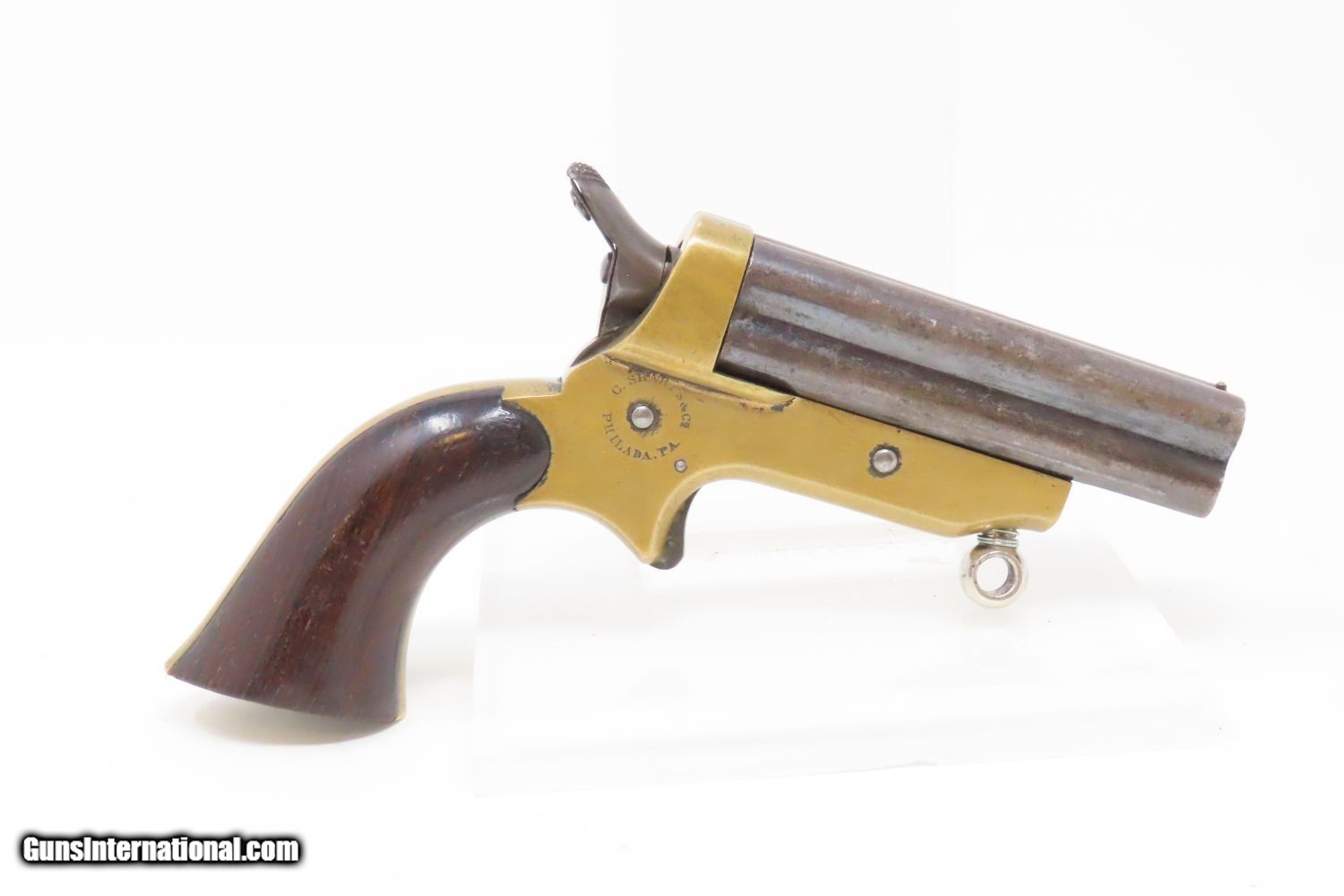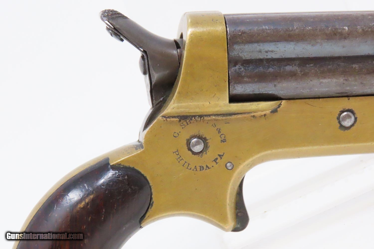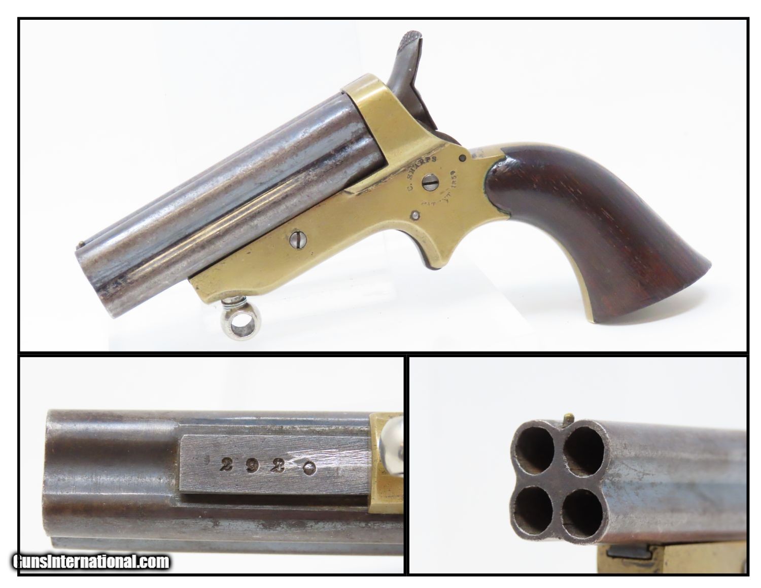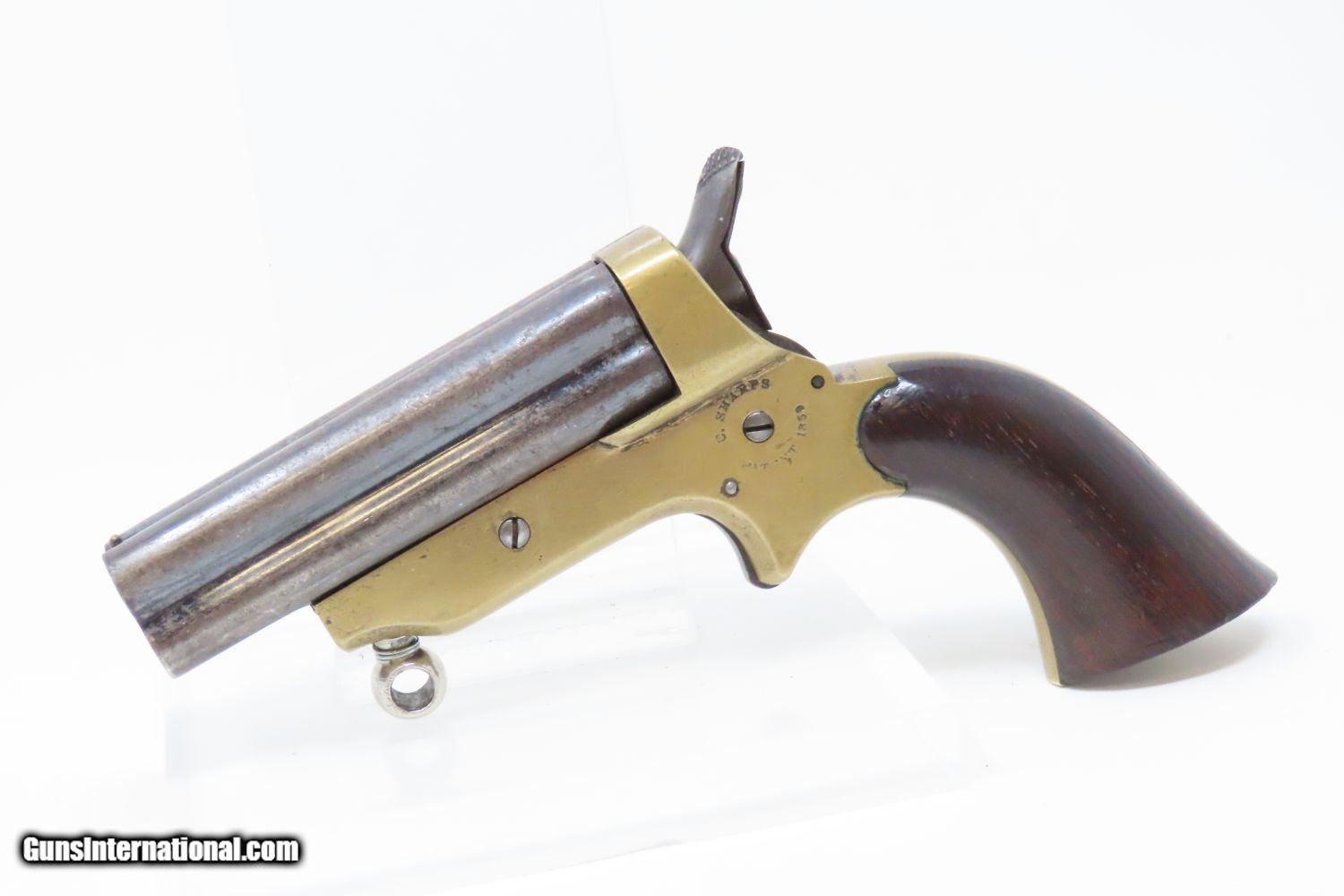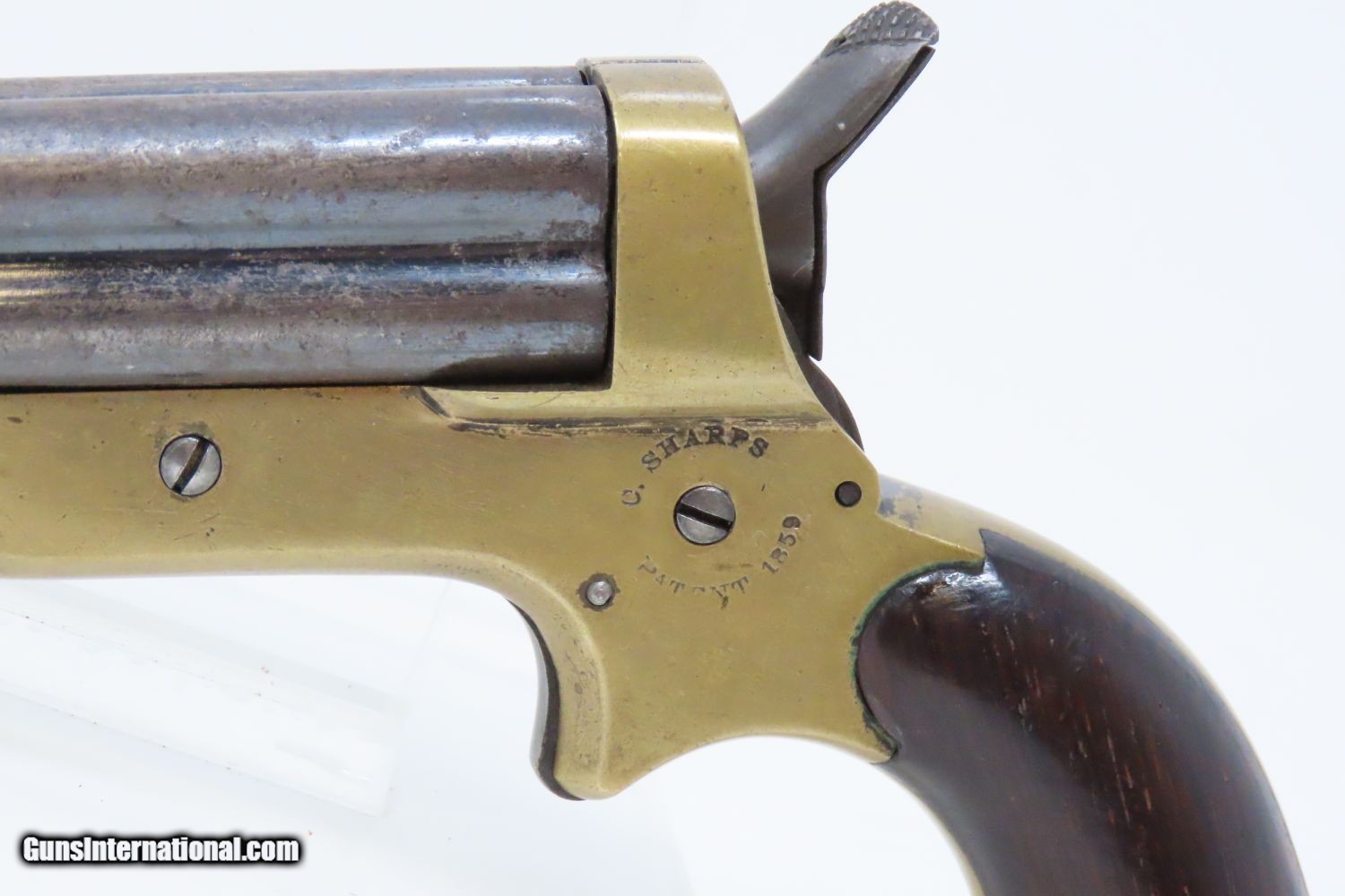Antique CIVIL WAR Era C. SHARPS Model 2 .30 Cal. Rimfire PEPPERBOX Revolver 4 Shot Self Defense Pocket Gun with Rosewood Grips
