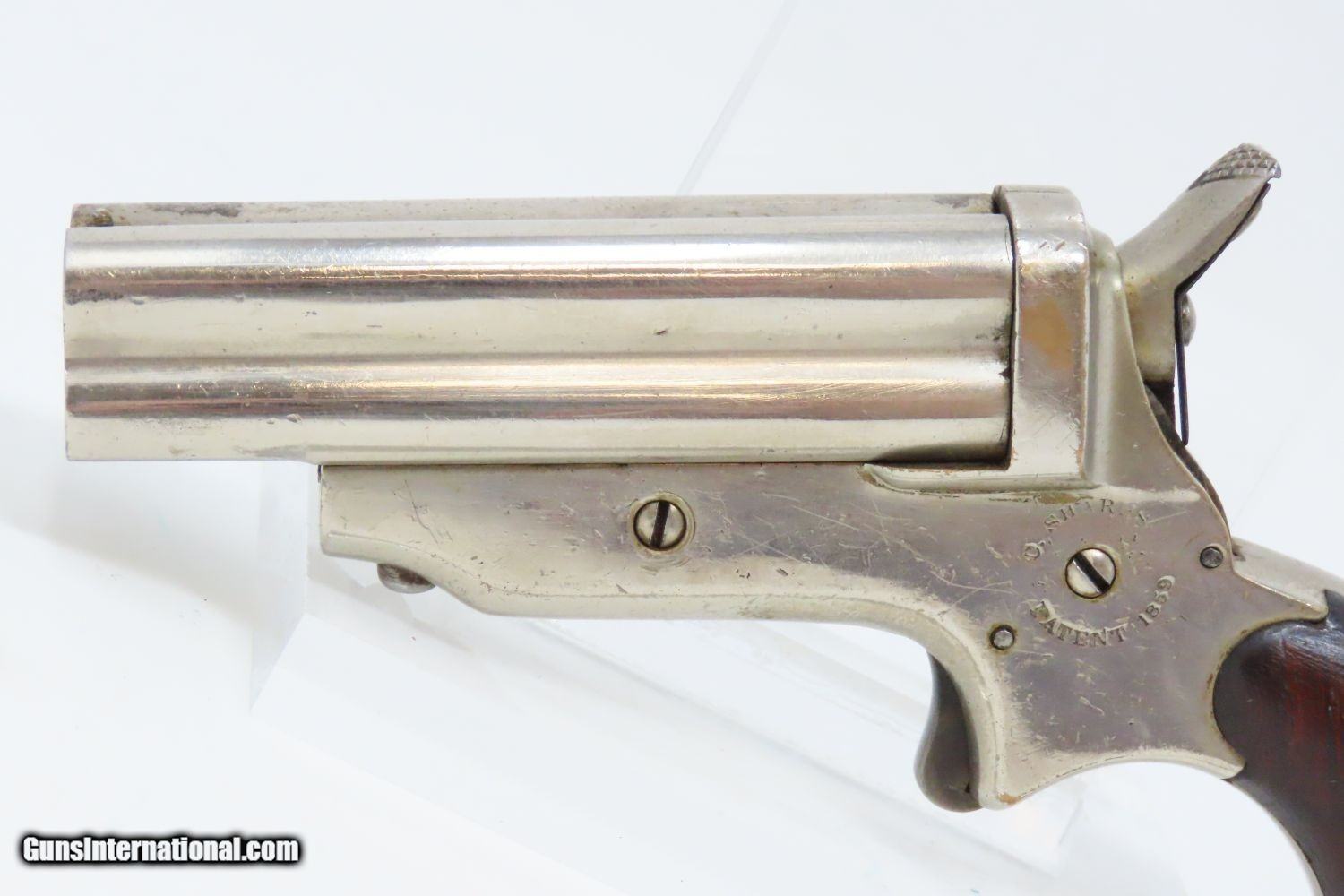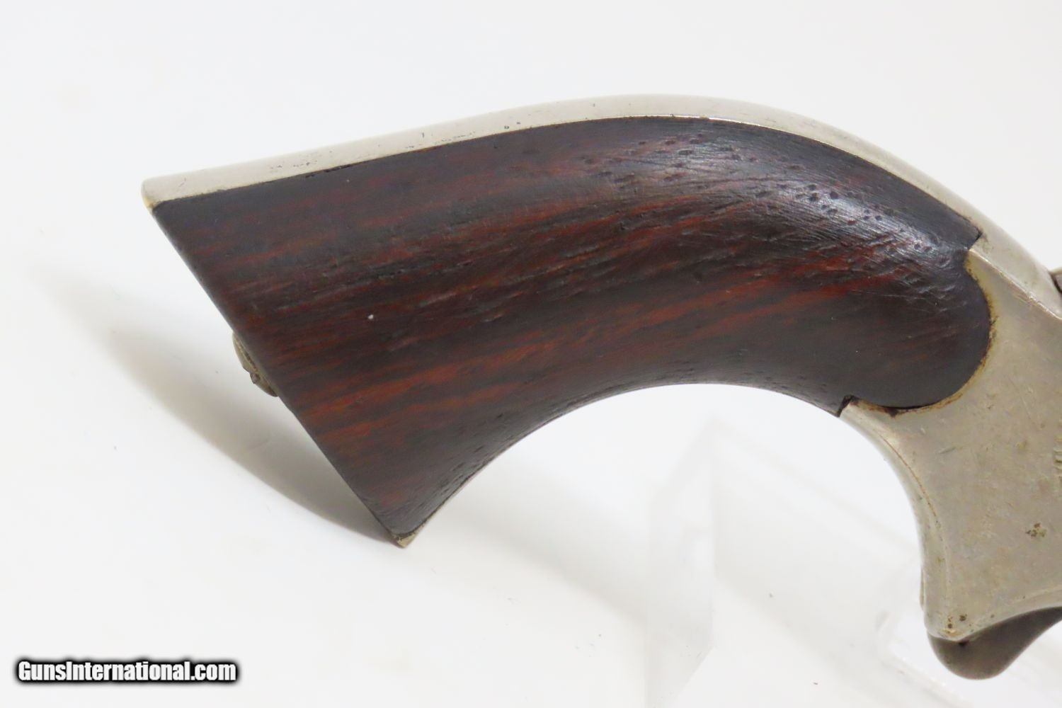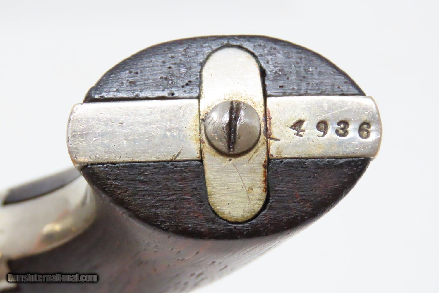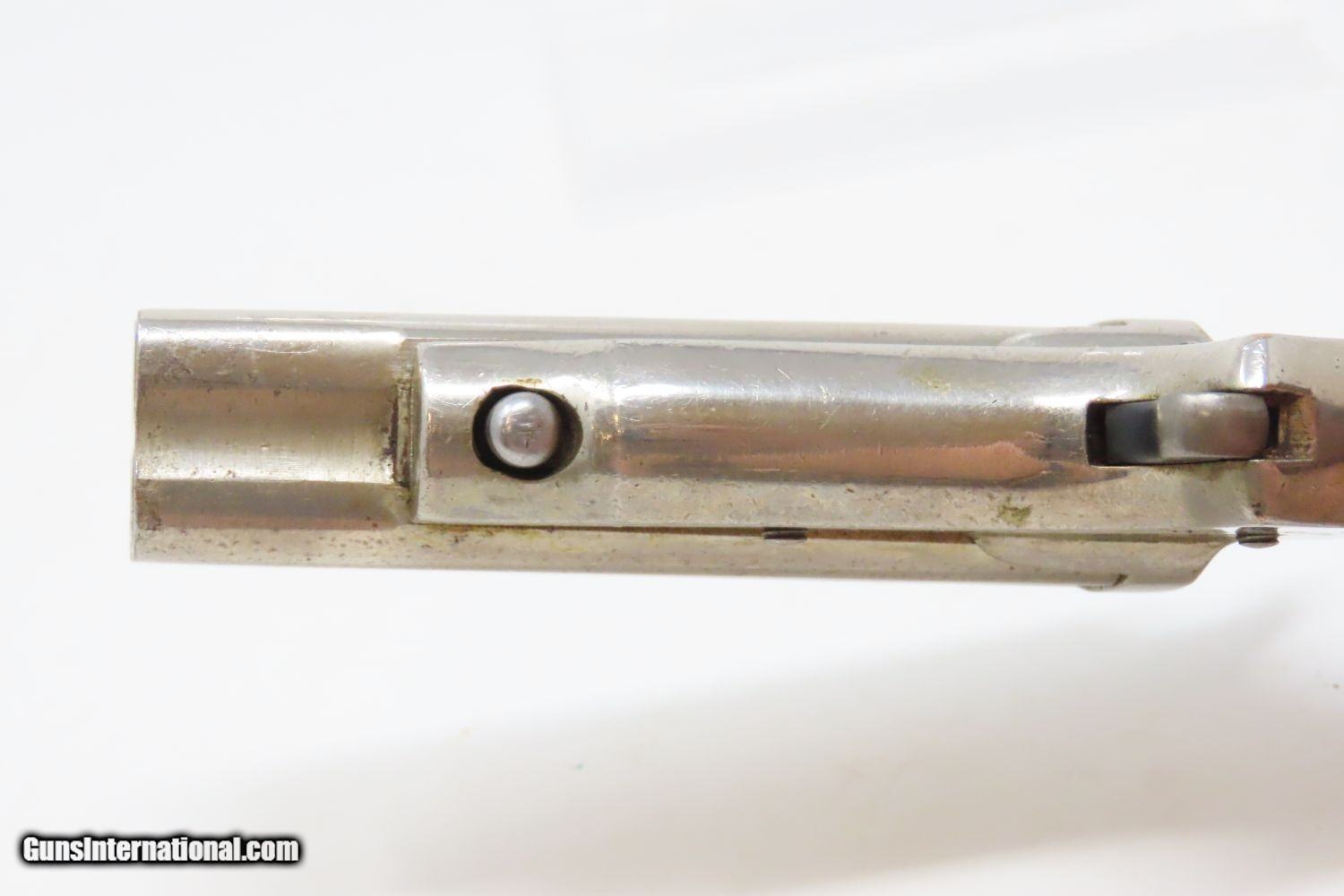 Description: Antique CIVIL WAR Era SHARPS Model 2 .30 Caliber Rimfire PEPPERBOX Revolver 4 Shot Self Defense Pocket Gun Here we present an antique C. Sharps Model 2 Pepperbox Revolver in .30 Rimfire, made circa 1859 to 1862 in Philadelphia, Pennsylvania. Christian Sharps invented his famously namesake large bore, breech-loading rifle in 1848, after practicing gun-making under John Hall at Harpers Ferry Armory. In 1859, he premiered another unique design in the 4-barreled pepperbox pistol with a unique revolving firing pin, made for 19th Century concealed carry. This repeating design was able to utilize the new rimfire ammunition like Smith & Wesson, without infringing on Smith & Wesson’s Rollin White Patent for bored through chambers on a revolver’s cylinder. This gave Sharps a leg up in the market since everyone else either had to produce single shot pistols, come up with an alternate ammunition and weapon design, or just stick with percussion until the patent expired. They made very nice, easy to use and compact firearms for 19th Century conceal and carry! The overall condition is near fine. The nickel finish is virtually complete. The action is strong and tight, although the hammer does not sit in its fully cocked position. The bores are bright with light frosting. Both grips are solid with minimal handling marks and well-defined grains. The markings are mostly legible, although have faded on the right frame. The numbers match. A gorgeous little pistol! Own the original! This is a legitimate antique and not a reproduction. Barrel is 3 inches. Caliber: .30 Rimfire Overall condition as seen in photos. Very Fast. Very Safe. FREE SHIPPING WORLDWIDE. Delivered directly to your door by express mail! Guaranteed AUTHENTIC & Includes CERTIFICATE OF AUTHENTICITY. ancestryguns $1145 #201246 SOLD Antique: Yes |