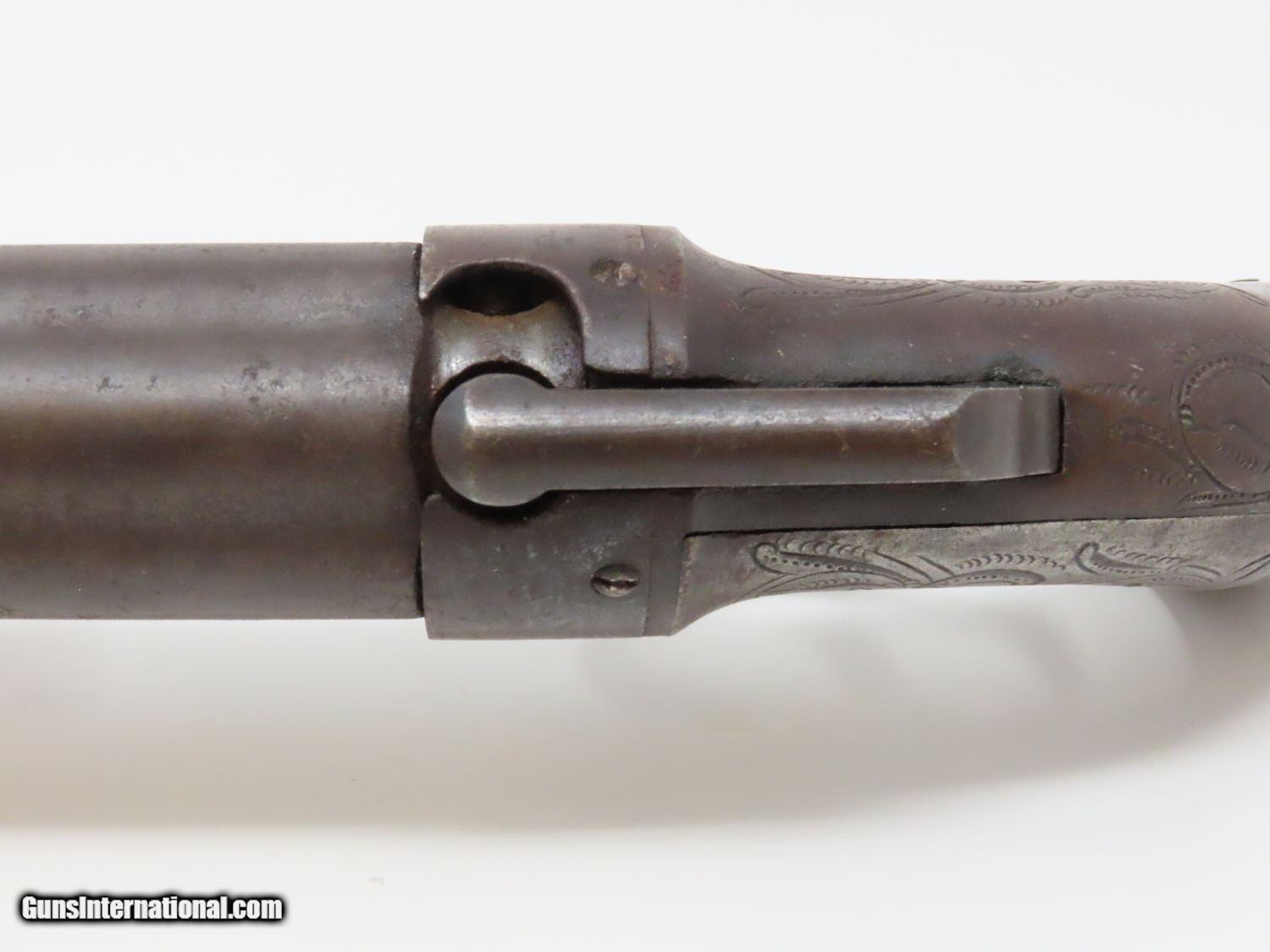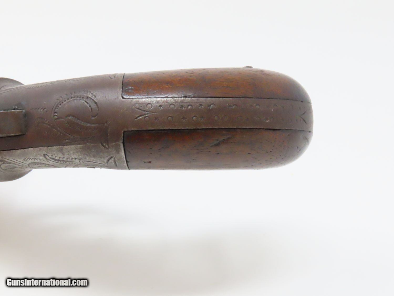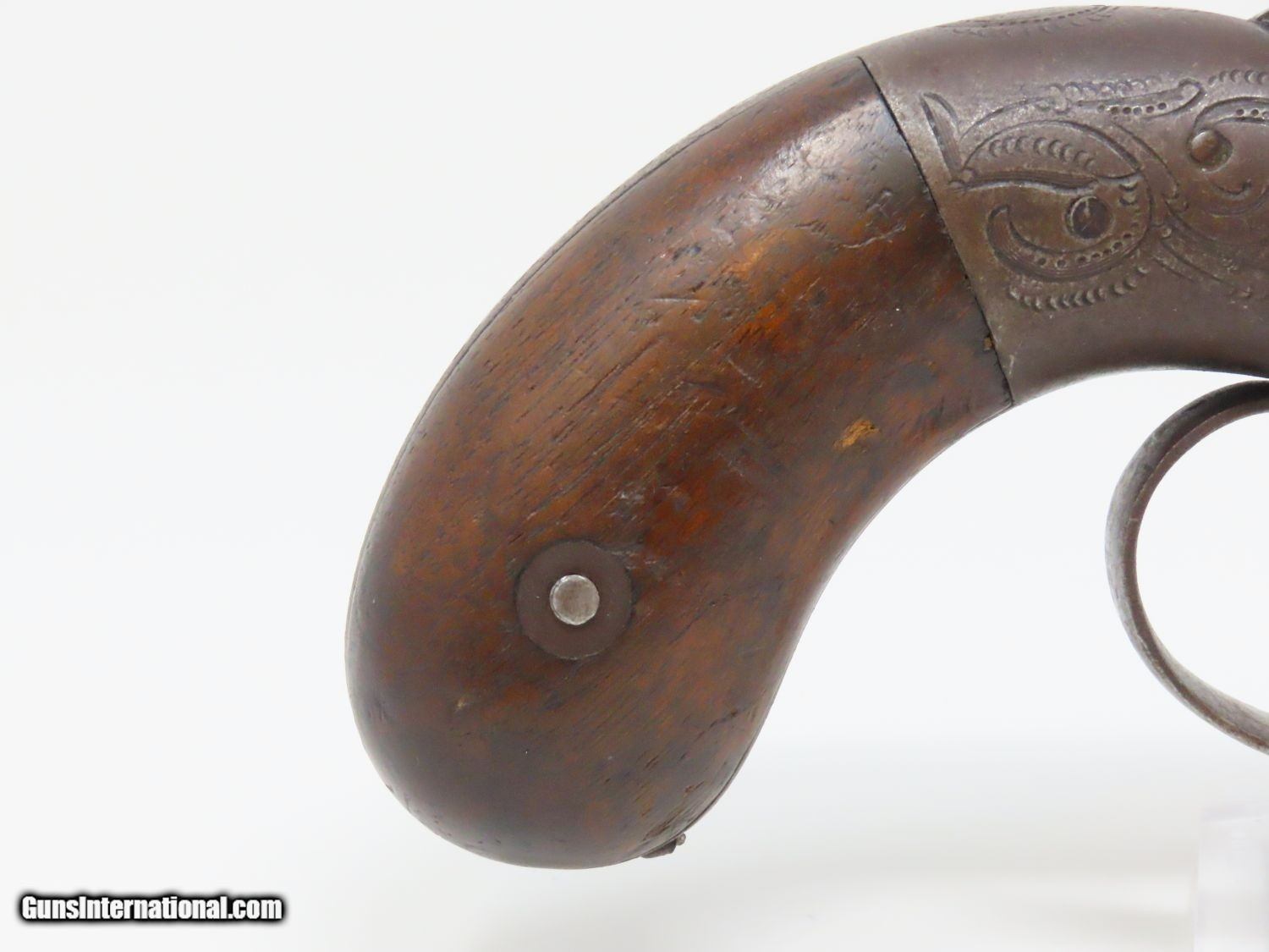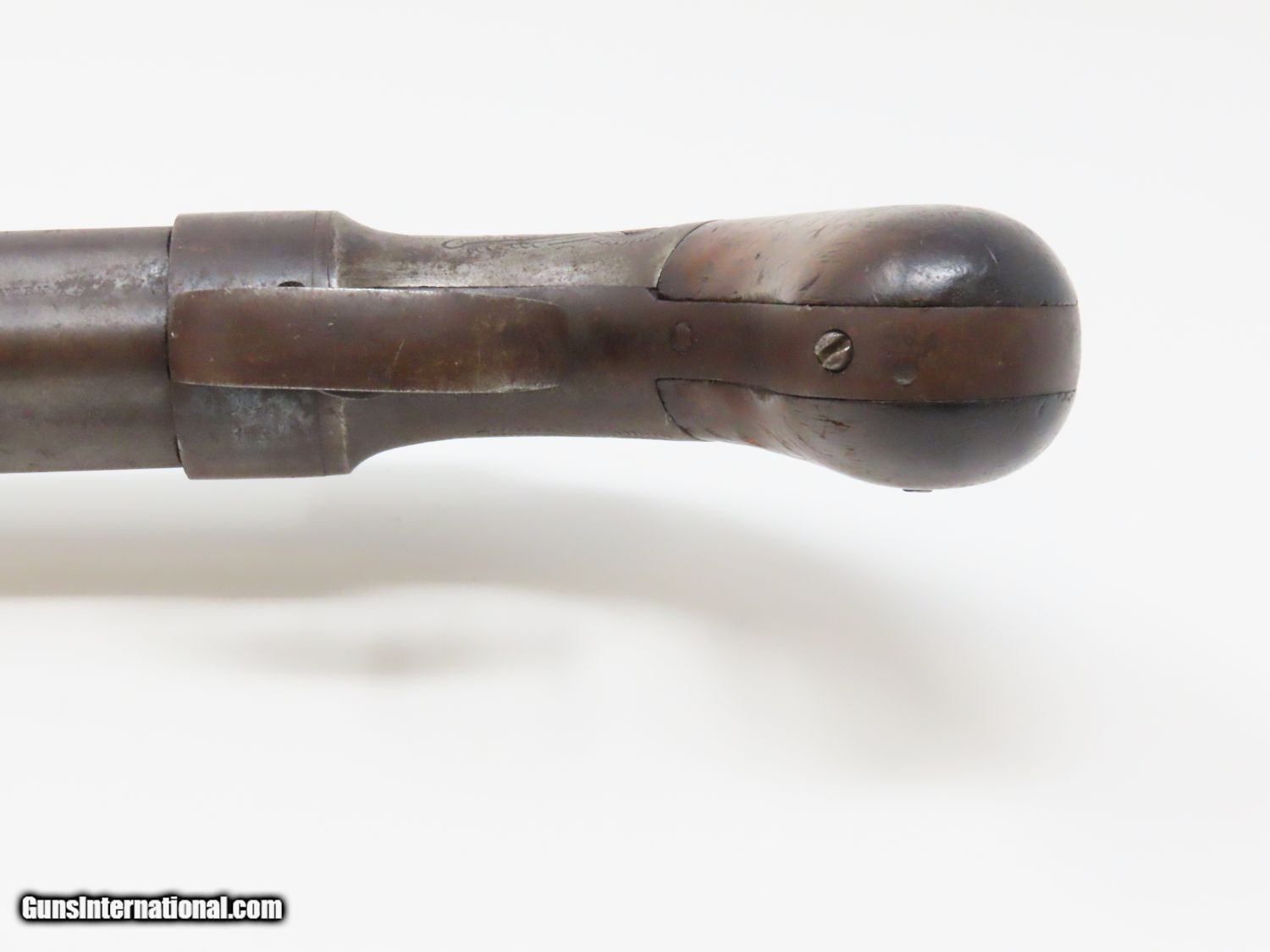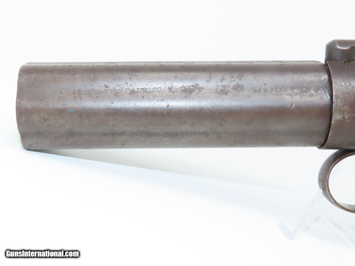 Description: Antique MANHATTAN Six Barrel BAR HAMMER Percussion PEPPERBOX Revolver ANTEBELLUM Production Revolver from Norwich, Conn. Here we present an antique Manhattan 6-Barrel Bar Hammer Pepperbox Percussion Revolver, made circa 1856-59, just prior the American Civil War, in Norwich, Connecticut. Manhattan Fire Arms Co. was founded in 1856 specifically to capitalize on the soon to be expiring Colt patents in 1857. This strategy worked very well for the company and they began by making high quality and very close copies of both Colts and other popular pistols with expired patents. In fact, Manhattan’s copies of Colts were so close that Colt tried to kill their production with a lawsuit, even though their patent had expired. This revolver was closely patterned after Ethan Allen’s famous and pioneering pepperbox design that garnered huge success from the 1830s to the 1860s. The overall condition is very good. The action is strong. The bores are in good shape. The frame is lightly engraved with traditional floral designs. Own the original! This is a legitimate antique and not a reproduction. Barrel is 4-1/4 inches. Caliber: .31 Overall condition as seen in photos. Very Fast. Very Safe. FREE SHIPPING WORLDWIDE. Delivered directly to your door by express mail! Guaranteed AUTHENTIC & Includes CERTIFICATE OF AUTHENTICITY. ancestryguns $1375 #20078 SOLD Antique: Yes |