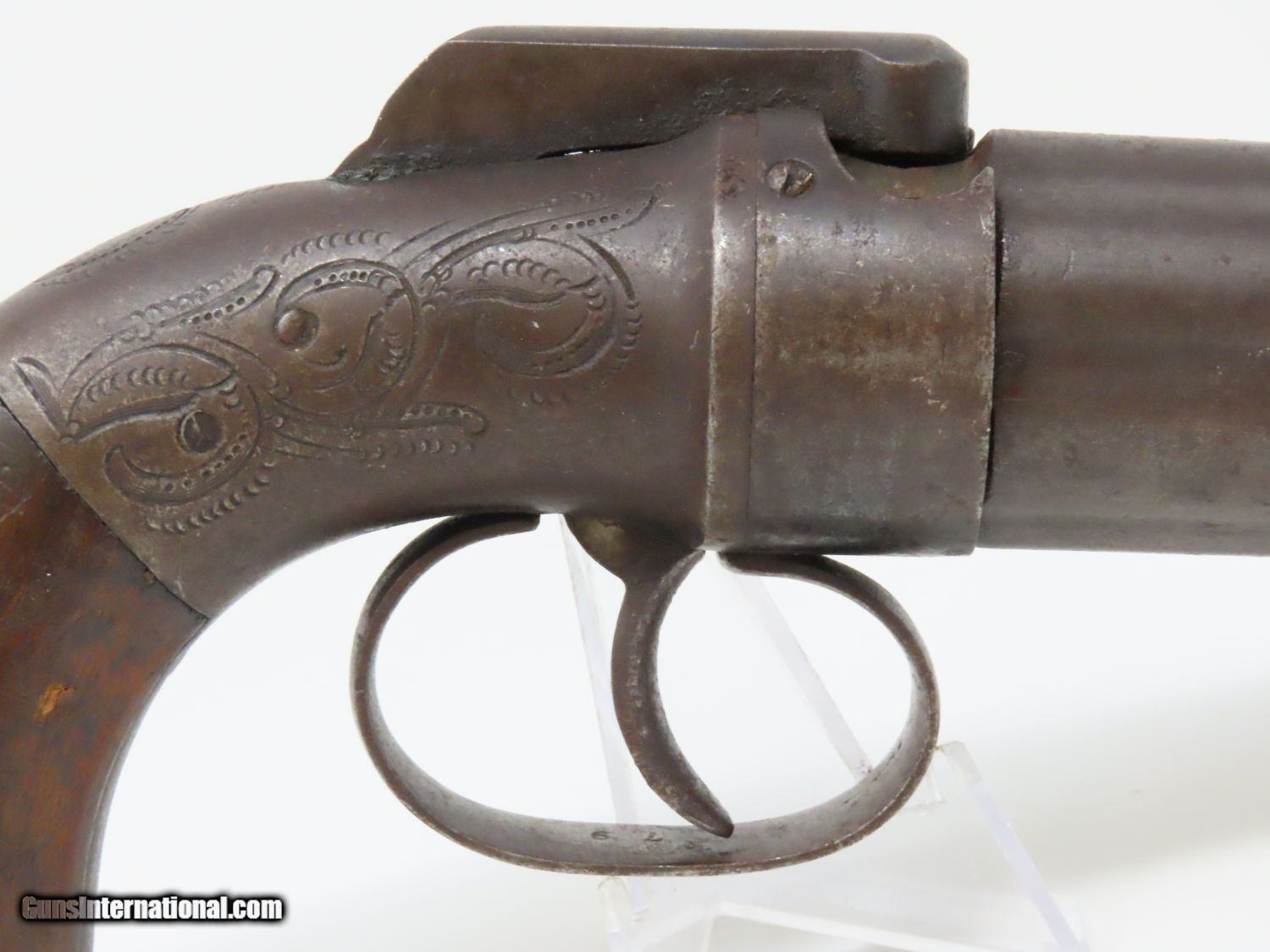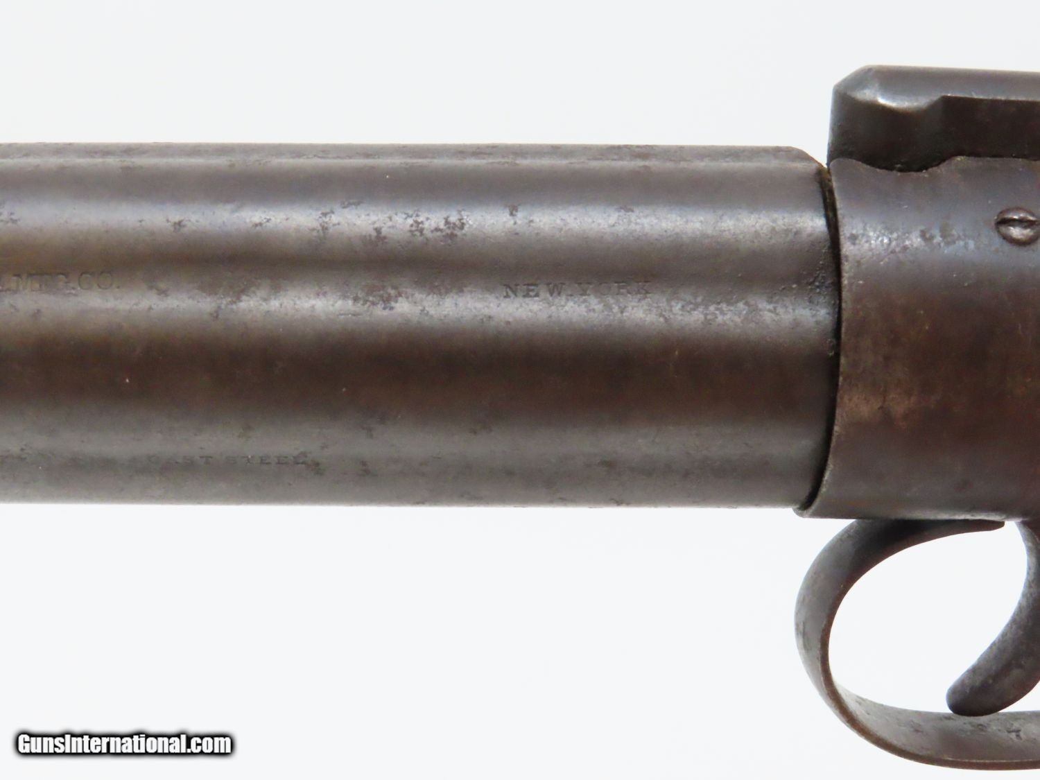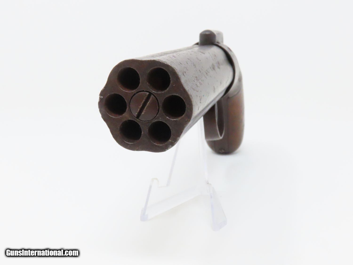 Antique MANHATTAN Six Barrel BAR HAMMER Percussion PEPPERBOX Revolver ANTEBELLUM Production Revolver from Norwich, Conn.