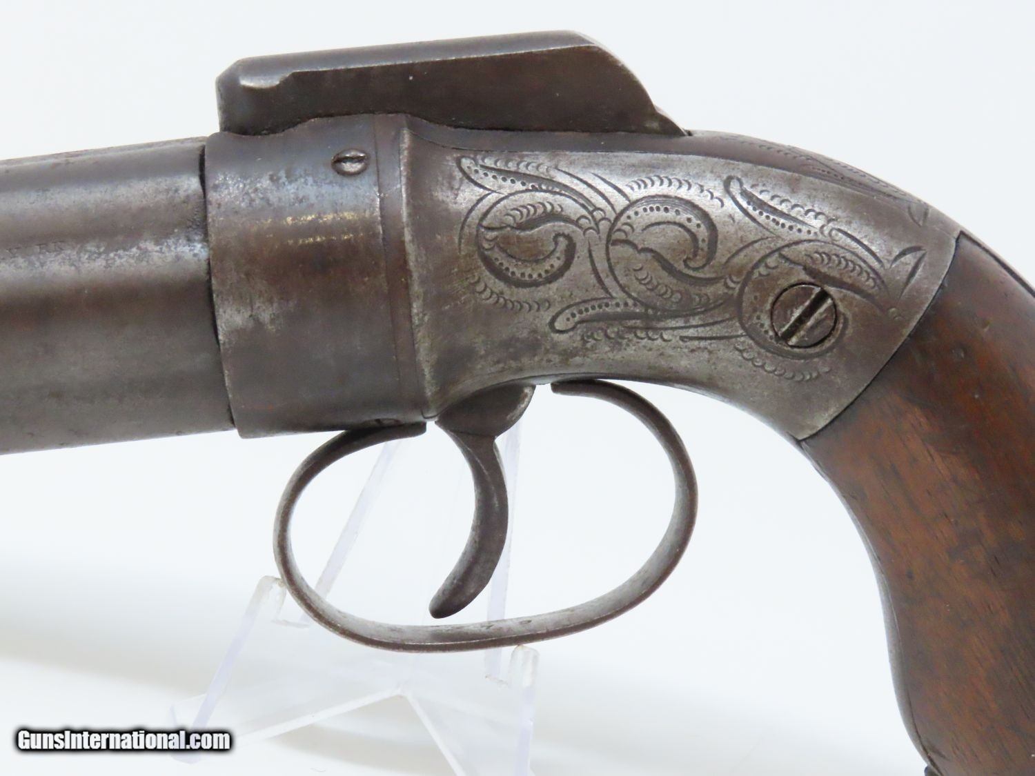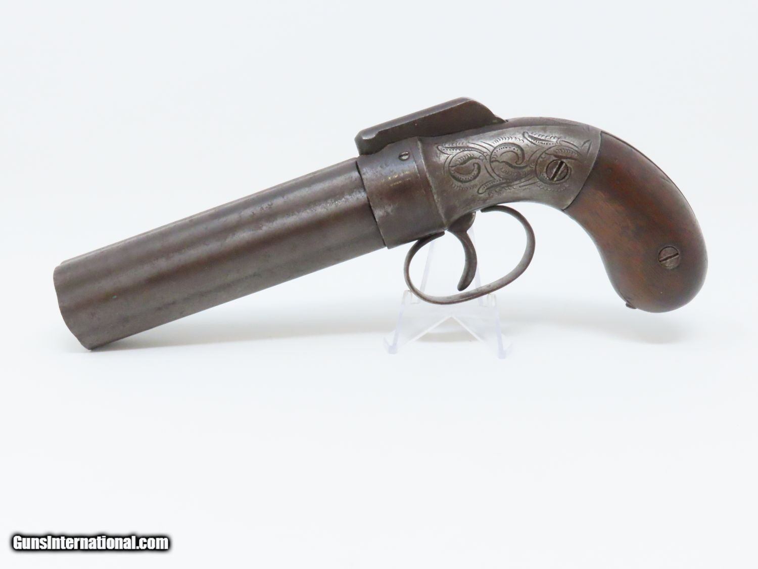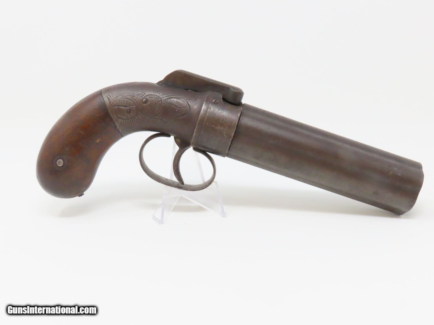 Antique MANHATTAN Six Barrel BAR HAMMER Percussion PEPPERBOX Revolver ANTEBELLUM Production Revolver from Norwich, Conn.