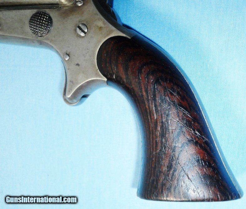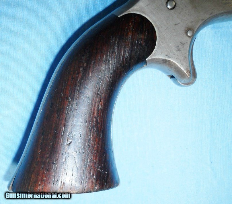 Description: ANTIQUE SHARPS & HANKINS .32 RF CALIBER PEPPERBOX DERINGER PISTOL. 3 1/2" BARREL CLUSTER, GOOD BORES WITH DISTINCT RIFLING & SCATTERED PITTING. METAL SURFACES MOSTLY A SMOOTH EVEN GRAY PATINA SHOWING SOME DARKER BLUE/GRAY IN THE FLUTES. FACTORY MARKINGS REMAIN QUITE CRISP & CLEAR. ALL MATCHING SERIAL NUMBERS INCLUDING FACTORY ROSEWOOD GRIPS CORRECTLY NUMBERED TO THE GUN AND IN VERY GOOD CONDITION HAVING WORN FINISH AND A FEW DINGS & HANDLING MARKS. BARREL TO FRAME FIT IS SOLID AND HAMMER FUNCTION IS CRISP. GOOD LOOKING EXAMPLE OVERALL, AS PICTURED. SHIPS DIRECT TO BUYER ALL 50 WHERE OK ! S&H $18.00 INSURED UP TO $500.00 SOLD Antique: Yes Manufacturer: SHARPS & HANKINS Caliber Info: .32 RF Condition: VERY GOOD Metal Condition: VERY GOOD Wood Condition: FINE |