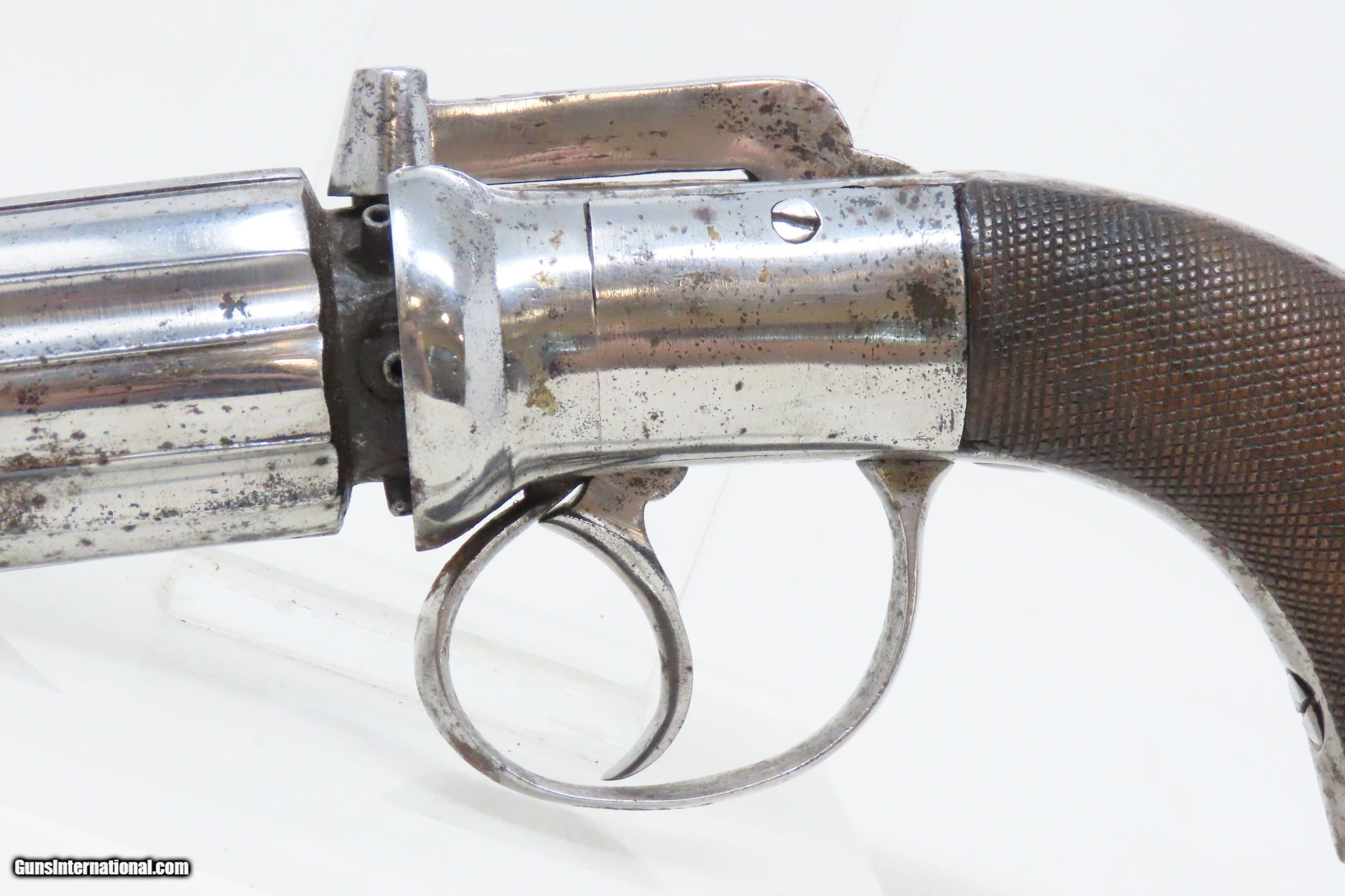 BRITISH PROOFED Antique .32 Cal. Bar Hammer Percussion PEPPERBOX Revolver