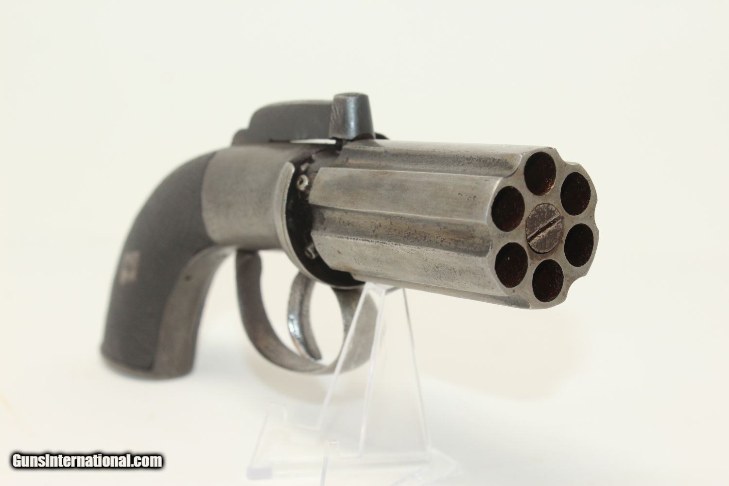 CASED Engraved BRITISH Antique PEPPERBOX Revolver 1840s 6-Shot Pepperbox Revolver with Multiple Accessories!