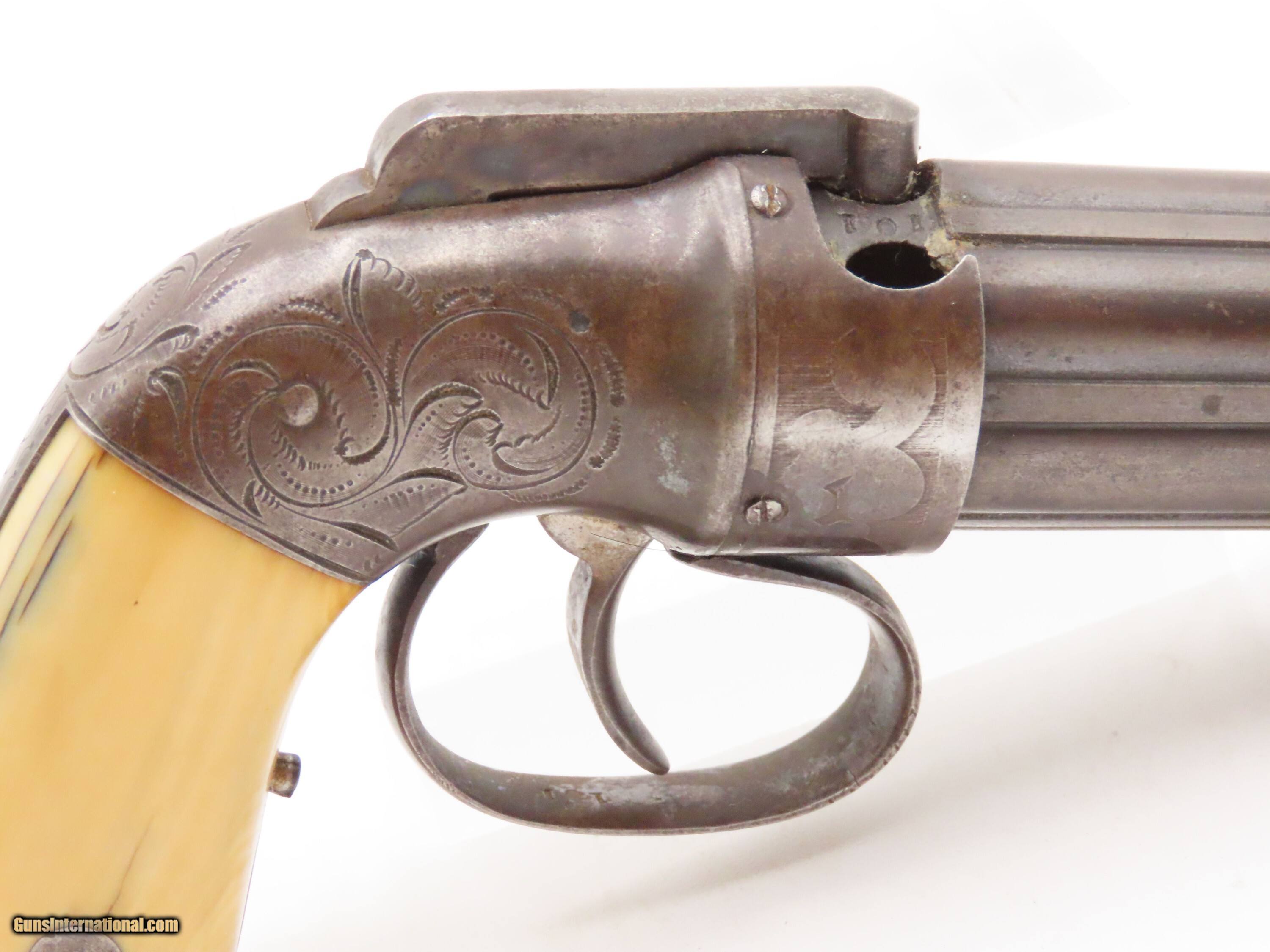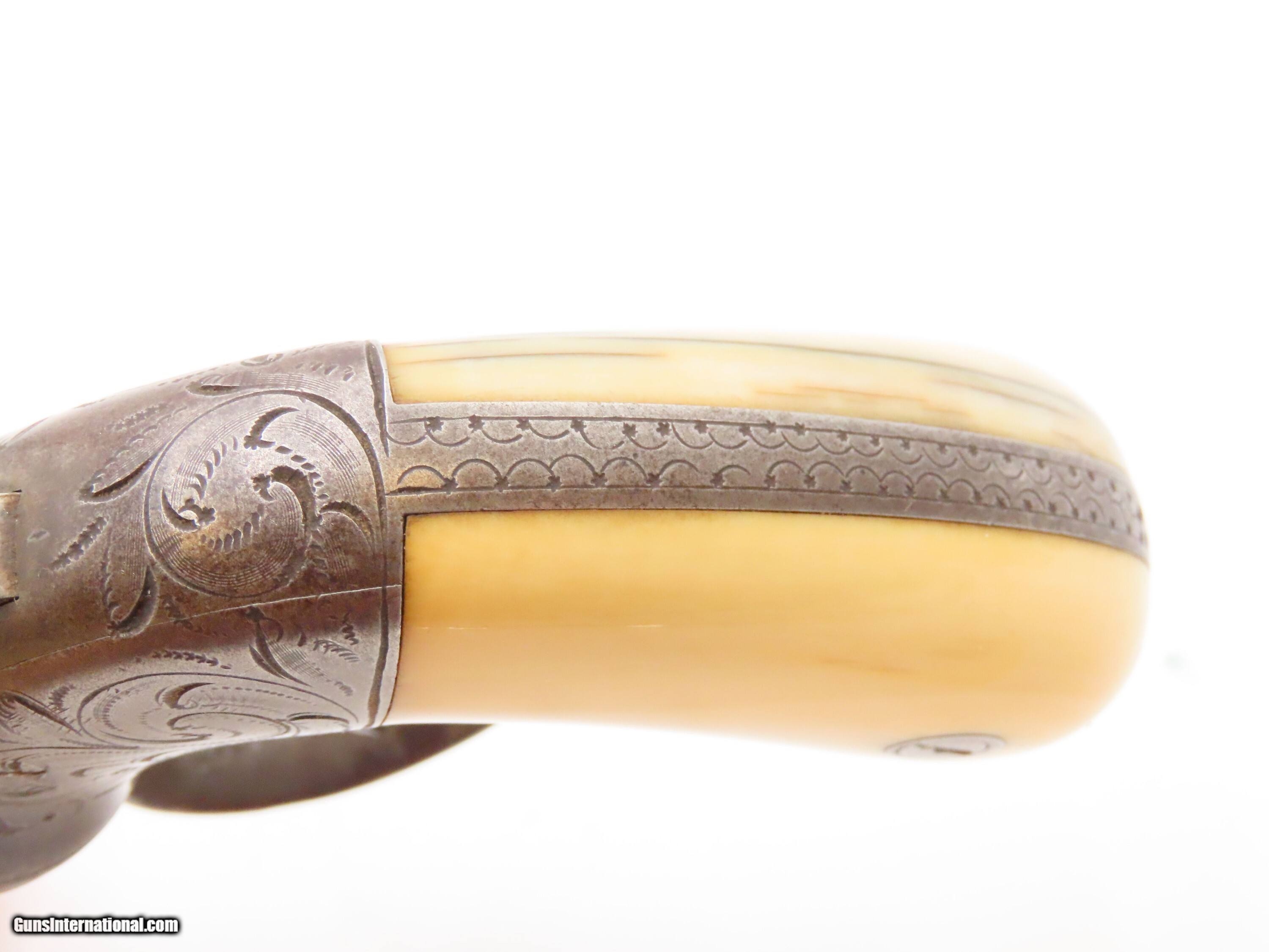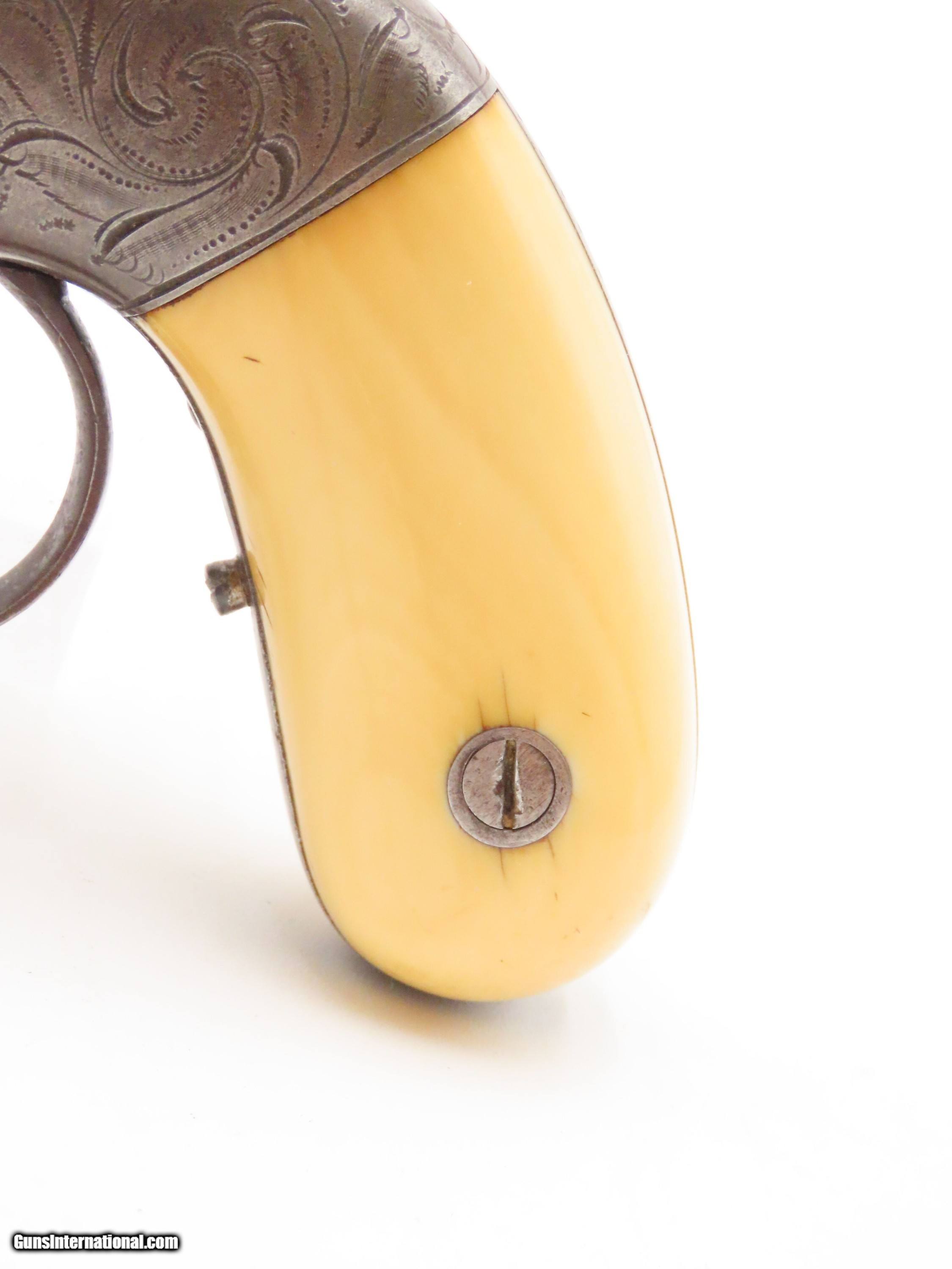 ENGRAVED Antique ALLEN & THURBER Bar Hammer IVORY GRIP Pepperbox BELLY GUN