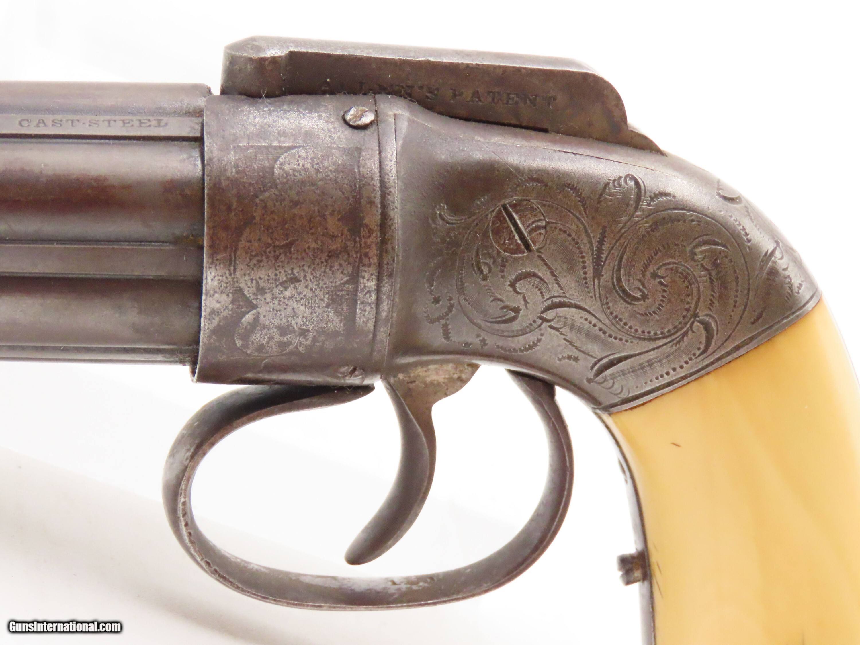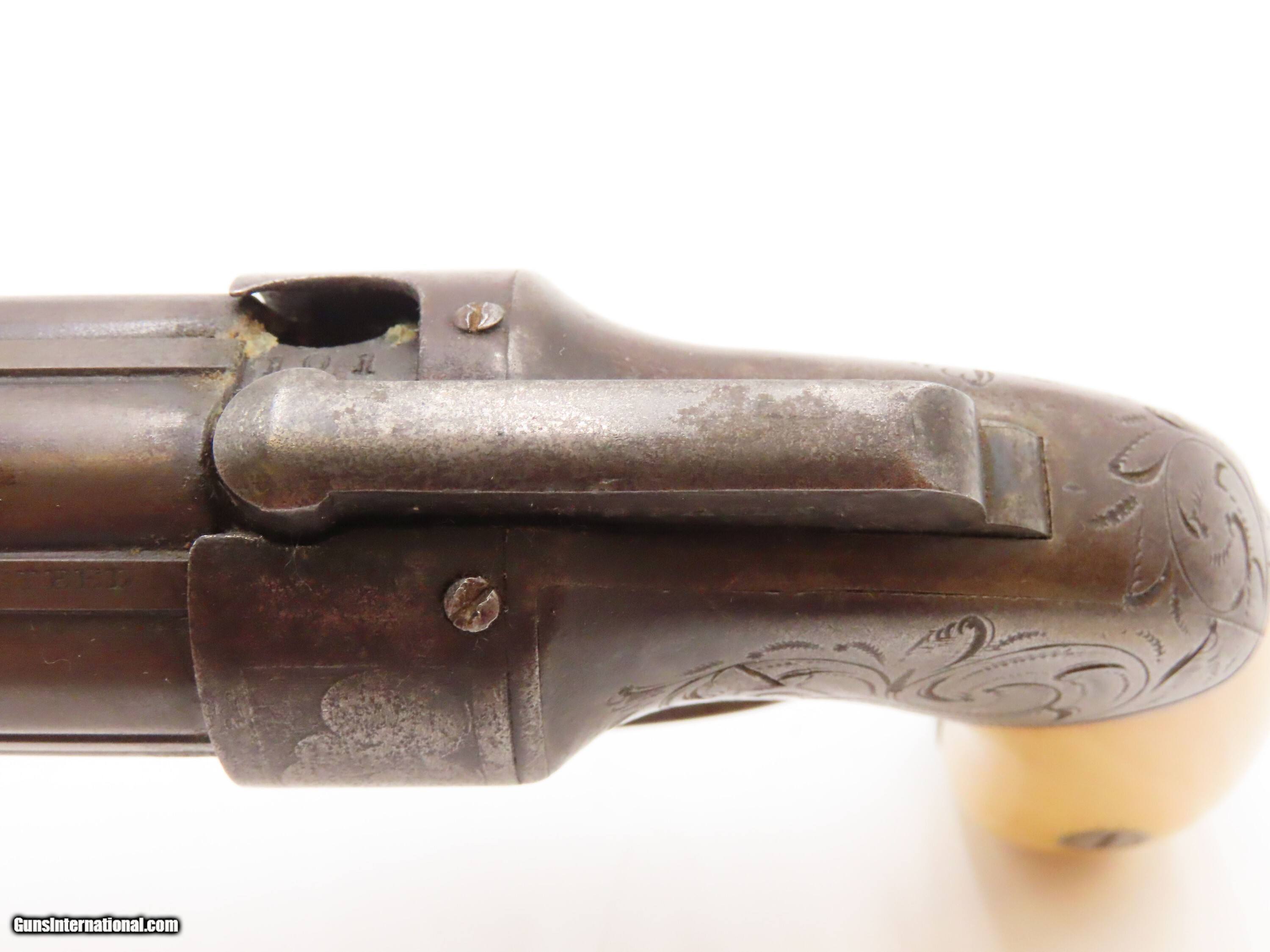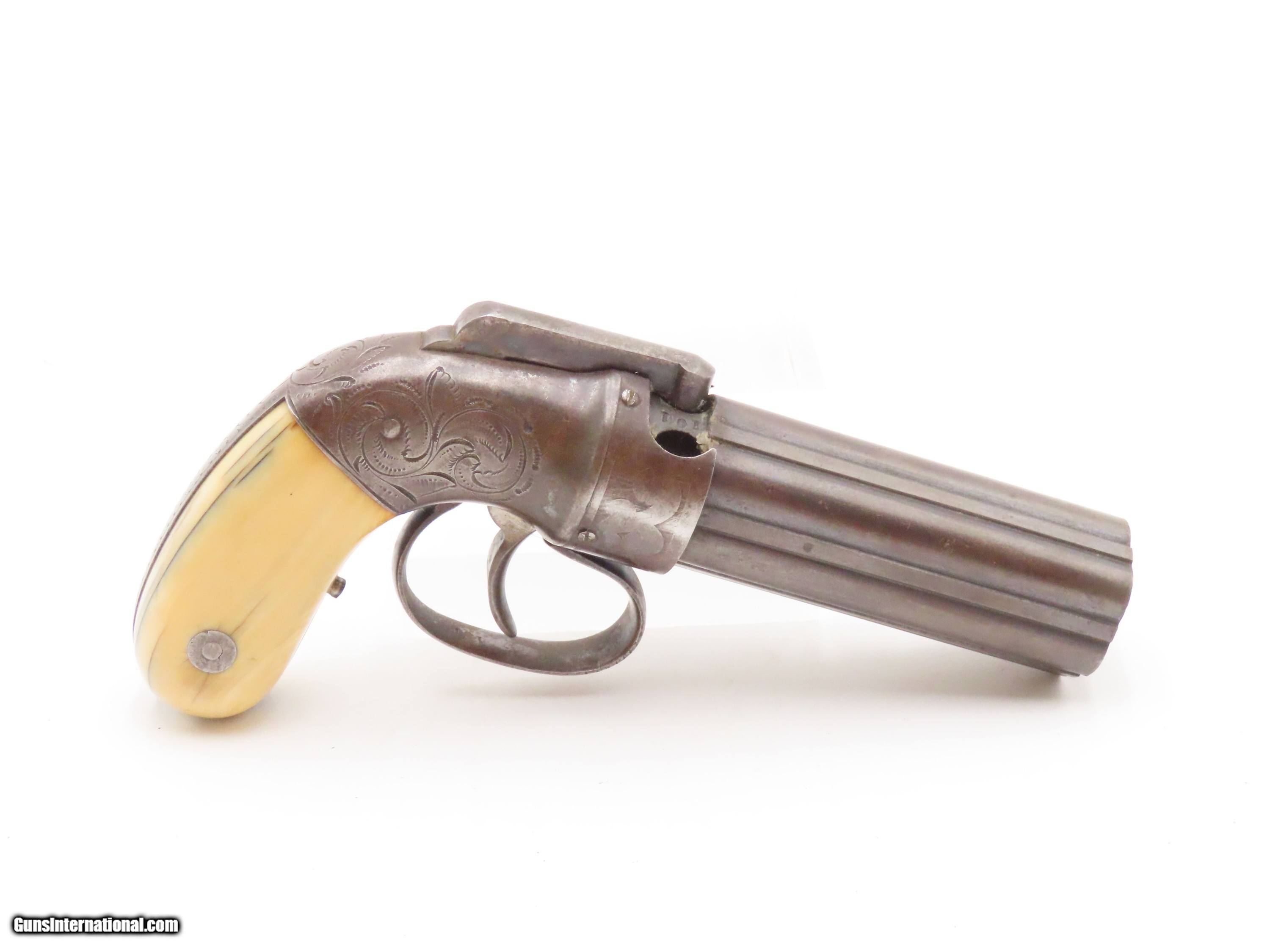 ENGRAVED Antique ALLEN & THURBER Bar Hammer IVORY GRIP Pepperbox BELLY GUN