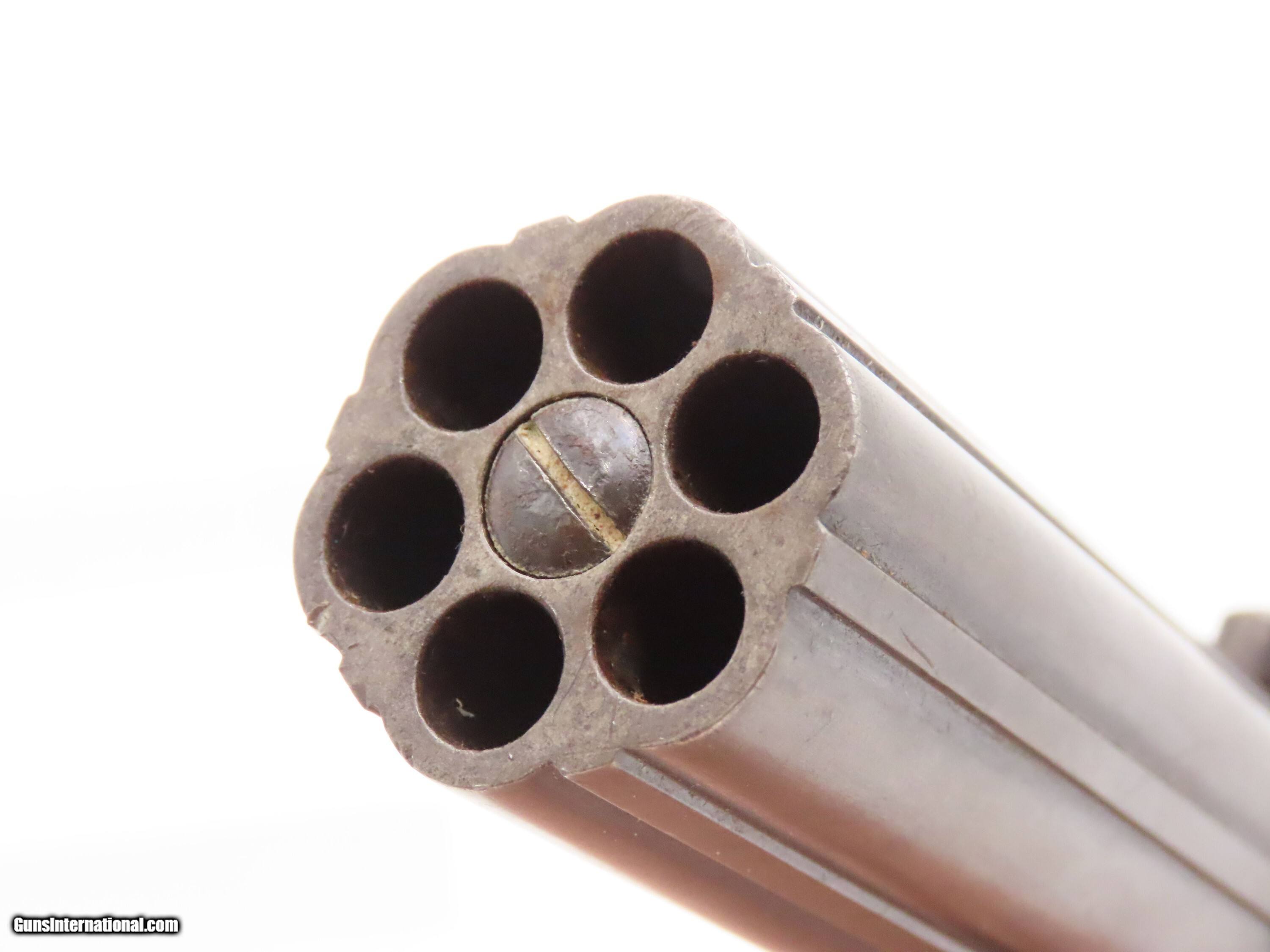 Description: ENGRAVED Antique ALLEN & THURBER Bar Hammer IVORY GRIP Pepperbox BELLY GUN First American Double Action Revolving Pistol Here we present an antique Engraved Allen & Thurber Norwich Period Bar Hammer 6-shot Percussion Pepperbox Pistol made circa 1842-1847. Only six-barrel pepperbox pistols were produced during the Grafton Period (1830s-1842) and the Norwich Period (1842–1847), and all had smooth barrel external contours until the later Worchester (1847-1865) & Allen and Wheelock period, when fluted barrels became the norm. This is a six-shot revolving pistol and was made during the Norwich Period. It wasn’t until the Worchester period that the five-shot pepperbox was introduced. Percussion nipples were integrated to the barrels. Made with a bar hammer and standard trigger, models have been encountered with or without an integral nipple shield. While simplifying shooting (no manual cocking of the hammer), the bar hammer did preclude the inclusion of usable sights. However, this early example of a double-action pistol must have been quite a selling point. As these were considered “point and shoot” short range defensive weapons or “belly guns”, the market did not seem to object to the limitation of not having sights. Ethan Allen was already a prolific inventor and successful businessman in the 1830s when he came up with this design. This percussion, six-shot, double-action pocket revolver was a very popular pistol that was produced in Norwich, Connecticut. It’s a 31-caliber pepperbox with a revolving screw off fluted barrel and has factory engravings in a floral motif executed on both sides of the frame. Made from 1842-1847, these pistols enjoyed even greater popularity than Sam Colt’s first pistol. The history that these pistols enjoyed over the years is astounding: the Seminole Wars, Gold Rush, Mexican War and American Civil War. These guns are true relics of American history. The overall condition is very good. Traces of original finish are found in low trafficked areas. Strong action. A nipple is missing. The bores have darkened, remain smooth, and are good for their ages. Fine grips. Lightly engraved frame. “101” marked barrel. Own the original! This is a legitimate antique and not a reproduction. Barrel is 3-1/4 inches. Caliber: .31 Percussion Overall condition as seen in photos. Very Fast. Very Safe. FREE SHIPPING WORLDWIDE. Delivered directly to your door by express mail! Guaranteed AUTHENTIC & Includes CERTIFICATE OF AUTHENTICITY. $2000 #258004 Antique: Yes Price: $2,000.00 Buy Now Pay with