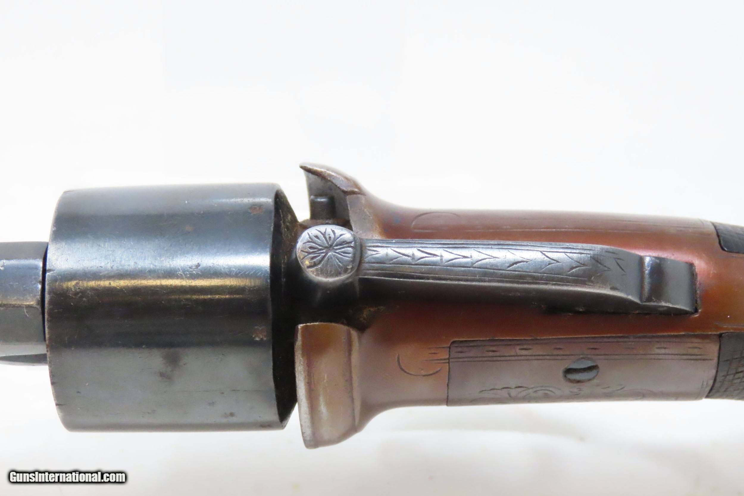 ENGRAVED Antique BAR HAMMER Transitional .38 Caliber PERCUSSION DA Revolver PEPPERBOX to REVOLVER Transitional Firearm