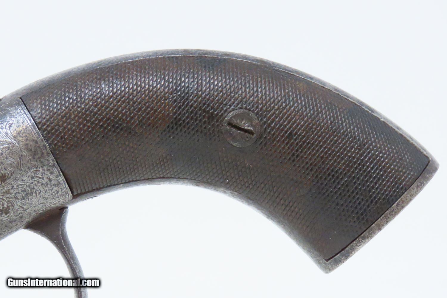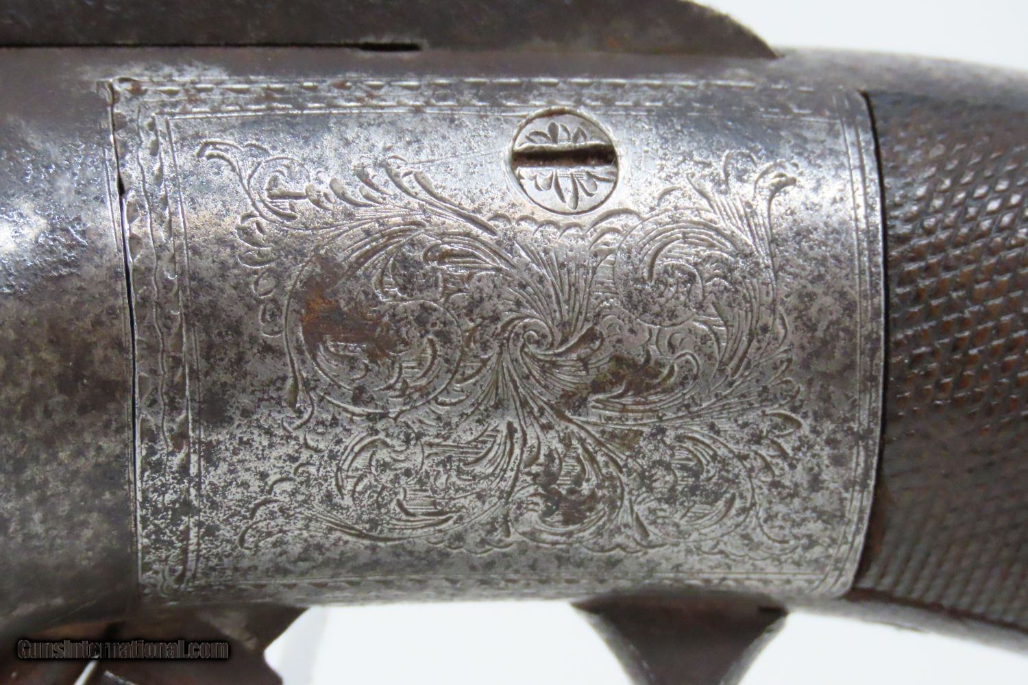 Engraved BRITISH Antique .32 Cal. BAR HAMMER Percussion PEPPERBOX Revolver 1840s 6-Shot Self Defense Revolver