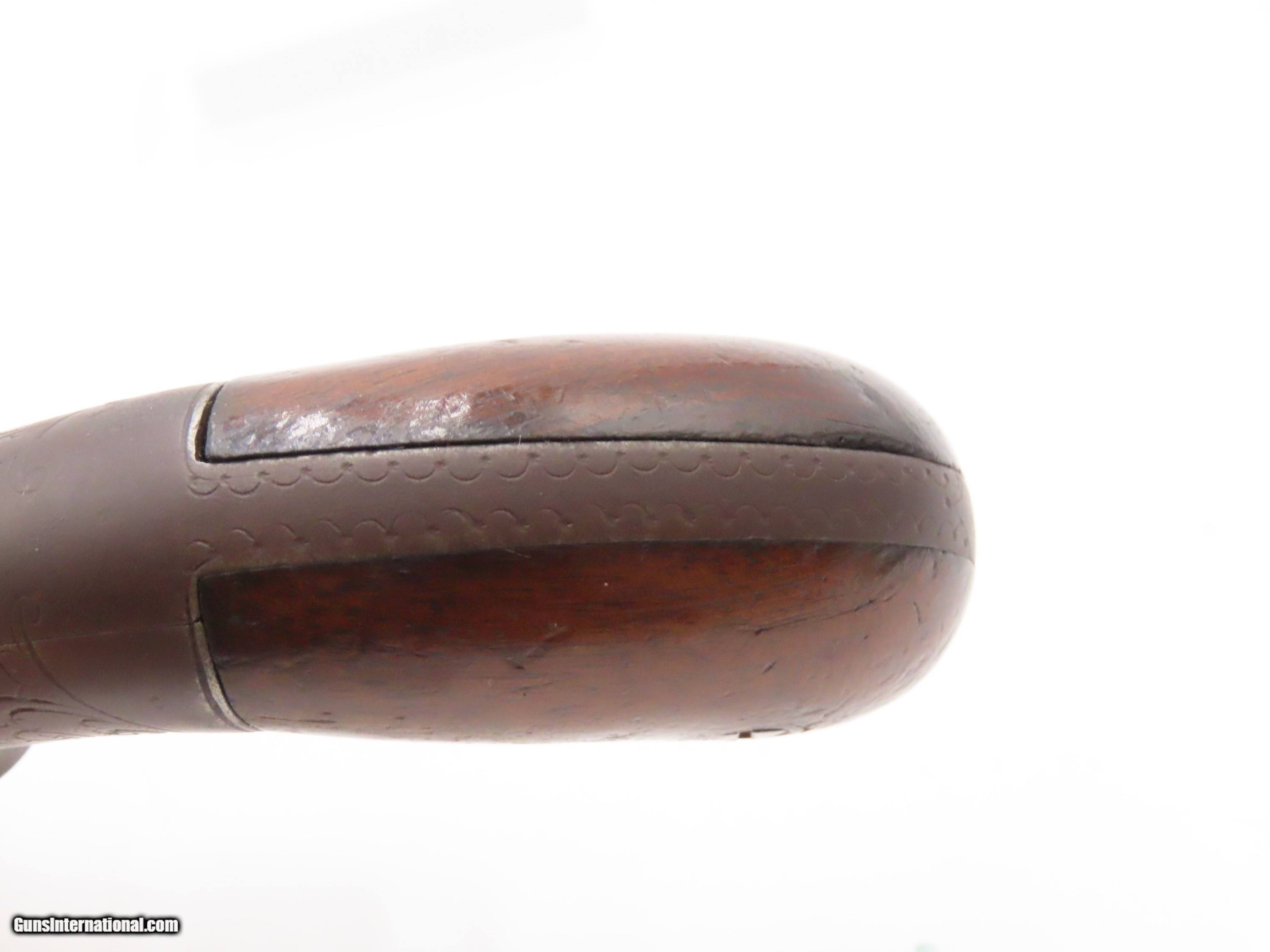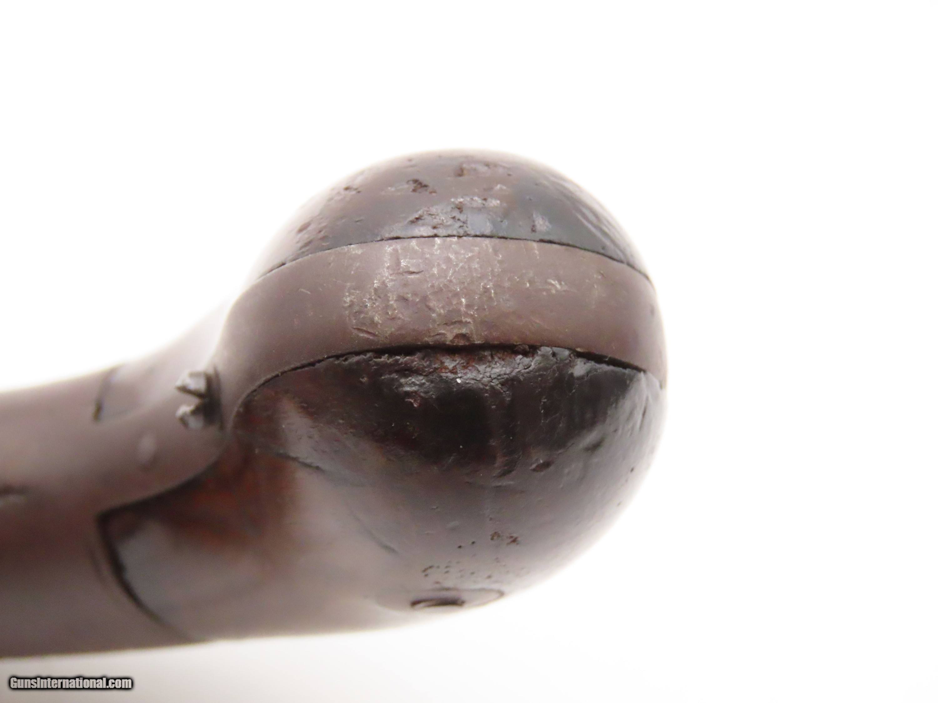 Description: GOLD RUSH Era ALLEN & THURBER Antique WORCHESTER Period PEPPERBOX Revolver First American Double Action Revolving Percussion Pistol Here we present an antique Allen Thurber & Co. Bar Hammer 6-shot Percussion Pepperbox pistol made circa 1854 to 1856 in Worcester, Massachusetts. Only six-barrel pepperbox pistols were produced during the Grafton and Norwich periods (1837–1847), and all had smooth barrel external contours until the later Worchester and Allen and Wheelock period, when fluted barrels became the norm. Though this is a six shot, it was during the Worchester period that the five-shot pepperbox was introduced. Percussion nipples were integrated to the barrels. Made with a bar hammer and standard trigger, models have been encountered with or without an integral nipple shield. While simplifying shooting (no manual cocking of the hammer), the bar hammer did preclude the inclusion of usable sights. However, this early example of a double-action pistol must have been quite a selling point. As these were considered “point and shoot” short range defensive weapons or “belly guns”, the market did not seem to object to the limitation of not having sights. The overall condition is good. Original dark brown patina. The trigger drops the hammer, but the cylinder does not index. Lightly engraved frame and backstrap. Both grips are in very good shape with average handling wear. Markings are legible. The bores are in good shape for their ages and remain smooth. Own the original! This is a legitimate antique and not a reproduction. Barrel is 3-1/4 inches. Caliber: .31 Percussion Overall condition as seen in photos. Very Fast. Very Safe. FREE SHIPPING WORLDWIDE. Delivered directly to your door by express mail! Guaranteed AUTHENTIC & Includes CERTIFICATE OF AUTHENTICITY. $1400 #257528 Antique: Yes Price: $1,400.00 Buy Now Pay with