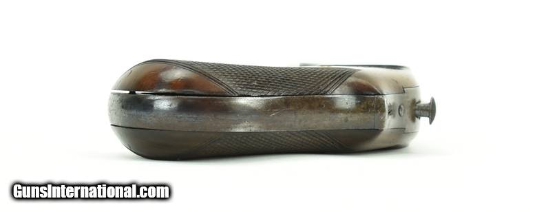 Description: Rare Thomas Bland Mitrailleuse 4 barrel pistol. Extremely rare gun made under Abraham Martin’s patent. Very few of these guns were made by Thomas Bland. These guns were very similar to the Charles Lancaster design, but differ substantially on the internal mechanism. The flaw of this design was the recoil on the Martin patent could cause multiple barrels to fire where this was not an issue with the Lancaster pistols. Condition is excellent! Excellent original blue. Gun is a 380 cartridge (not a 380 ACP). Grips are excellent with very sharp checkering. Action works perfect. Bores are very good with some pitting. Very scarce gun that few know exist. SOLD |