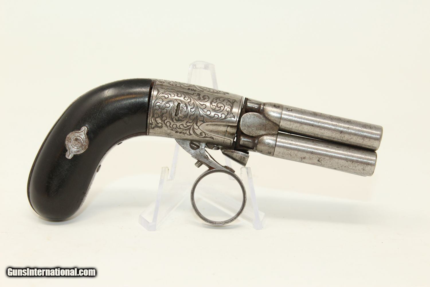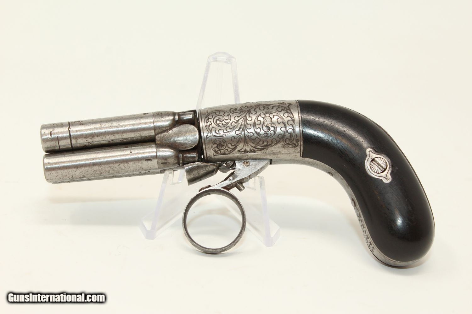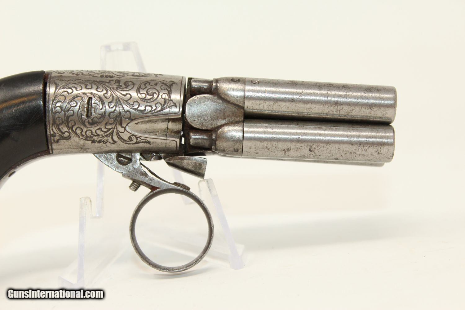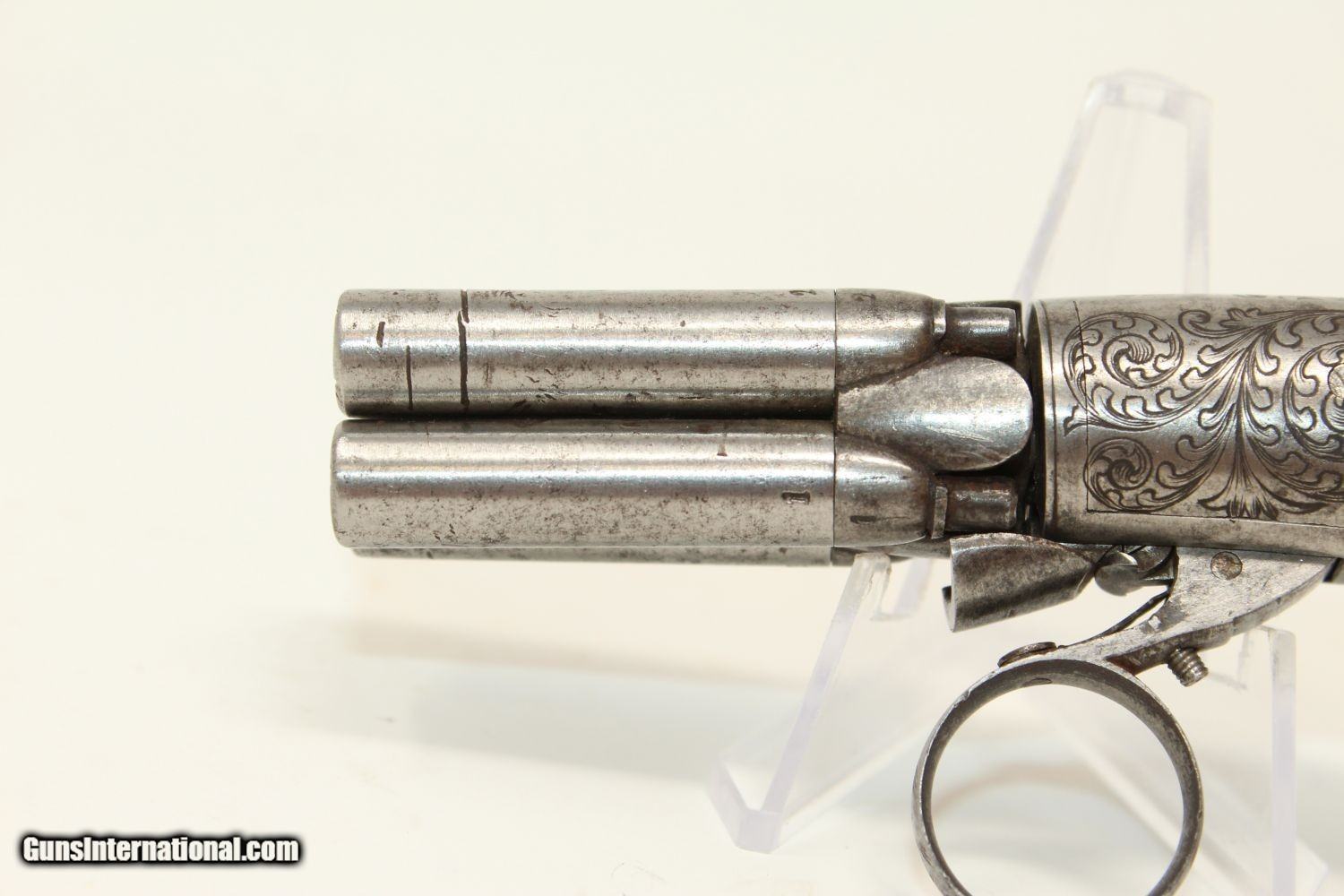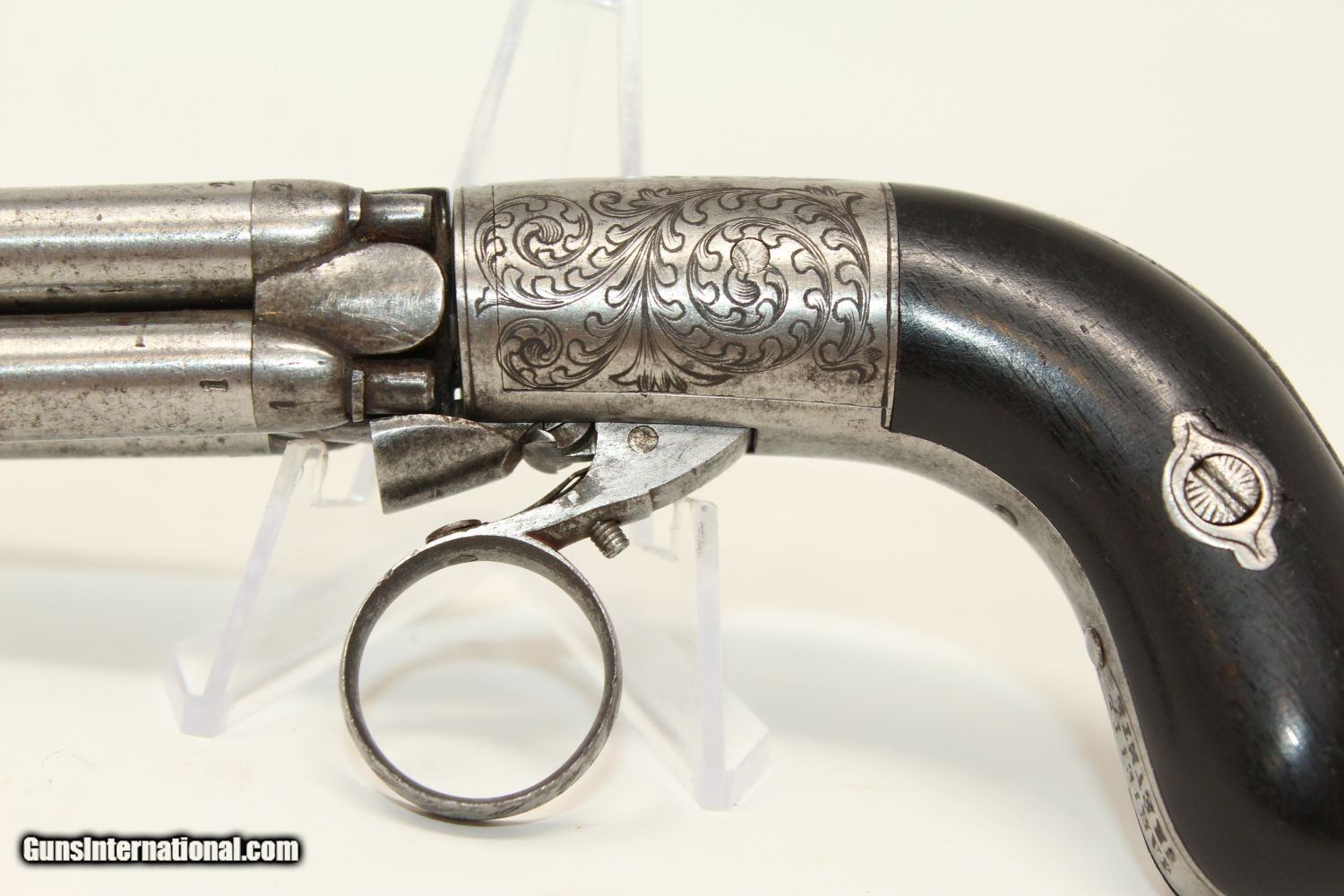 TINY Vest-Pocket ENGRAVED Antique .22 PEPPERBOX Fine Mariette Brevette from 1850s Belgium