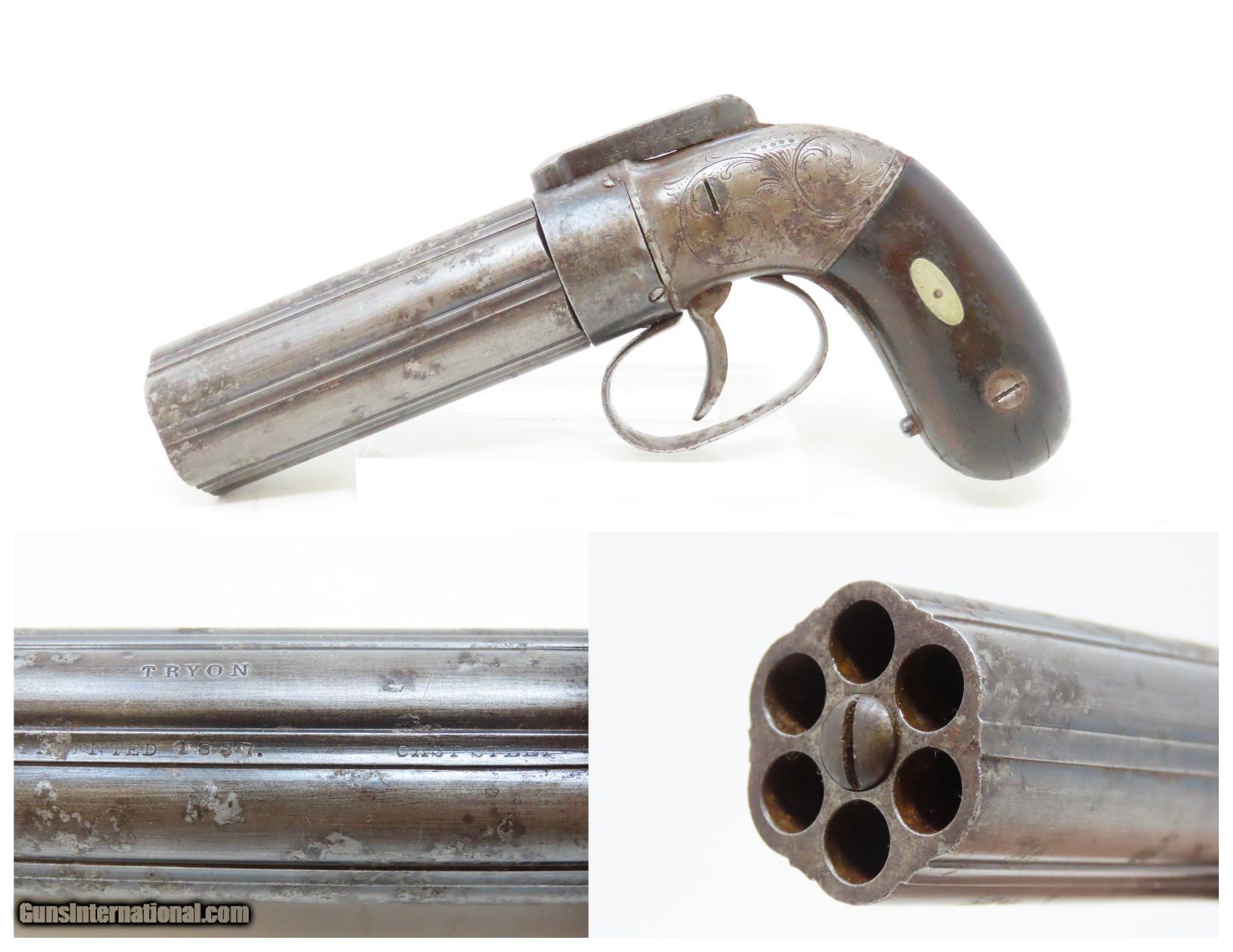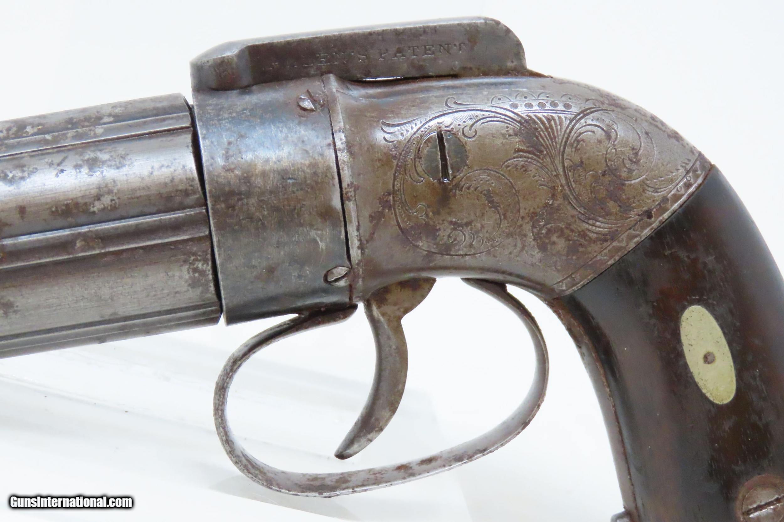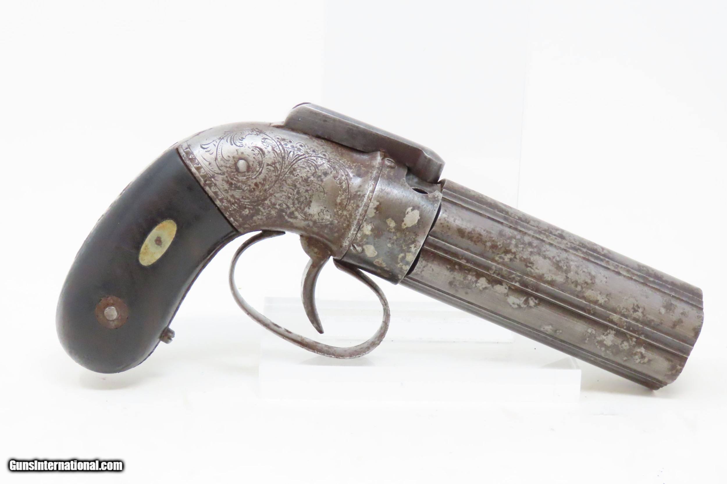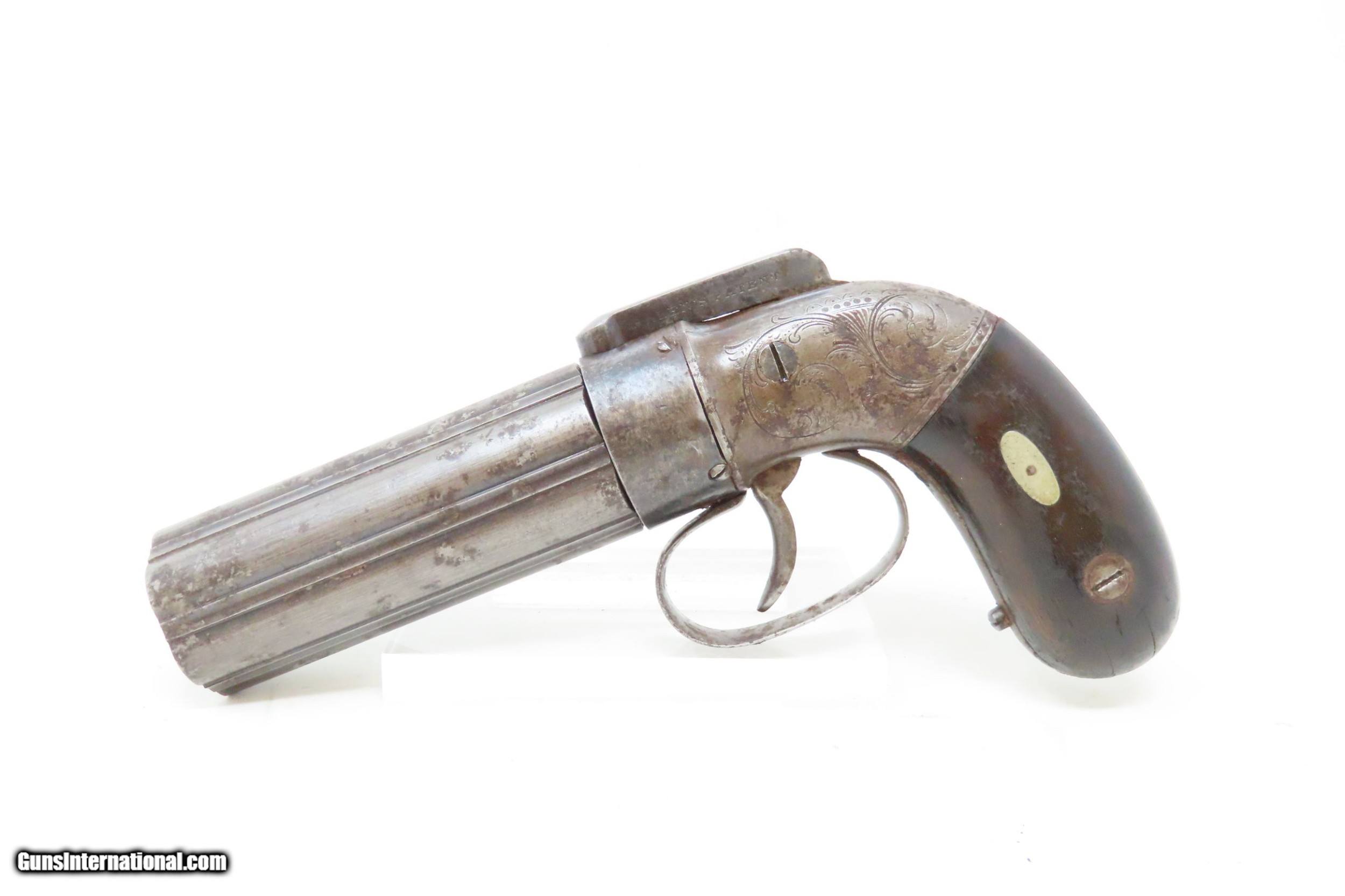 TYRON Marked Antique ALLEN & THURBER .32 Cal. Bar Hammer PEPPERBOX Revolver Pre- Civil War PERCUSSION Pepperbox