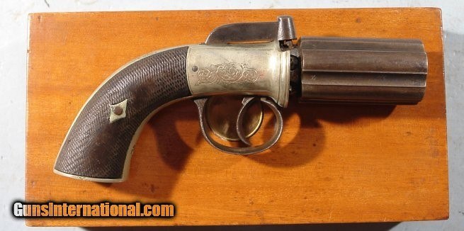 VERY FINE CASED BRITISH PERCUSSION BAR-HAMMER PEPPERBOX BY ADKIN OF BEDFORD CIRCA 1850.
