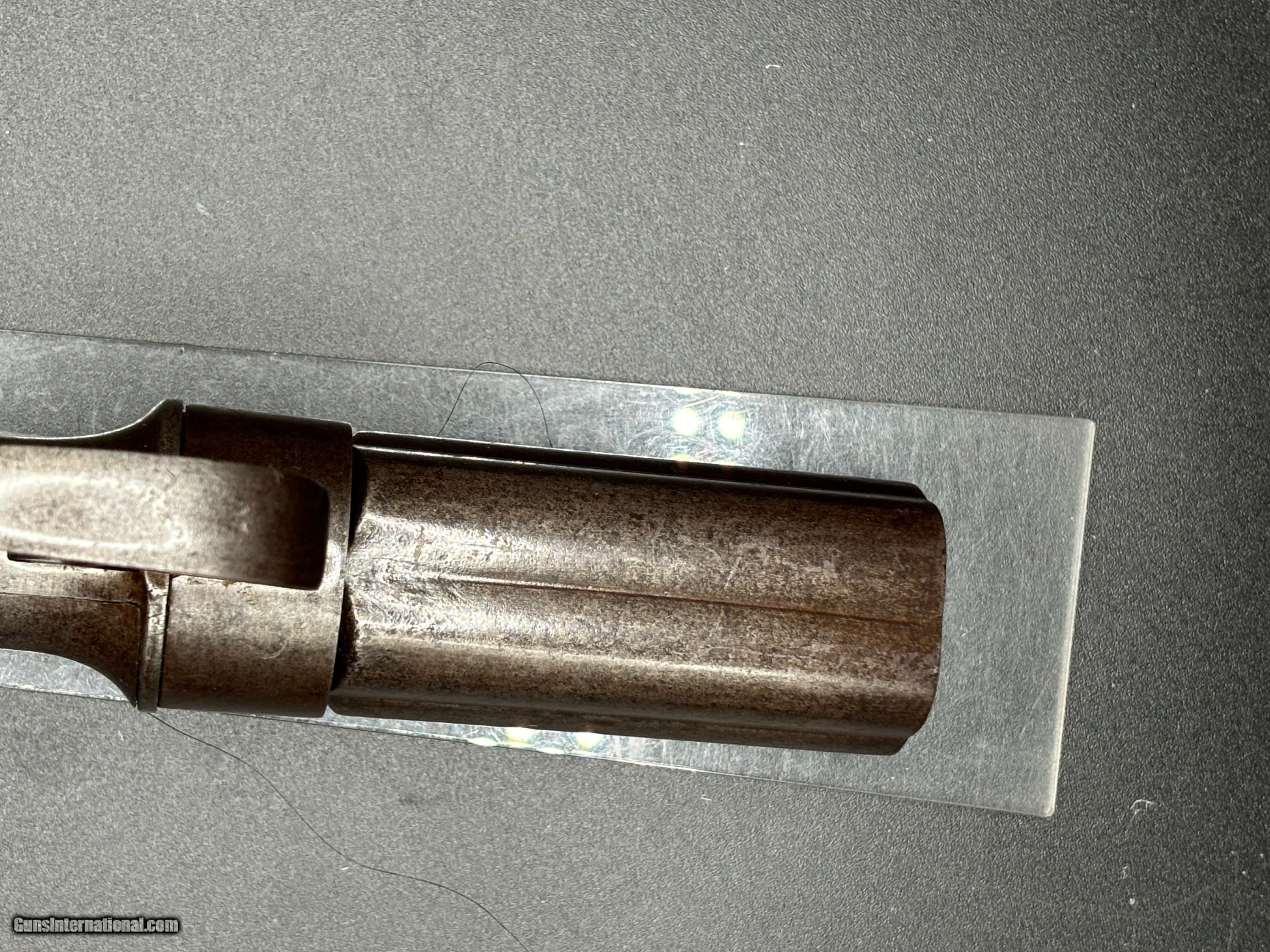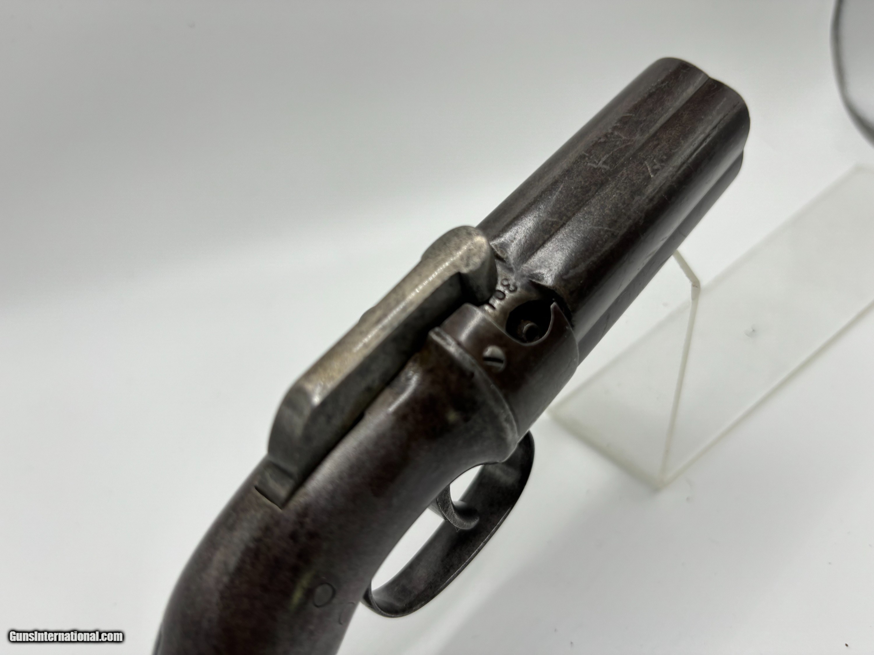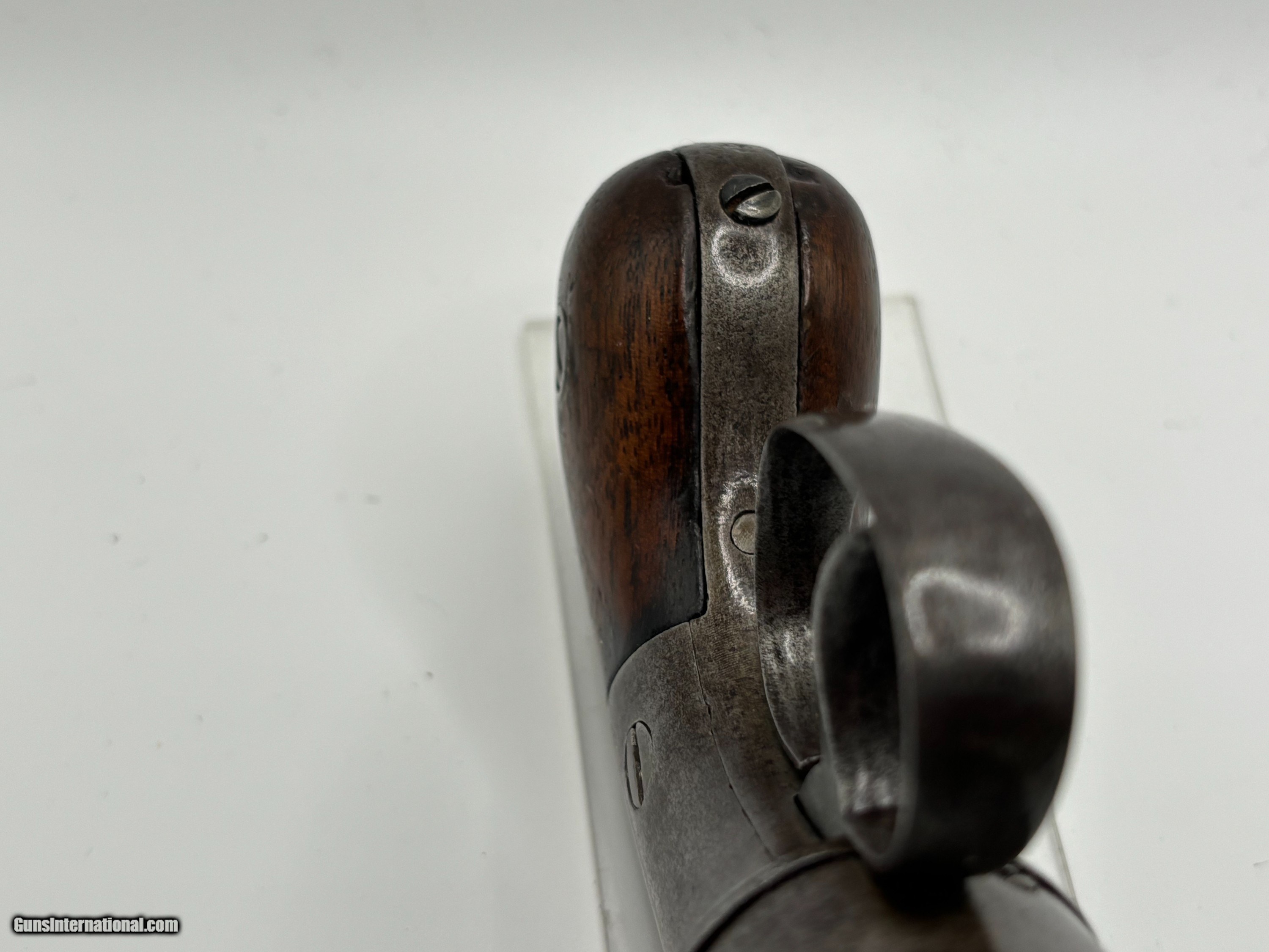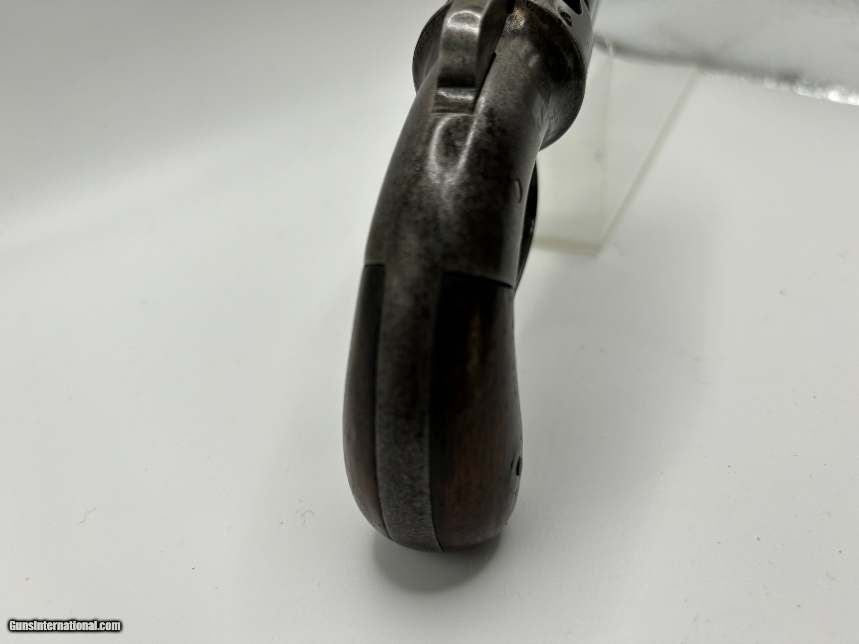Description: Very Rare Manhattan Arms co. .31 cal , 5 shot pepperbox with 3” barrel MANHATTAN F.A. MFG.CO / NEW YORK Serial number 301 Manhattan Arms Co. Pepperbox Pistol Manufacturer: Manhattan Arms Company Model: Pepperbox Pistol Caliber: .31 Barrel Length: 3 inches Production Period: Mid-19th century, primarily during the Civil War era Estimated Production Quantity: Approximately 3,000 units Brief Company History: The Manhattan Arms Company was a significant player in the firearms industry during the mid-19th century. Founded in 1856, it was based in Newark, New Jersey. The company quickly gained prominence for its innovative designs and quality craftsmanship, particularly in the realm of revolvers and pistols. Manhattan Arms Co. was a direct competitor to other renowned firearm manufacturers of the time, including Colt, Remington, and Smith & Wesson. Their firearms, including the pepperbox pistols, were highly regarded for their reliability and effectiveness, earning them popularity among both civilian and military markets. Features and Historical Significance: Design: The Manhattan Arms Co. pepperbox pistols featured a unique design with multiple barrels (typically five) arranged in a circular pattern around a central axis. This configuration allowed for quick successive shots without the need for reloading. Caliber: The .31 caliber variant was among the most common produced by Manhattan Arms Co. It provided a balance between firepower and manageability. Popularity during the Civil War: Manhattan Arms pepperbox pistols saw extensive use during the Civil War period. They were favored by both Union and Confederate soldiers for their compact size, ease of use, and rapid firing capability. These pistols were often carried as sidearms by officers and cavalrymen. Limited Production: Despite their popularity, Manhattan Arms Co. pepperbox pistols were produced in relatively limited quantities compared to some of their competitors. The estimated production figure of around 3,000 units adds to their rarity and collectibility. Condition: .31 Cal 3" barrel cluster with light oxidized bores. The metal surfaces have evenly toned to an antique brown-gray patina with scattered areas of pinprick pitting. The bag shaped Walnut grips rate near excellent with a couple of small flakes along the bottom of the butt The bar hammer shows the marking, MANHATTAN F.A. MFG.CO / NEW YORK The barrel cluster and gripstrap are both serialized "301". The double action trigger does not reset with pushing forward with help but the action correctly times and the fixed machine nipples remain intact. Collector's Value: Due to their historical significance, limited production numbers, and association with the Civil War, Manhattan Arms Co. pepperbox pistols are highly sought after by collectors of antique firearms. Their value can vary greatly depending on factors such as condition, rarity of specific models, and historical provenance. A well-preserved example of the .31 caliber 5-shot pepperbox pistol with a 3" barrel, like the one is highly desirable among collectors of Civil War-era firearms. This pistol represents a rare and historically significant firearm from the Civil War era. Its innovative design, association with both Union and Confederate forces, and limited production make it a prized collectible for enthusiasts of antique firearms and military history alike. This gun is and Antique and ships direct to the buyer with FREE SHIPPING INCLUDED. Payment can be made with a personal check, money order, Zelle or Venmo. $925 reasonable offers considered SOLD Antique: Yes |