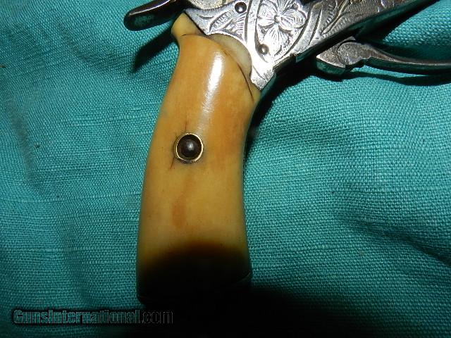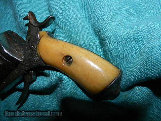 Description: A fancy nickle plated center fire pistol with engraved with aged bone grips. Overall the gun is 8", with an octagonal barrel of 3 3/4" . . no name on the gun but most likely made in Belgium or France. The action will work best with muzzle down which means the hand spring is weak. The trigger needs to be pushed forward also to cycle. This fine gun was made about 1850 and appears to be about 25 cal.. We don’t have asite .I prefer money orders or a check. Item ships when funds come in. If you can only pay with a card let me know. I’m sorry I don’t list my phone number, did that for 30 days, never again.. I can’t talk on the phone all day…who will ship the guns? I’m just one person, and it’s very bust here! I do a brisk volume! I hope you like my wide selection of unusual guns, knives and gun parts. Shipping price determined by zip code. I try to keep the prices affordable, which means I make less money than most dealers. You won’t get altitude sickness with my prices! I consistently have the best selection of older guns If you BUY IT NOW you must still contact us for details buy it now doesn't end the sale, it just sends an email telling us you want to buy this gun. A phone call won’t secure a sale! Not home many times, the first buyer by email buys the gun !Thissite doesnot close down a sale when you do a BUY IT NOW like Ebay!I can get six buy it nows in an hour, first buyer to email gets the guns, others are in second place! Best to send another email . Sometimes not home to get calls. Some guns are required shipment to a gun dealer near you for a transfer to you when it arrives. With the widest selection of older guns at great prices, We don’t have a store, and sell on the internet only. SOLD Antique: Yes |