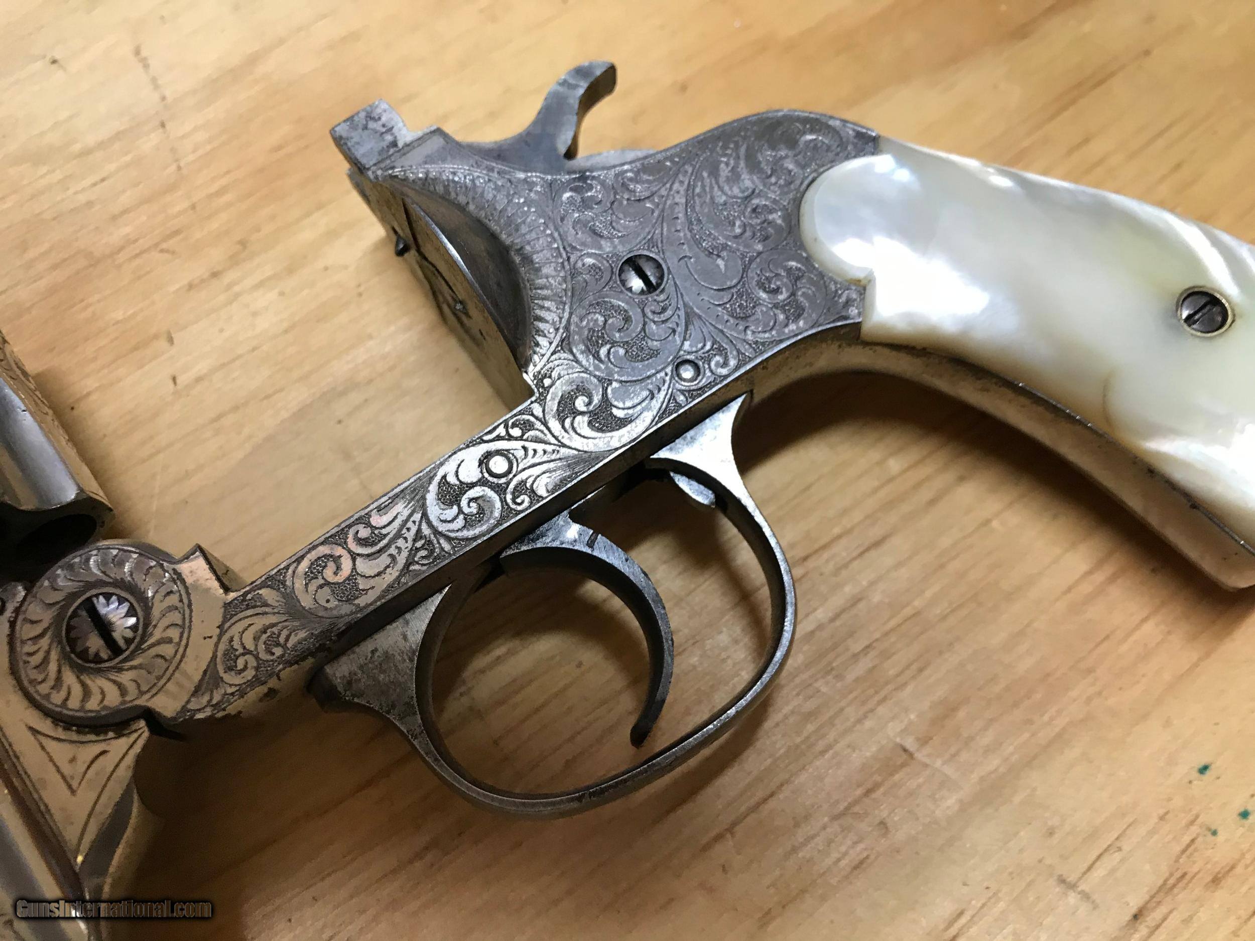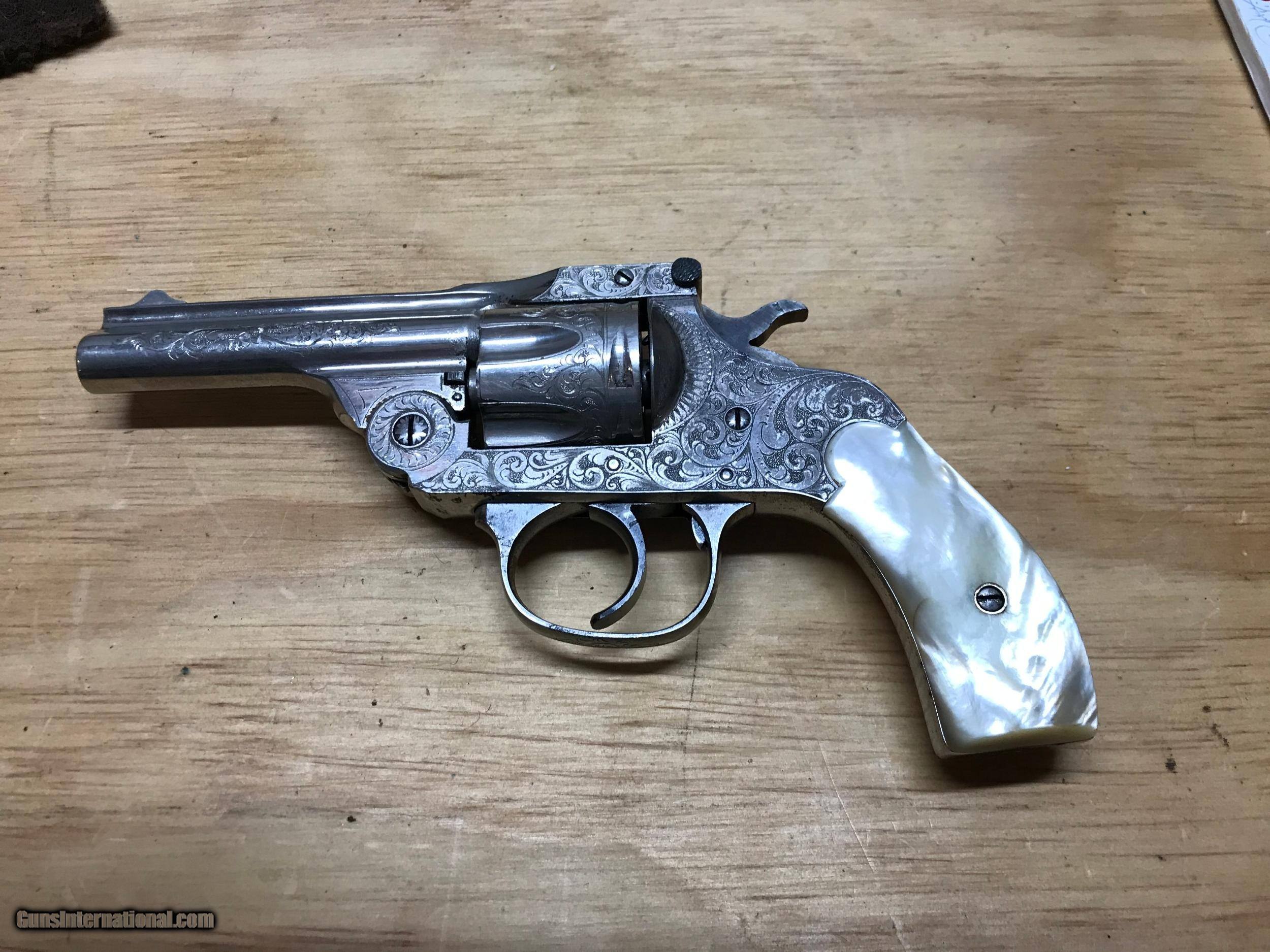Description: Pat.1887 32 S&W Forehand Arms Co. revolver. Highly engraved with real pearl grips.Excellent mechanics and bore. SOLD Antique: Yes |