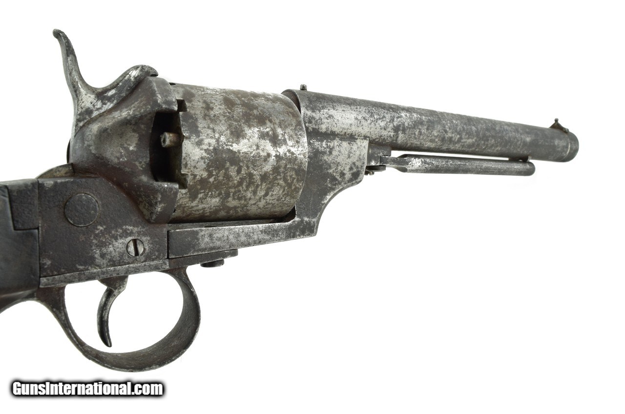 Description: "Possible Sisterdale Revolver. Very interesting gun! The Sisterdale Revolver was a gun made by Alfed Kapp and his father Dr. Ernst Kapp in Sisterdale, TX. Alfred Kapp had worked in Colt’s operation. In approximately 1862, the Kapp’s, along with four other men, experimented in making handguns for the Confederacy. Six such guns were apparently manufactured and only one of those guns is definitively known to exist. For years it was on loan in a museum in New Braunfels, TX and then apparently was purchased from the family who had it on loan by legendary Texas collector Charlie Shreiner of the Y.O. Ranch fame. The gun then was purchased by legendary confederate collector Don Bryan back in approximately 1999. That famous Sisterdale Revolver recently sold in approximately 2015-2016 for around $250,000! This gun we have is very unusual by design and has a similar ratcheting system on the left side of the frame on the outside. A previous owner of the gun sent pictures to Don Bryan and he said he thought there were similarities. Since there are apparently 5 other guns that were made, maybe this is one of them? Or it could be a European made gun. In any case it is very interesting and comes with the letter from Don Bryan as well as information on the famous Sisterdale Revolver. (DALLAS LOCATION) Antique: Yes Price: $7,500.00 Contact Seller |