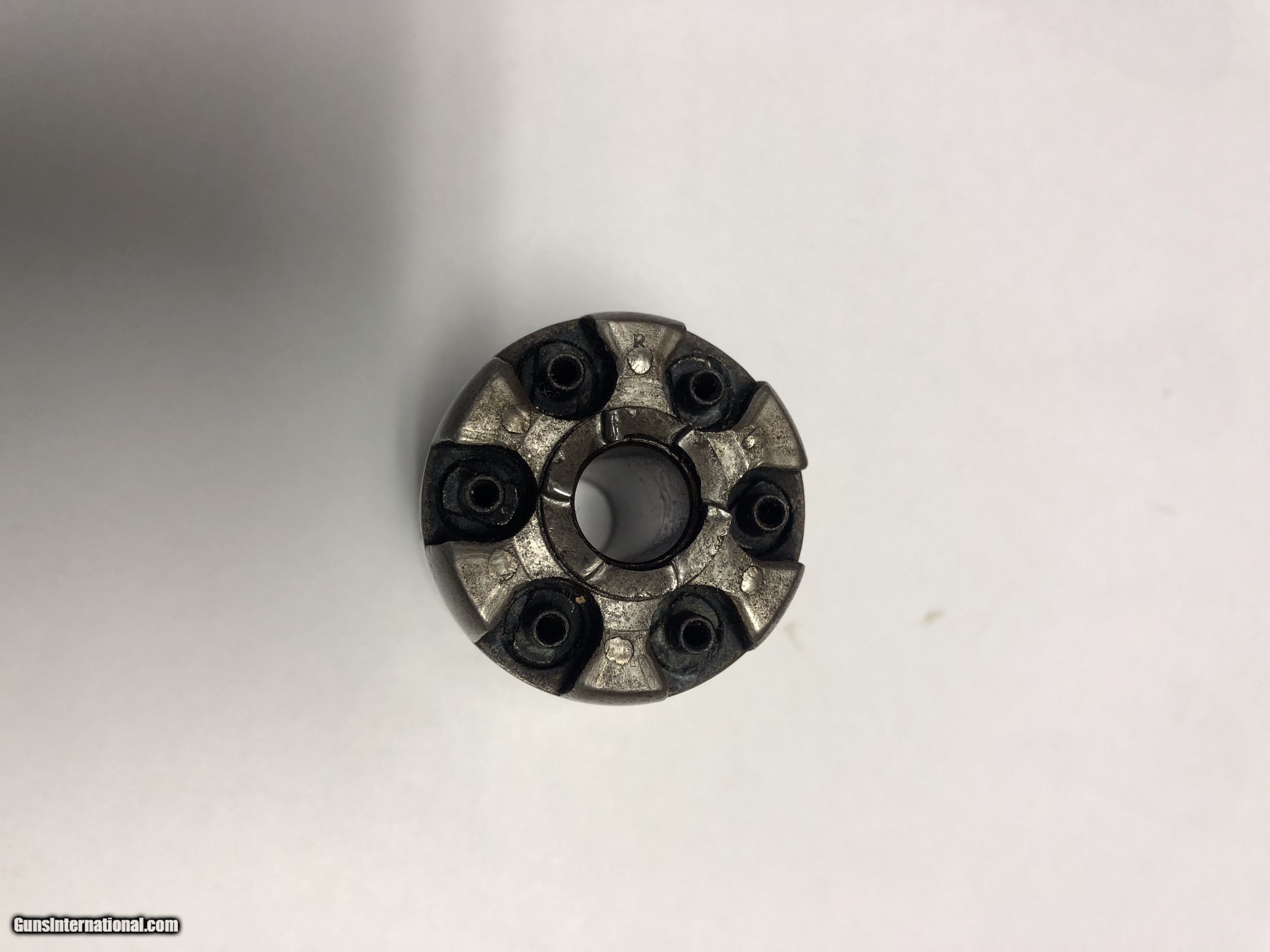 Description: An original antique engraved 1851 Navy percussion revolver with beautiful mellowed ivory grips. This is a middle third model gun with a small trigger guard. It was made in 1853. It is engraved with a tight scroll pattern and the head of a bear on the left barrel lug, it also has a wolf or dog's head on each side of the hammer probably engraved by Gustave Young or in his shop. CONDITION: Barrel retains some original blue with almost 90% on the lower barrel flat under the lever with about 30% on the 2 adjacent lower flats. Brass triggergaurd shows approx. 20% original heavy silver plate. Backstrap with approx. 10 % silver in protected areas. The loading lever shows traces of case hardening. The cylinder has no original blue but almost a full scene. There is a slight drag line about 1/4 inch back from the front of cylinder. The frame retains good traces of case hardening. Serial numbers match including the wedge, loading lever and cylinder arbor. Old ivory grips show a very nice mellow color. The action is tight and crisp as new and the bore is excellent with sharp rifling. Blade front sight added during period of use. SOLD Antique: Yes Manufacturer: Colt Model: 1851 Navy Serial Number: 31645 Barrel Length: 7.5 Caliber Info: .36 Condition: very good Metal Condition: very good Bore Condition: excellent Barrel Type: octagon Action: revolver Manufacture Date: 1853 Engraving: scroll |