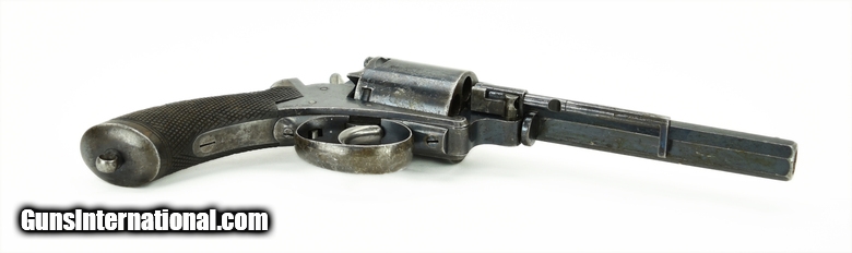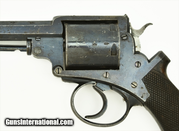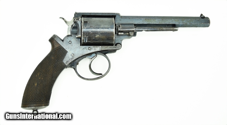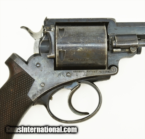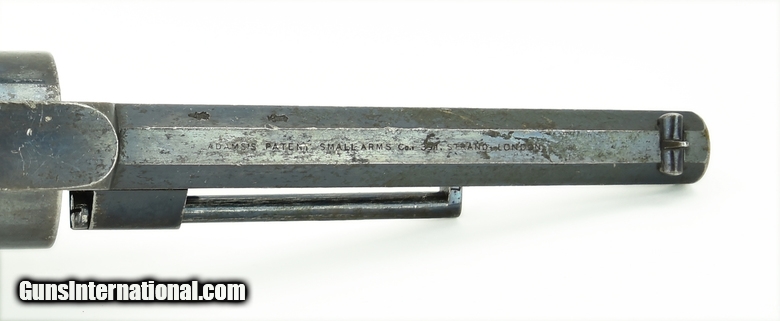 Adams 1867 revolver. Barrel: 5.9” long. Caliber: 12 mm. serial: 1006 on the frame and cylinder. Two Gunmaker’s Company proofs on barrel and cylinder, right frame stamped crown over GS over M G S for George Stainton, Enfield head viewer.