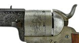 Description: Belgian Revolver in 9mm Flobert. This most unusual revolver is unmarked as to maker but is beautifully made. This revolver is large with a 7” barrel and 14” overall. It is actually overbuilt but we say that in only the most complimentary way. The barrel is scroll engraved. The grips is one piece construction and has deep floral and leaf carving. The cylinder scene is a work of art with uniformed soldiers (Cavalry) on horseback in a running battle with Indians carrying arrows or lances. The Cavalry has saddle holsters. There are figures of dead or wounded in the foreground. The action works smoothly. This writer, if it were not for the fact that he has too many guns in his collection would certainly add this one to it. Makes you smile just to hold it in your hand! We have not seen one like it or even close to it! This is a Big revolver. SOLD Antique: Yes |