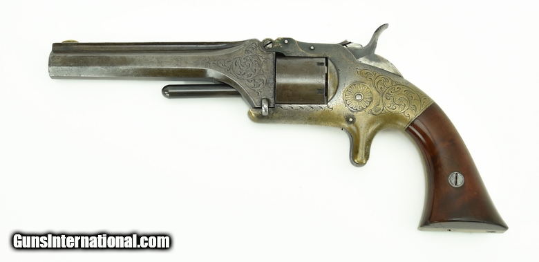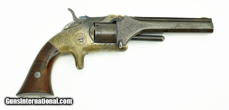 Description: Incredibly Rare 1st Model Plant. Factory engraved this, is a super rare gun! It’s a factory engraved Plant 1st model that has no markings. Gun is factory engraved. Only trace amounts of the original blue are on the barrel where is mostly a smooth brown patina. The frame has 20% or so of the silver plated finish. Grips are excellent. Barrel is 5” long where the standard is 6”. This gun is also much closer in size to a Smith & Wesson #2 Army than a regular size plant. Flayderman’s describes these as “resembling an oversized S&W #2 Army”. Since these 1st models are so scarce, we do not have another to compare it to. Due to this gun not having any markings or serial number, we are unsure if this is a prototype or maybe one of the inventor’s guns, or both. Very interesting gun. We also welcome any input if you have information on this piece. SOLD Antique: Yes |