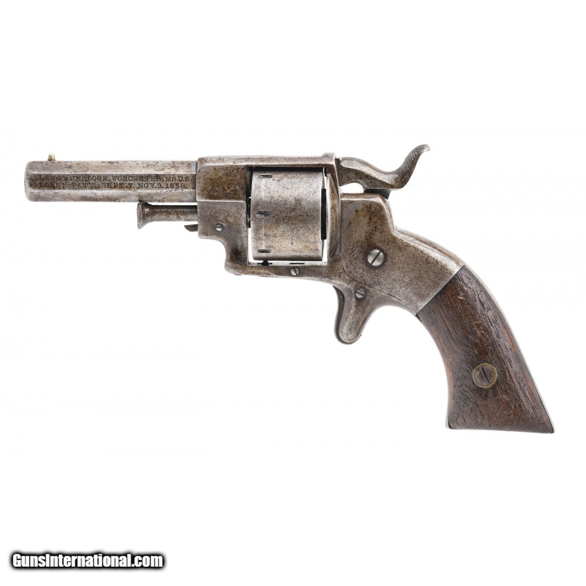 NSN, circa 1858-1865, .22RF, 2.5"" octagonal barrel marked "" ALLEN & WHEELOCK. WORCESTER. MSUS/ALLEN'S PAT'S. SEPT 7 NOV.9.1858"" Bore is poor with oxidation visible in the lands and grooves. Metal is a grey/brown patina, grips are good with light handling wear. Action functions but timing is off. Consignment