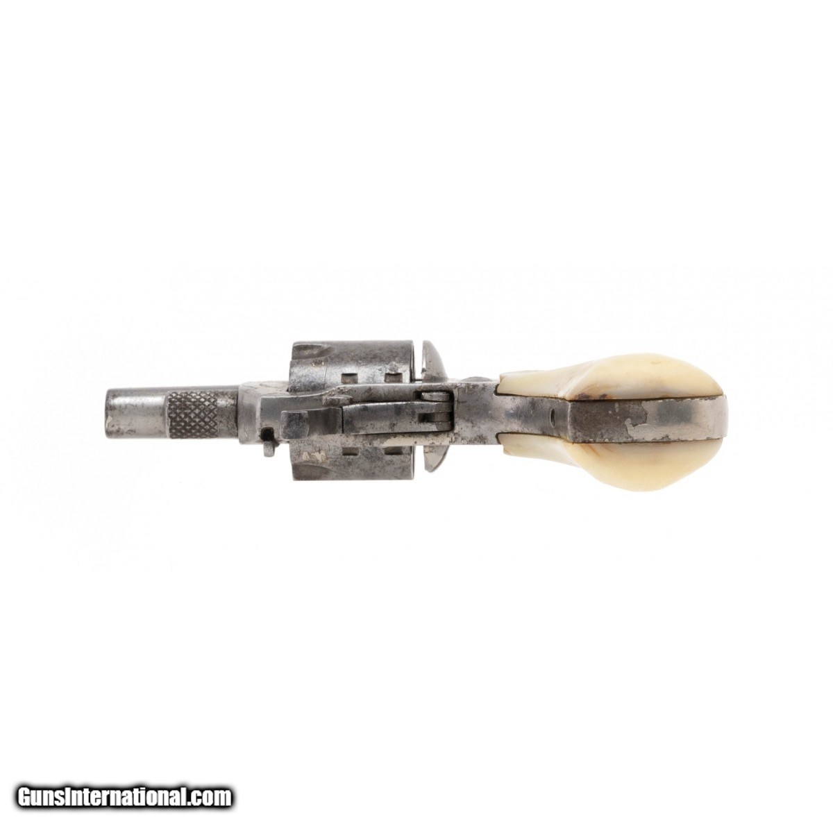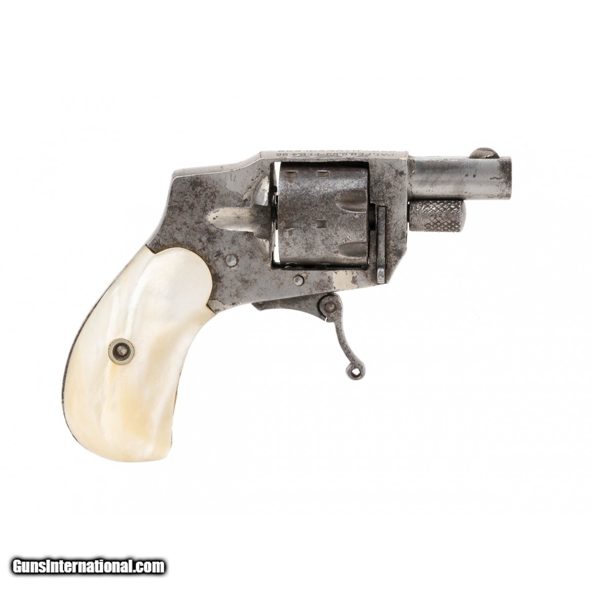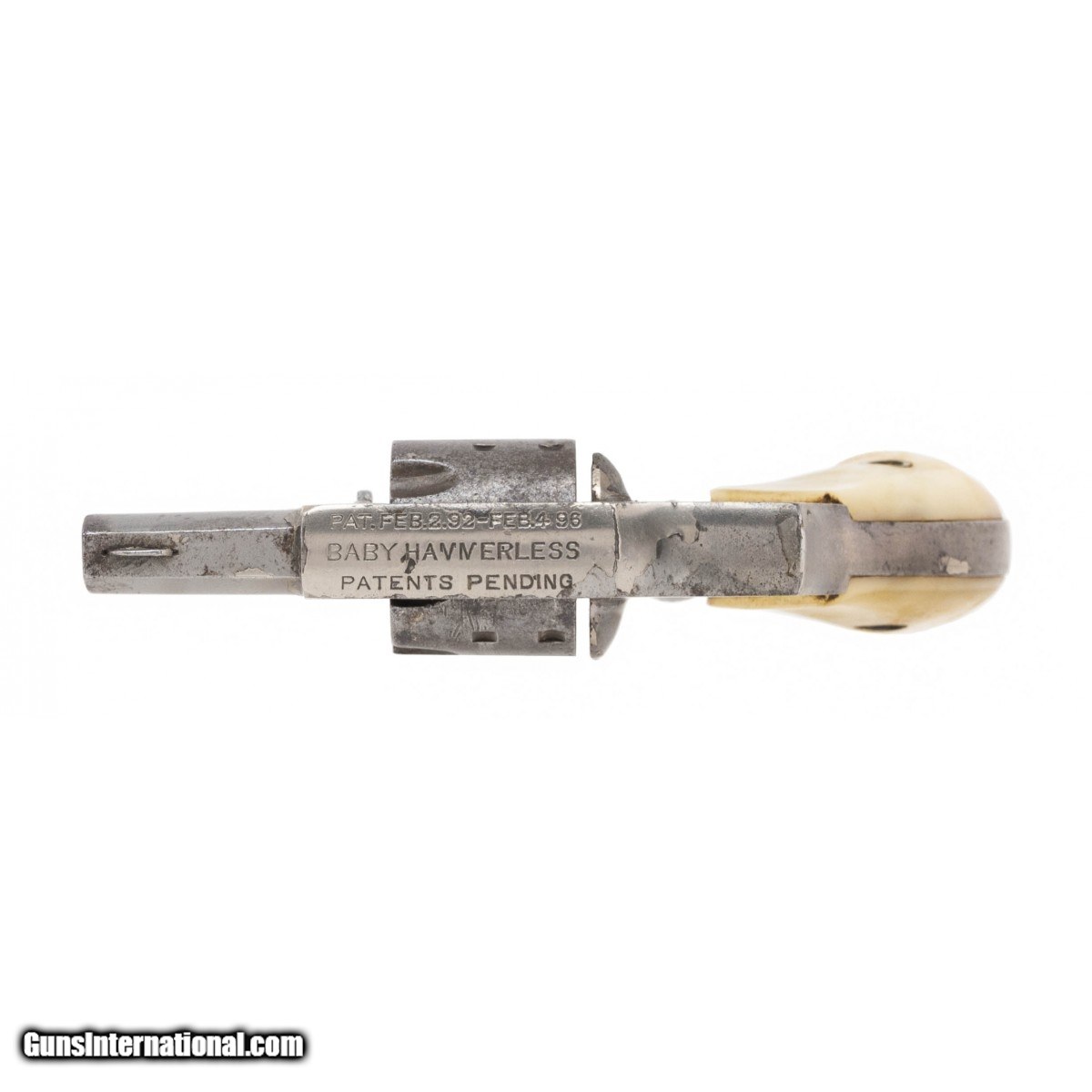 Description: " Small pocket revolver manufactured approximately 1898. Top strap is marked ""Baby Hammerless Pat Pending"". Nickel plating is flaking and has approximately 50% factory nickel. Grips are mother of pearl. Good overall condition. Action works. SOLD Antique: Yes |