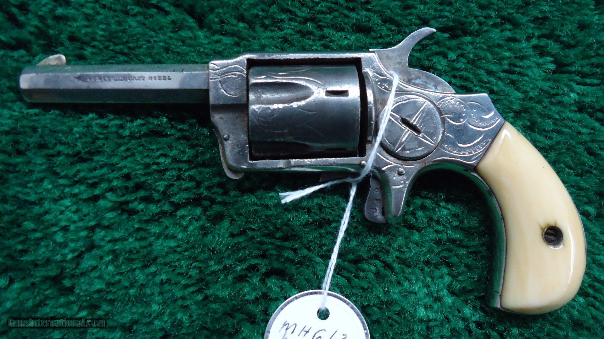Description: A 5-shot 32 caliber spur trigger revolver. Nickel finish. Some original nickel remains. The cylinder has been cleaned. Gun does not index properly. It does cock. Hammer and trigger do work. A pair of ivory grips that have a chip out on each side. Leroy Merz Antique Firearms specializes in antique and vintage Winchesters and other fine American firearms. Since 1965 Mr. Merz has taken part in the world of firearms and has been a contributor to many well known reference books. We have hundreds of additional guns in every price range at our home online. Search for Merz Antiques in google. SOLD Antique: Yes |