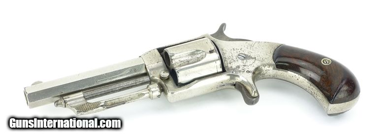 Wesson and Harrington No.4 .38 caliber revolver. Total production for this caliber is estimated at 500. Serial number is 86 on cylinder barrel and frame. Action works perfectly. Gun has 93-95% original nickel. Fine rosewood grips have 3 nicks on the right side. Bore is fair with wear. This is a scarce revolver in fine condition.