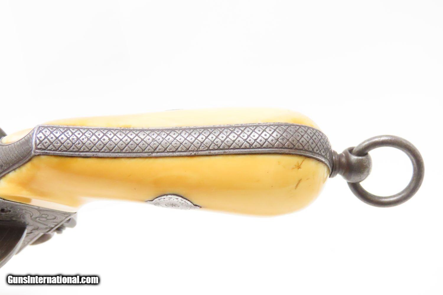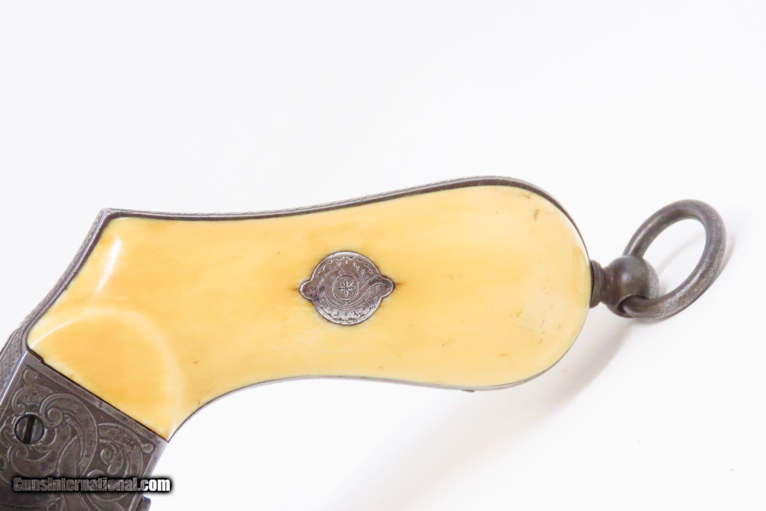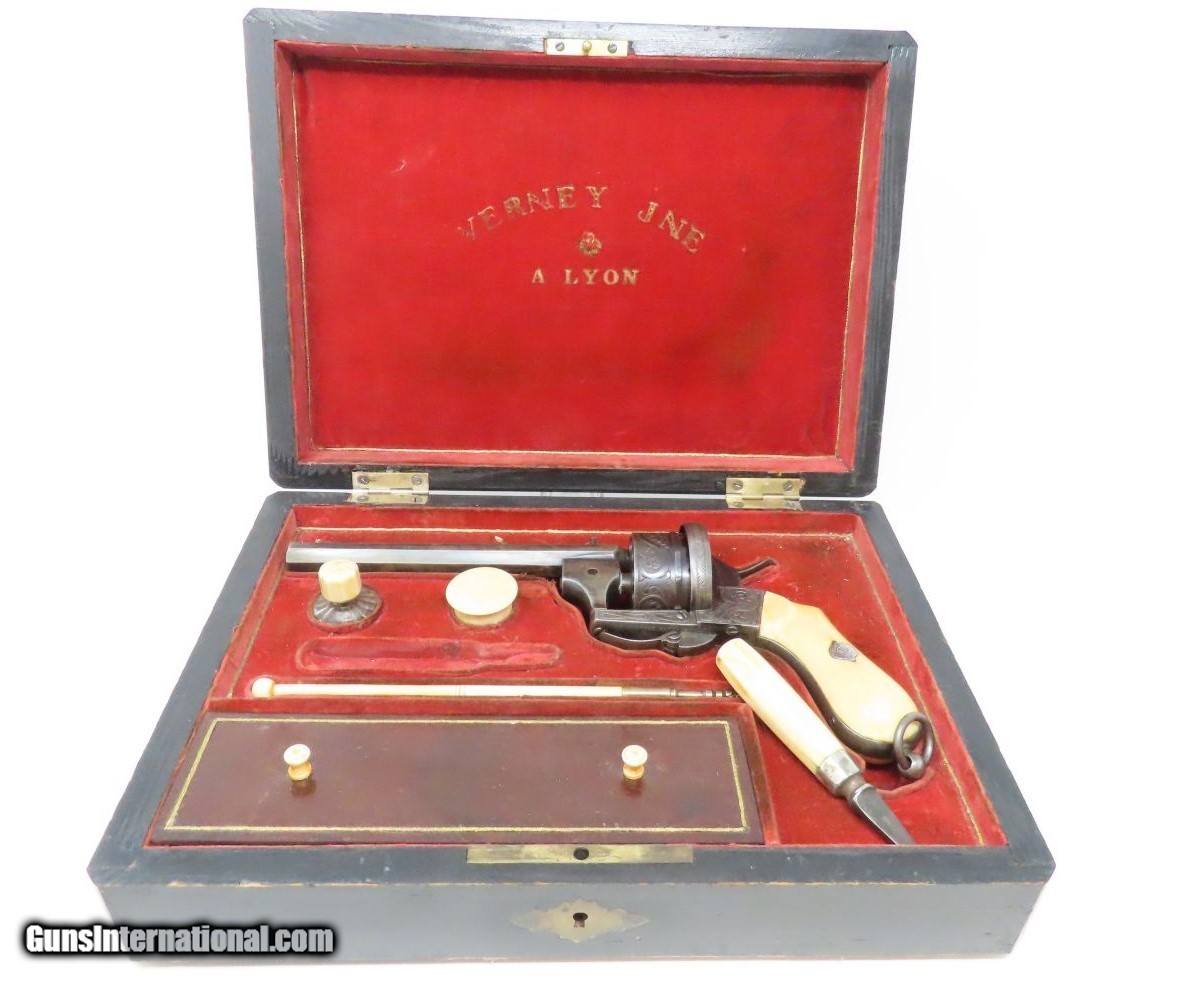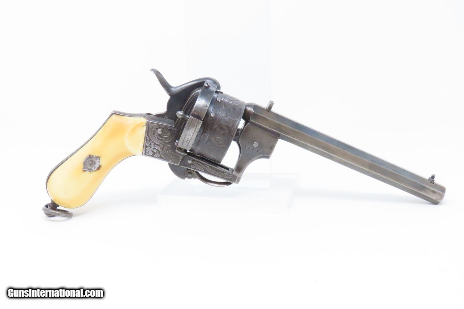 12-Shot Revolver CASED, ENGRAVED Antique ARENDT Pinfire 7.65mm LYON, FRANCE Fully Outfitted with IVORY GRIP & Accoutrements