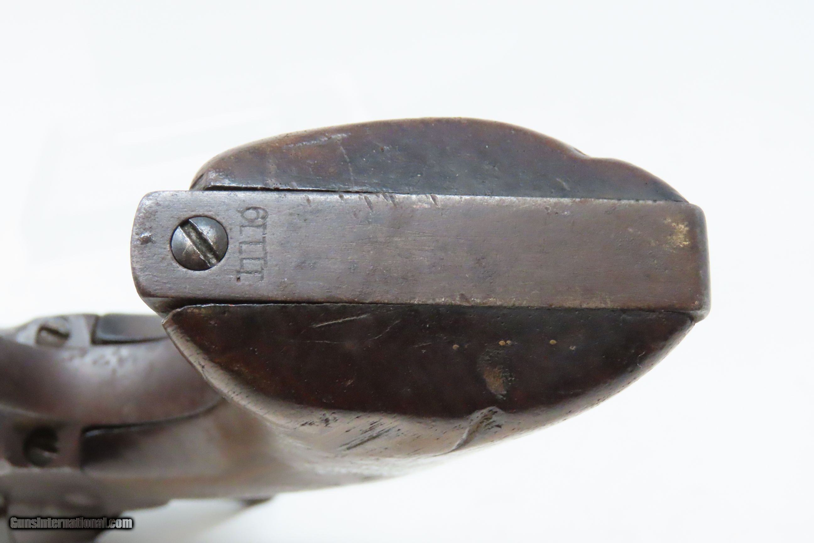 Description: 1874 AINSWORTH US CAVALRY Revolver 45 COLT GOVT Peacemaker 1873 SAA Antique Single Action Army Made Two Years Prior to CUSTER’S LAST STAND Here we present an antique Colt Single Action Army Revolver, manufactured in 1874 under the observation of Orville W. Ainsworth, the first Principal Sub-Inspector assigned to Colt by the War Department, in Hartford, Connecticut. The Colt SAA revolvers used by General George Custer and his men were manufactured in 1874, as is this example, though this one was from a later lot than those known to have been assigned to the 7th Cavalry. According to Kopec and Fenn in Colt Cavalry & Artillery Revolvers, a Continued Study the 7th Cavalry Colts were found almost exclusively in Colt Lots 5 and 6 representing serial numbers 4500-5504, 5505-6516, and 6517-7527. It is estimated that 252 to 300 Colt revolvers were lost in the Battle of The Little Big Horn to hostiles. The top of the barrel is marked with the one line Colt address “COLT’S PT.F.A. MFG. CO. HARTFORD, CT. U.S.A.” The left side of the frame is marked with the two line, two patent dates followed by the “U.S.” Ordnance acceptance marking. The bottom of the barrel ahead of the cylinder pin as well as the exterior of the cylinder are marked with an “A” an “P”. There is also an “A” on the trigger guard below the serial number and the top of the grip frame. These revolvers saw use throughout the Indian Wars as well as the Spanish American & Philippine American Wars. There is a lot of history here. The overall condition is very good. Dark patina throughout. The action is strong; the hammer holds the safety notch and full-cock but not half-cock at present. The bore is in very good condition: clean with strong rifling. The grip is solid and tight to the frame, showing honest use with some chipping at the bottom corners and the bottom skirt. The numbers match on the barrel, cylinder, frame, trigger guard, and grip frame. Own the original! This is a legitimate antique and not a reproduction. Barrel is 7-1/2 inches. Caliber: .45 Colt Overall condition as seen in photos. Very Fast. Very Safe. FREE SHIPPING WORLDWIDE. Delivered directly to your door by express mail! Guaranteed AUTHENTIC & Includes CERTIFICATE OF AUTHENTICITY. ancestryguns $8650 #227983 SOLD Antique: Yes |