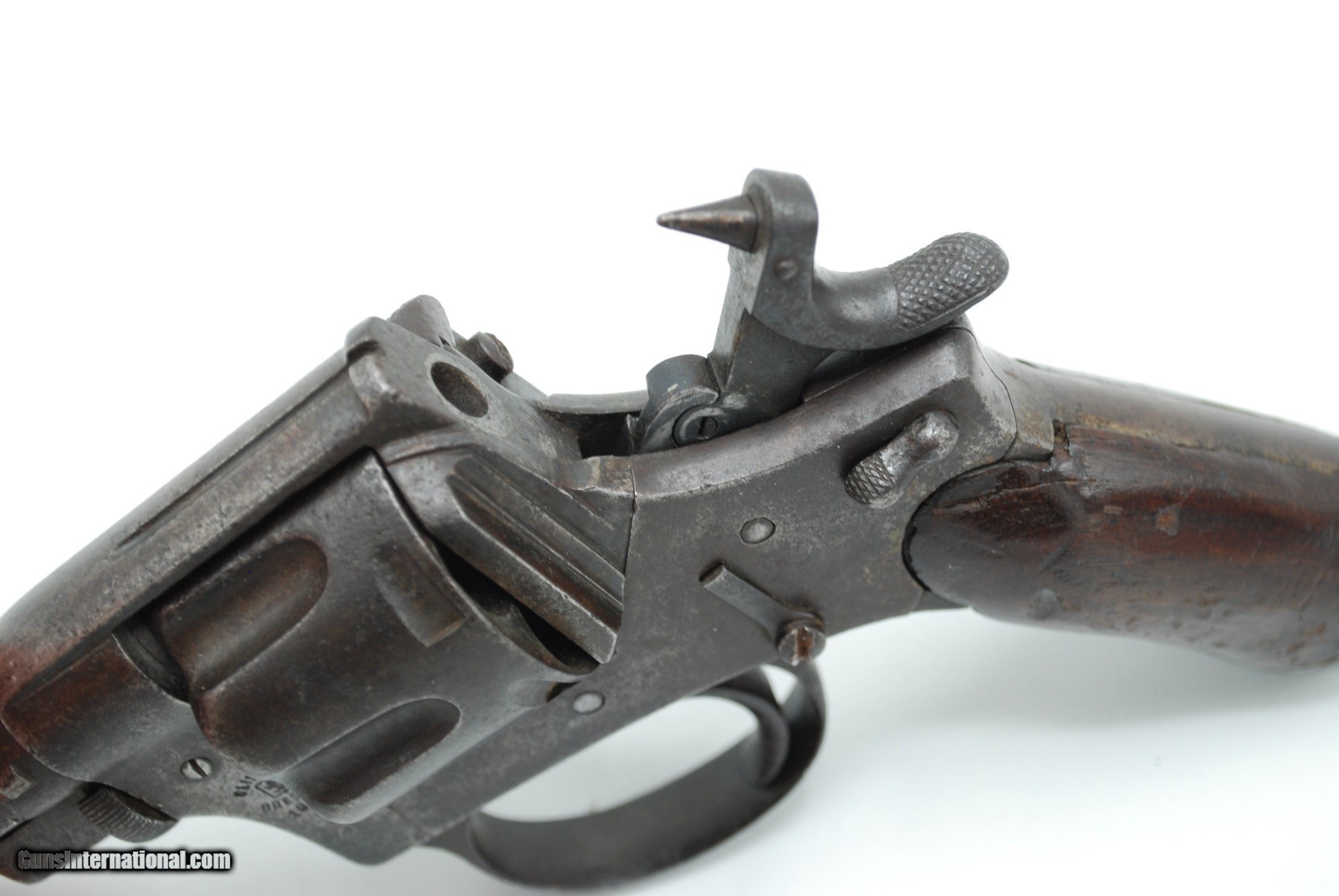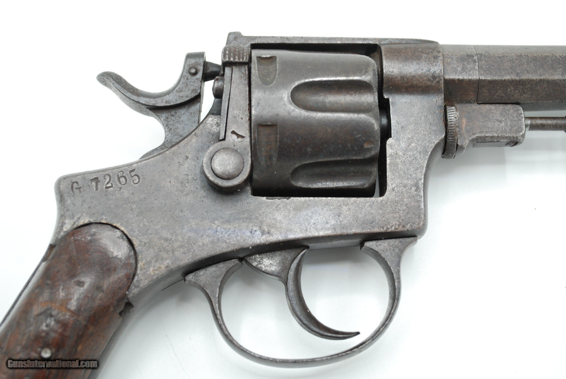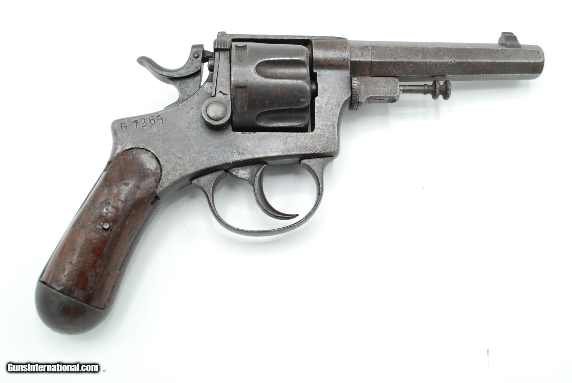 Description: This is a decent example of a model 1889 service revolver, officers variation with trigger guard. The gun is dated 1896, action is tight, Abadie system works, bore is shiny with strong rifling. No license needed to buy except NJ and NYC residents. Visa/MC add 3% SOLD Antique: Yes |