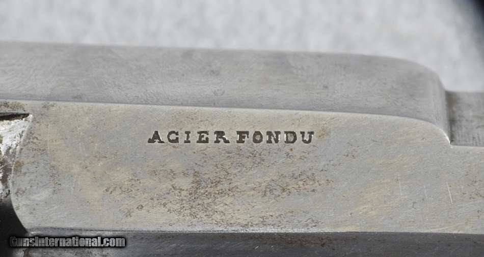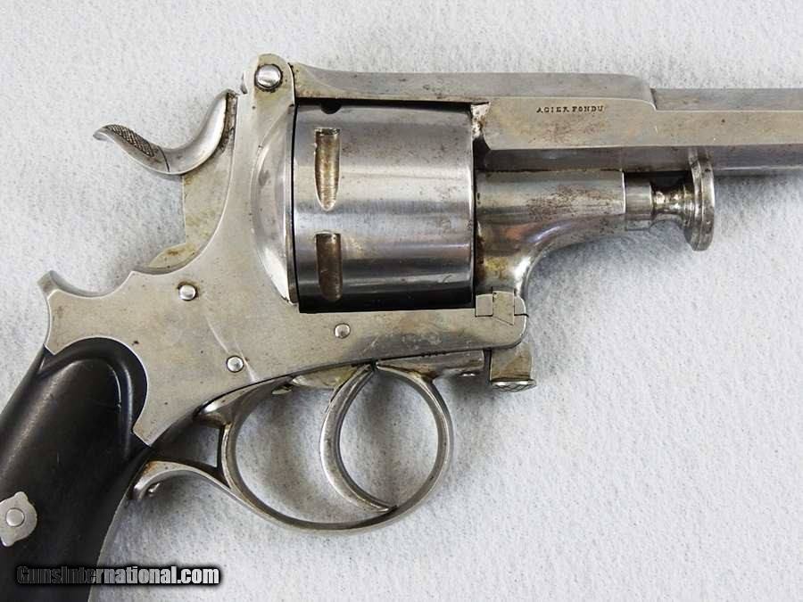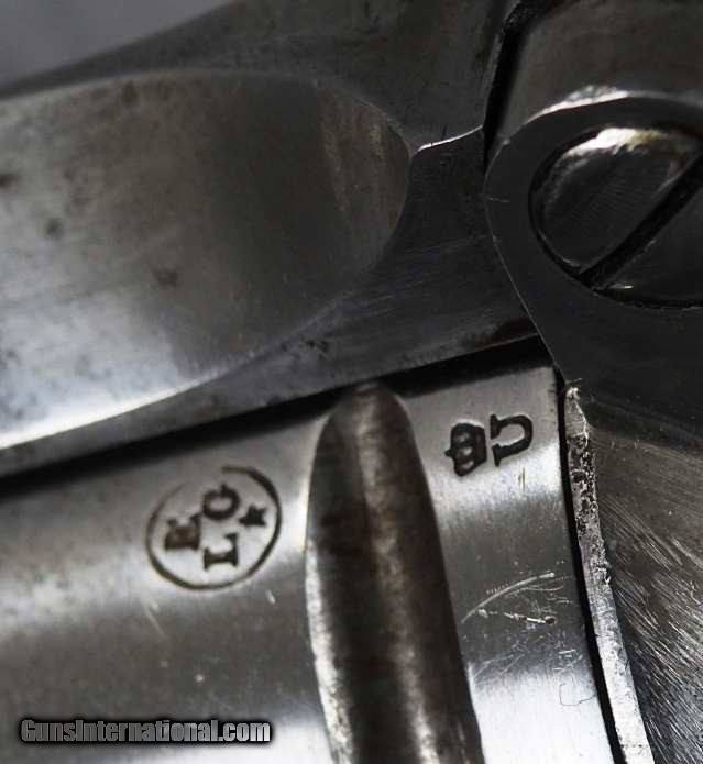Description: This is a hinge up release to load and eject empty cartridges. The left side of the barrel is marked AL SPIRLET & Cie with a Crown over U and serial number 5514. Right side barrel is marked ACIER FONDU. The cylinder is marked Crown over U and the ELG with a star within the oval. The grips appear to be ebony and are in excellent condition. It has a 5 ¾” barrel and is about 10 5/8” overall. The mechanical function is very good crisp and tight. The bore is excellent bright and shiny. This revolver is finished in the white and was made between 1870 and 1875.I would consider trades for pre 1899 ANTIQUE PISTOLS and rifles on any of my items.. WHAT DO YOU HAVE TO TRADE? Ask about our 30-90 day lay-away program. We accept Bank Check, Money order, Personal checks or wire transfer. SOLD Antique: Yes Manufacturer: AL SPIRLET & Cie Model: 450 Caliber D.A. Revolver Serial Number: 5514 |