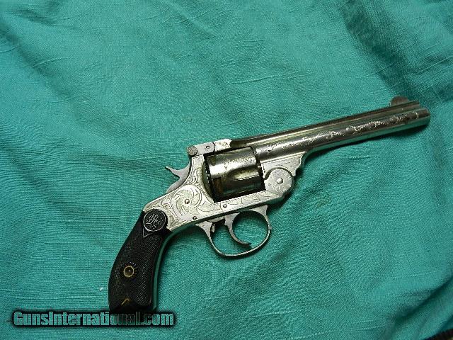 Description: An unusual long barrel engraved Andrew Fryberg revolver with works well. The 5" barrel has a bore with good rifling a scattered patches of corrosion, but will spin a bullet.The original nickle finish has about 92% remaining, and the trigger guard once blue is now grey. Gun indexes good, lockup a little loose on the cylinder, not a shooter.The black hard rubber grips are very good, and unique to this gun. Never seen one like this before!We don’t have a store, and sell on the internet only. We don’t have asite. OUR DESCRIPTIONS ARE ACCURATE.THREE DAY INSPECTION ON ALL PURCHASES. SOLD Antique: Yes |