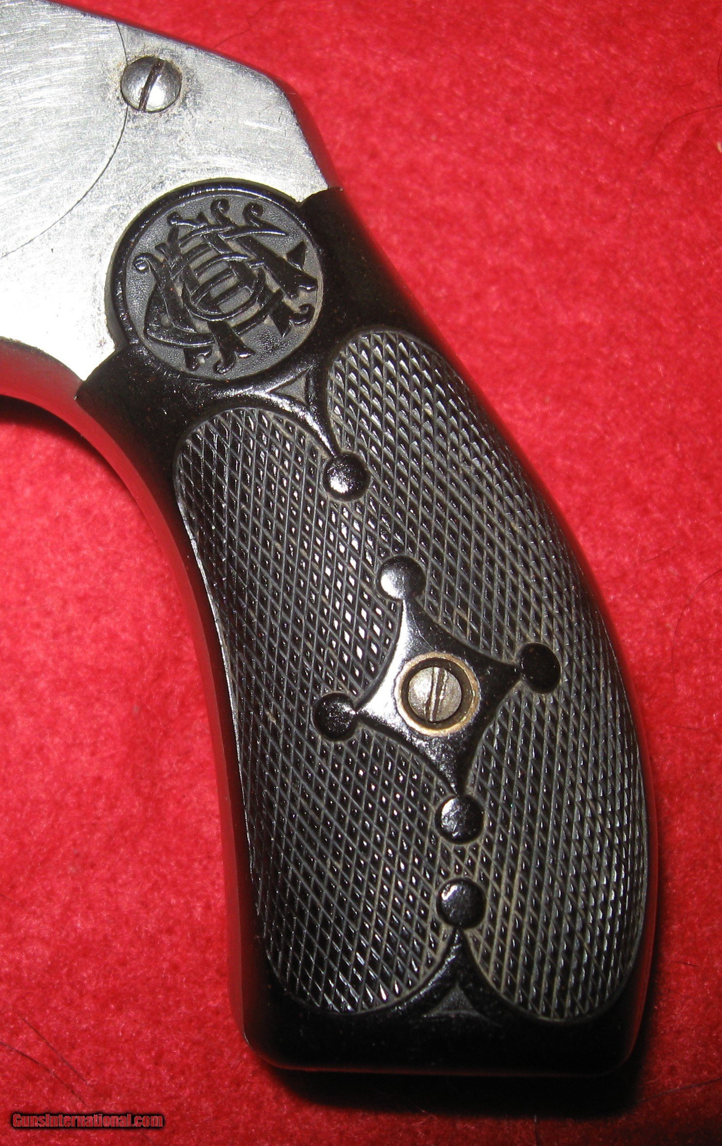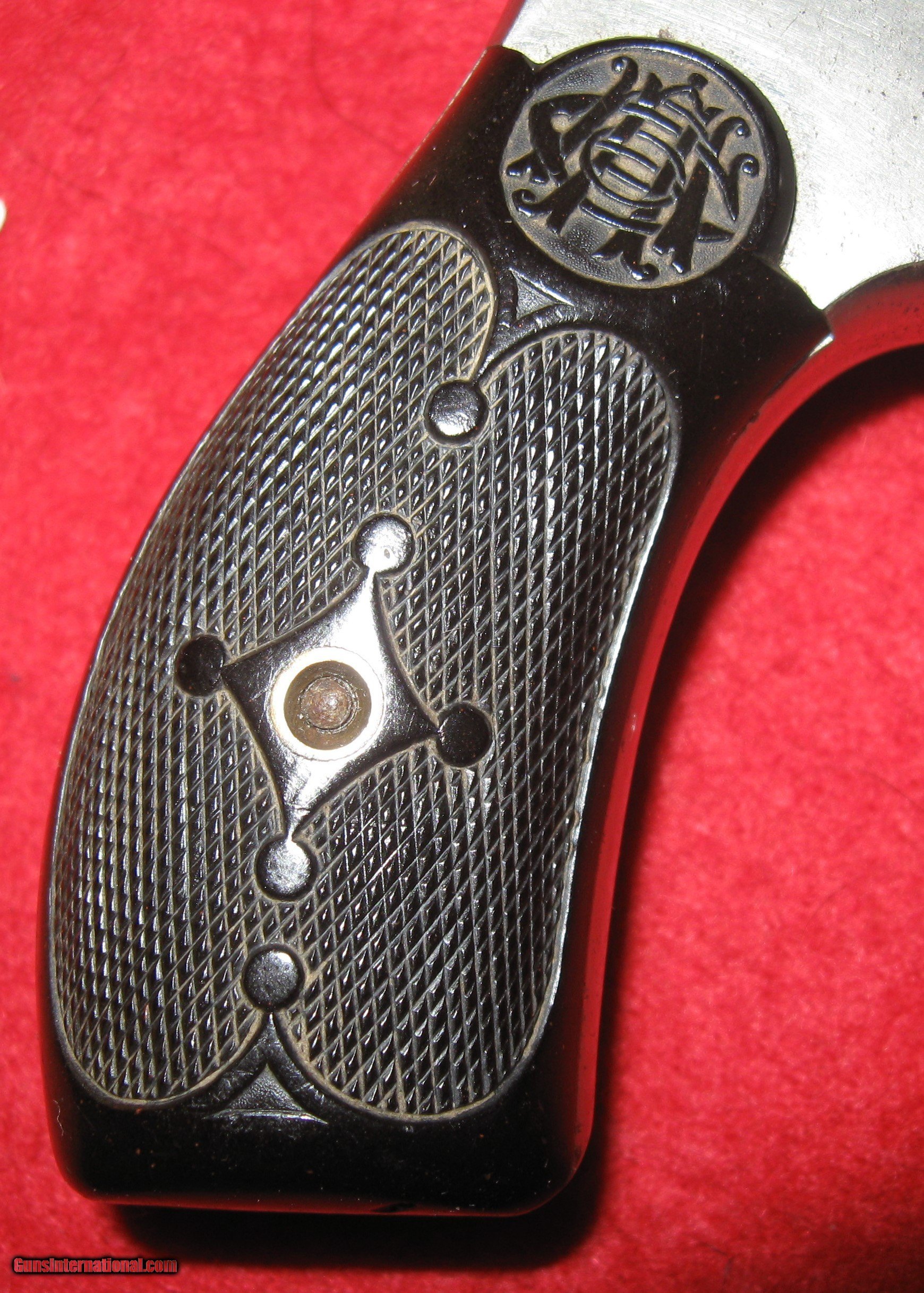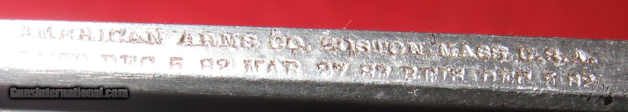 Description: shipped 8-10-21-JON V-THIS ANTIQUE REVOLVER WAS MADE BY AMERICAN ARMS COMPANY BETWEEN 1883 AND 1887. IT IS CHAMBERED FOR THE 38 S&W BLACK POWDER CARTRIDGE. THE TOP BREAK LATCH SPRING IS MISSING OR BROKEN, BUT OTHERWISE IT IS IN EXCELLENT WORKING ORDER. IT IS SERIAL # 13262. THE 3 3/8" BARREL HAS VERY GOOD RIFLING WITH SOME LIGHT SCATTERED PITTING. THE CHAMBERS ARE IN VERY GOOD CONDITION AND THE CYLINDER LOCKS UP SNUGLY WITH A CRISP BUT HEAVY TRIGGER PULL. IT IS A SINGLE ACTION WITH A MANUALY ACTUATED EJECTOR RING THAT PULLS THE EMPTY CARTRIDGES OUT, A DESIGN I HAVEN'T SEEN BEFORE. THE ORIGINAL NICKEL FINISH IS STARTING TO THIN AND SHOW SOME SCATTERED RUST SPOTS. THE GRIPS ARE IN VERY GOOD CONDITION WITH ONE DIMPLE ON THE BOTTOM OF THE RIGHT GRIP. SHIPPING IS $23.50 DIRECT USPS PRIORITY MAIL. PROOF OF 21 YEARS OF AGE OR MILITARY ID REQUIRED FOR PURCHASE. SOLD Antique: Yes Handgun Caliber: .38 S&W (.38 Colt New Police, .38 Super Police) Manufacturer: AMERICAN ARMS COMPANY Model: TOP BREAK REVOLVER Serial Number: 13262 Barrel Length: 3 3/8 Chambers: VERY GOOD SCATTERED LIGHT RUST Ejectors: MANUAL Condition: VERY GOOD - BROKEN TOP BREAK LEVER RETURN SPRING Metal Condition: VERY GOOD Wood Condition: VERY GOOD Bore Condition: VERY GOOD WITH SCATTERED LIGHT PITTING AND EXCELLENT RIFLING Action: SINGLE Finish: NICKEL- THINNING SOME RUST SPOTS Sights: FIXED OPEN Manufacture Date: 1883-1887 Extras: LLBEAN LEATHER PISTOL CASE |