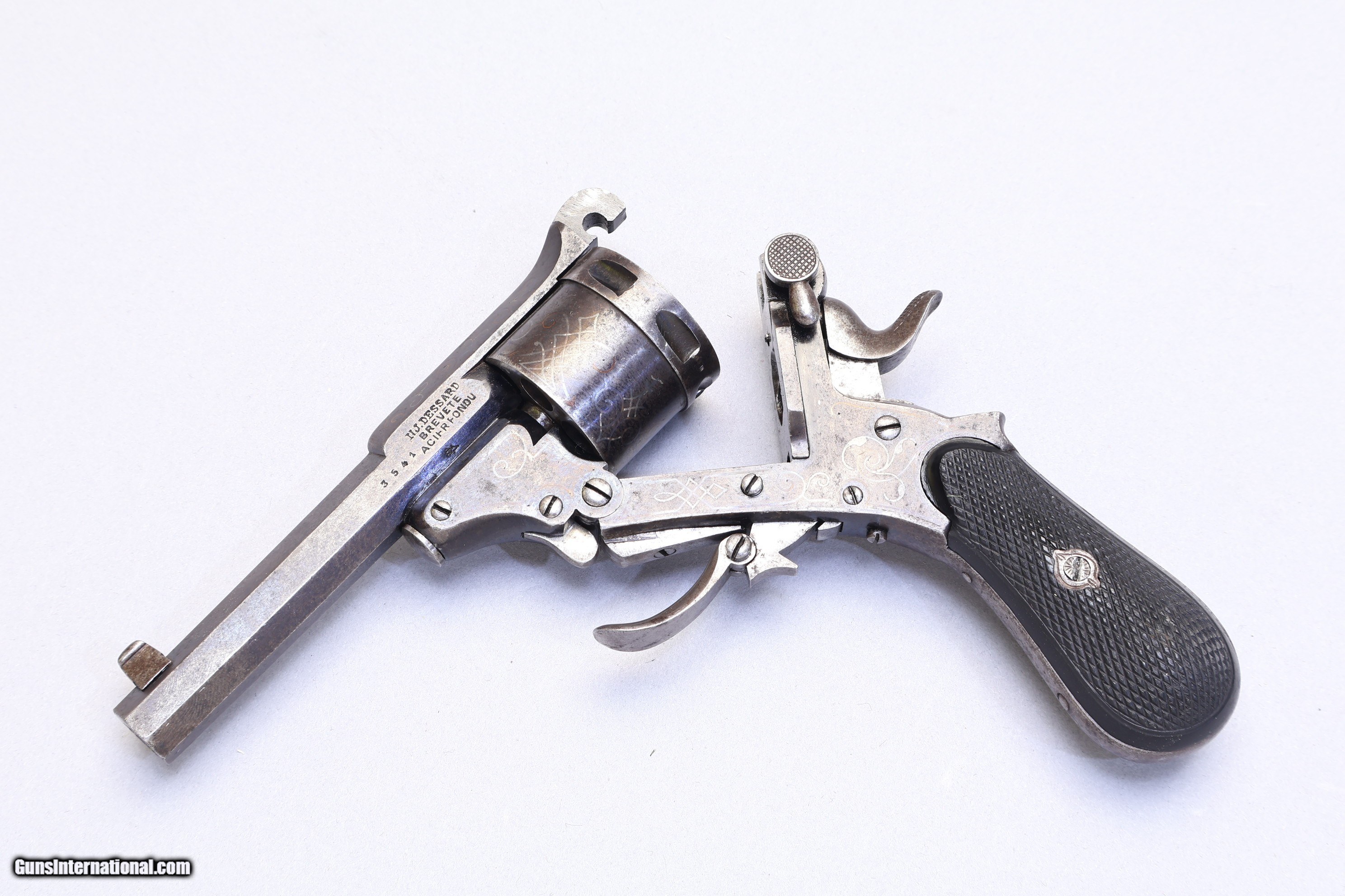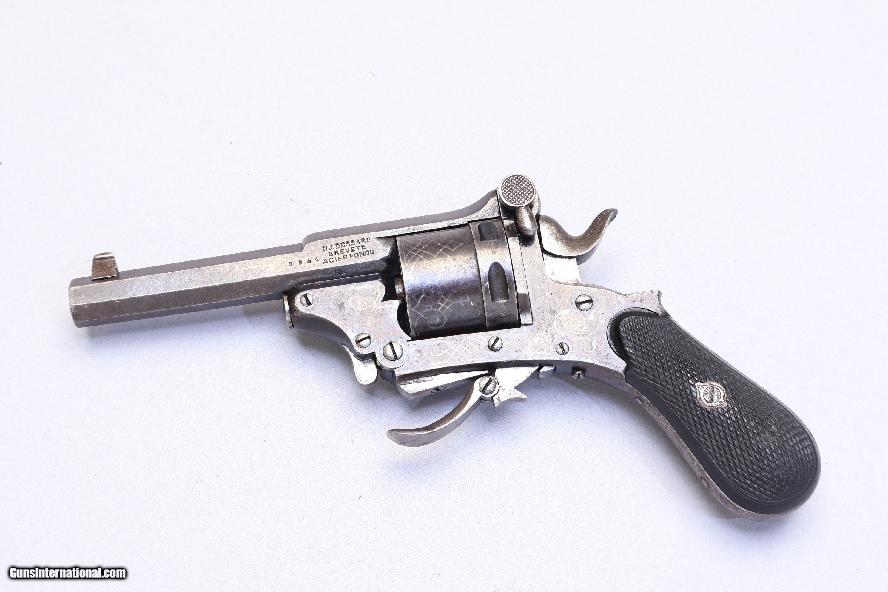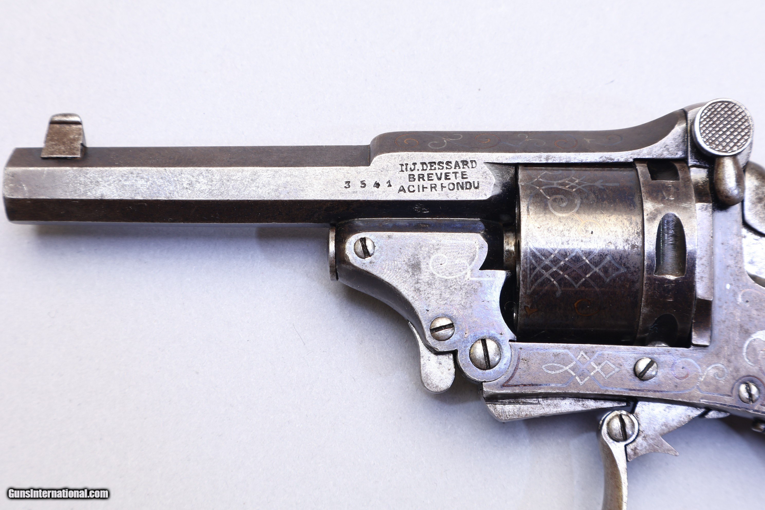 Description: Antique Dessard Top-Break Double Action Revolver Cal .320 [Adapted Specs like 3 1/2 inch Barrel | 6-Shot Drum | Serial N-6747 | Overall Length 10 inch | Belgium, 1896 | Caliber .320 | Top-Break Double Action revolver] Antique Dessard Top-Break Double Action Revolver Cal .320 is a historic Belgium-made revolver featuring a top-break action and a six-shot drum. It sports a distinctive heptagonal barrel and a compact profile that suits display and historical study as well as field use. This example was manufactured in 1896 in Belgium by Dessard and carries serial N-6747. It features a 3 1/2 inch heptagonal barrel and an overall length of 10 inch, with a six-shot drum chambered for .320 and a top-break double-action mechanism. The bore is clean, bright bores and sharp rifling.