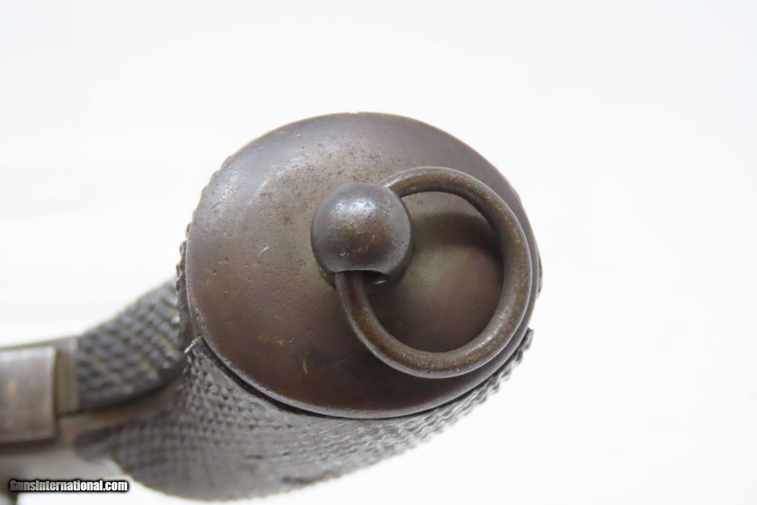 Description: Antique DUTCH COLONIAL Model 1891 “KNIL” Double Action 9.4mm Cal. Revolver Developed by the EAST INDIES SMALL ARMS Arsenal Here we present an Antique Dutch Model 1891 Military Revolver chambered in 9.4mm, made in 1895. Most of these revolvers were made at the Pyrotechnische Werkplants factory in Surabaya, Java. This revolver was developed by the East Indies Small Arms Arsenal and initially manufactured by JFJ Bar to the design of Captain F.W.H. Kuhn in Luttich as the side arm of the KNIL (Koninkliik Nederlandsch-Indisch Leger – Royal Dutch East Indies Army). The Model 1891 as it is known was entered into service in 1895, the year this revolver was manufactured. It is estimated that the initial production totaled approximately 3754 revolvers and were issued to the Dutch armed forces and Police that were deployed in the East Indies. These guns used the 9.4mm round that saw its beginning in the early Nagant Rolling Block double barrel police pistol, and the Nagant brothers had a lot to do with the development of the early Dutch Military revolvers. The 9.4mm round was popular with the Dutch, although Nagant and everyone else moved to other calibers, and eventually this caliber became synonymous with the Netherlands. The Model 1891 was phased out for use in the Colonial Army somewhere around 1927 being replaced by the M11. Even then, the M1891 stayed on in Police service. Overall, the Model 1891 was still in regular use well into World War II, and many of these revolvers were captured by the Japanese when the KNIL surrendered in 1942 and subsequently use by them. Many of these revolvers the “recaptured” by allied forces, primarily American and Australian, and taken home as souvenirs. The overall condition is very good. Original patina. The action is excellent. The bore is clean with good rifling. Cylinder has British black powder proofs on the back. The grips are solid with apparent wear and a clear coat. A neat Dutch antique revolver! Own the original! This is a legitimate antique and not a reproduction. Barrel is 4-1/2 inches. Caliber: 9.4mm Overall condition as seen in photos. Very Fast. Very Safe. FREE SHIPPING WORLDWIDE. Delivered directly to your door by express mail! Guaranteed AUTHENTIC & Includes CERTIFICATE OF AUTHENTICITY. ancestryguns $1100 #217564 SOLD Antique: Yes |