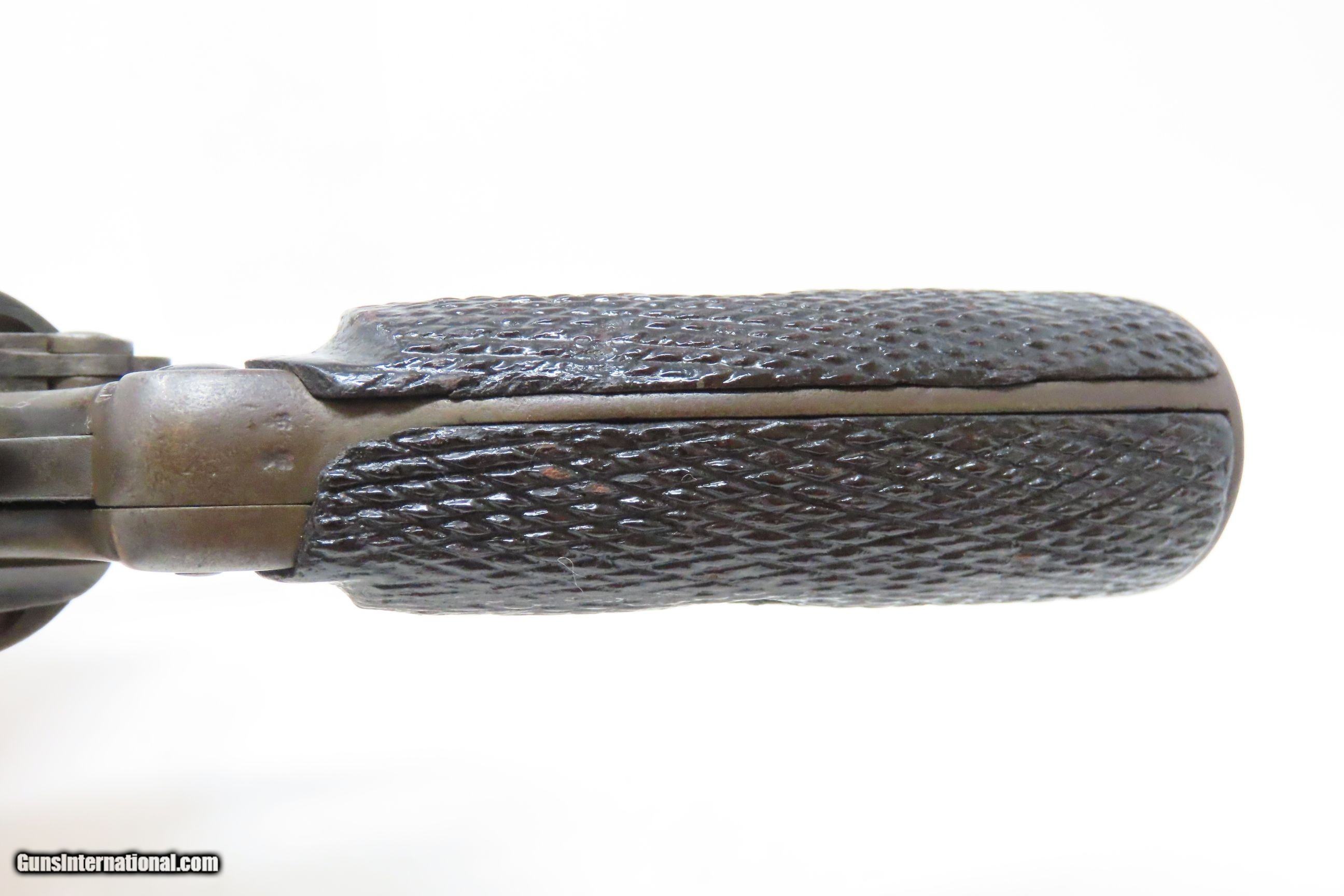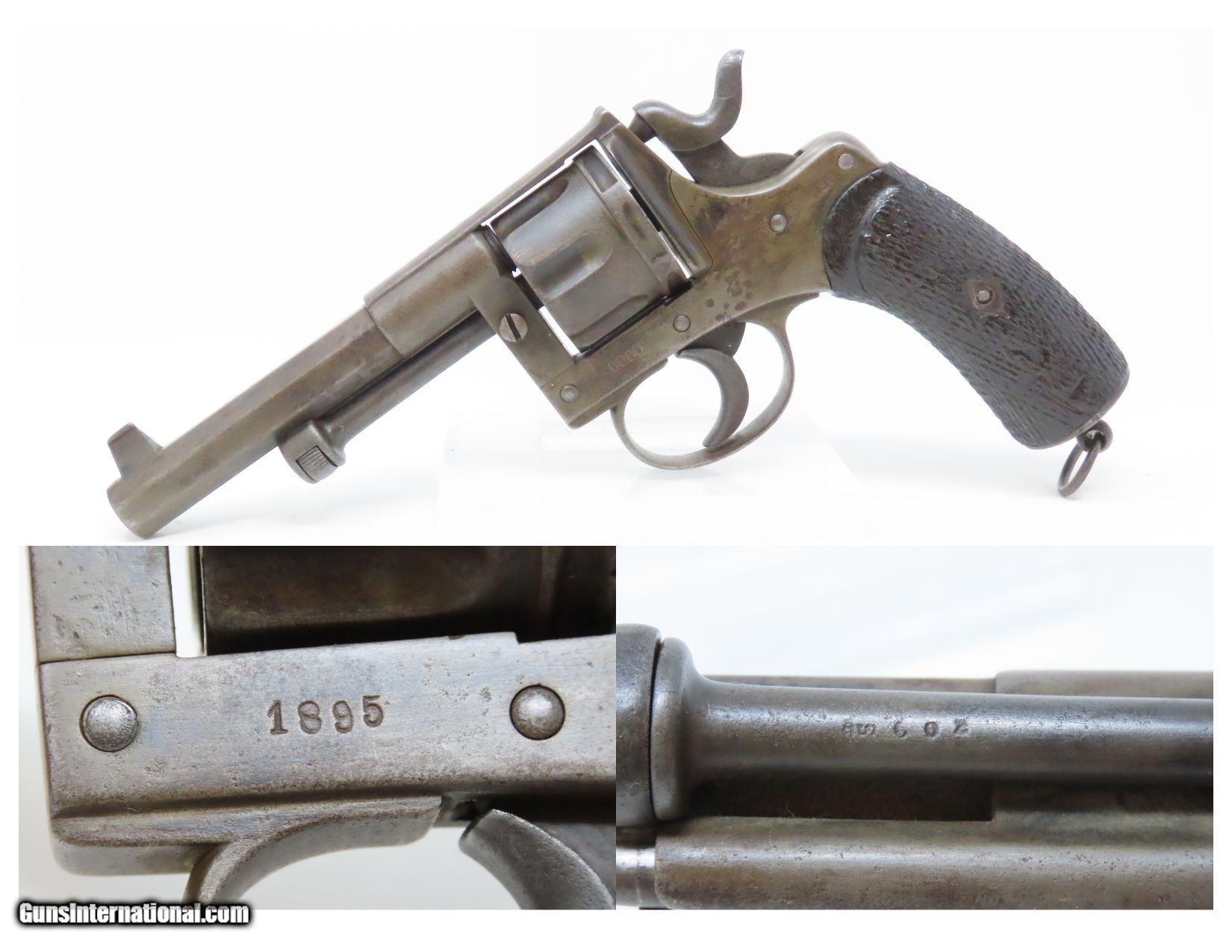 Description: Antique DUTCH COLONIAL Model 1891 “KNIL” Double Action 9.4mm Cal. Revolver Developed by the EAST INDIES SMALL ARMS Arsenal Here we present an Antique Dutch Model 1891 Military Revolver chambered in 9.4mm, made in 1895. Most of these revolvers were made at the Pyrotechnische Werkplants factory in Surabaya, Java. This revolver was developed by the East Indies Small Arms Arsenal and initially manufactured by JFJ Bar to the design of Captain F.W.H. Kuhn in Luttich as the side arm of the KNIL (Koninkliik Nederlandsch-Indisch Leger – Royal Dutch East Indies Army). The Model 1891 as it is known was entered into service in 1895, the year this revolver was manufactured. It is estimated that the initial production totaled approximately 3754 revolvers and were issued to the Dutch armed forces and Police that were deployed in the East Indies. These guns used the 9.4mm round that saw its beginning in the early Nagant Rolling Block double barrel police pistol, and the Nagant brothers had a lot to do with the development of the early Dutch Military revolvers. The 9.4mm round was popular with the Dutch, although Nagant and everyone else moved to other calibers, and eventually this caliber became synonymous with the Netherlands. The Model 1891 was phased out for use in the Colonial Army somewhere around 1927 being replaced by the M11. Even then, the M1891 stayed on in Police service. Overall, the Model 1891 was still in regular use well into World War II, and many of these revolvers were captured by the Japanese when the KNIL surrendered in 1942 and subsequently use by them. Many of these revolvers the “recaptured” by allied forces, primarily American and Australian, and taken home as souvenirs. The overall condition is very good. Original patina. The action is excellent. The bore is clean with good rifling. Cylinder has British black powder proofs on the back. The grips are solid with apparent wear and a clear coat. A neat Dutch antique revolver! Own the original! This is a legitimate antique and not a reproduction. Barrel is 4-1/2 inches. Caliber: 9.4mm Overall condition as seen in photos. Very Fast. Very Safe. FREE SHIPPING WORLDWIDE. Delivered directly to your door by express mail! Guaranteed AUTHENTIC & Includes CERTIFICATE OF AUTHENTICITY. ancestryguns $1100 #217564 SOLD Antique: Yes |