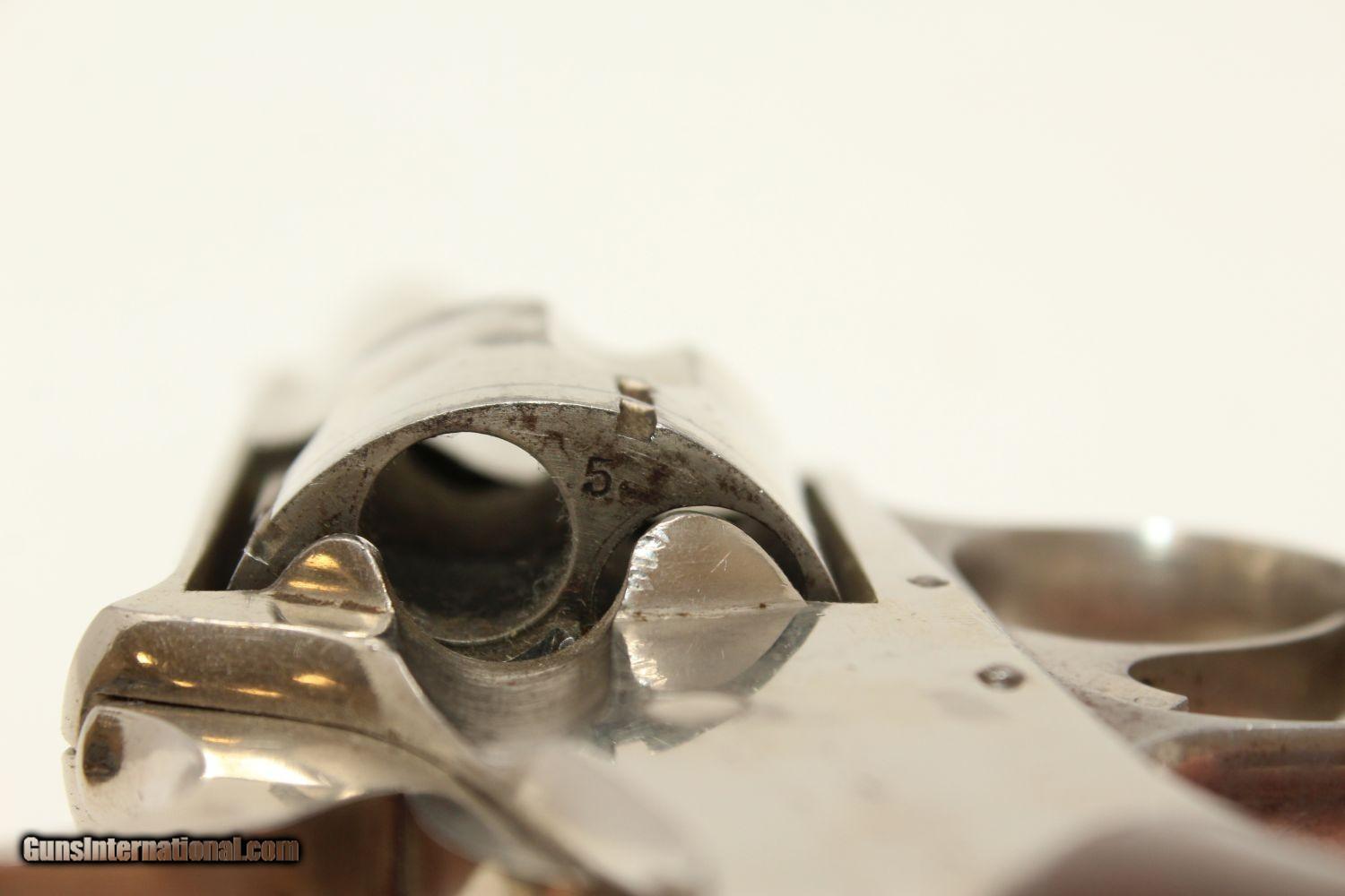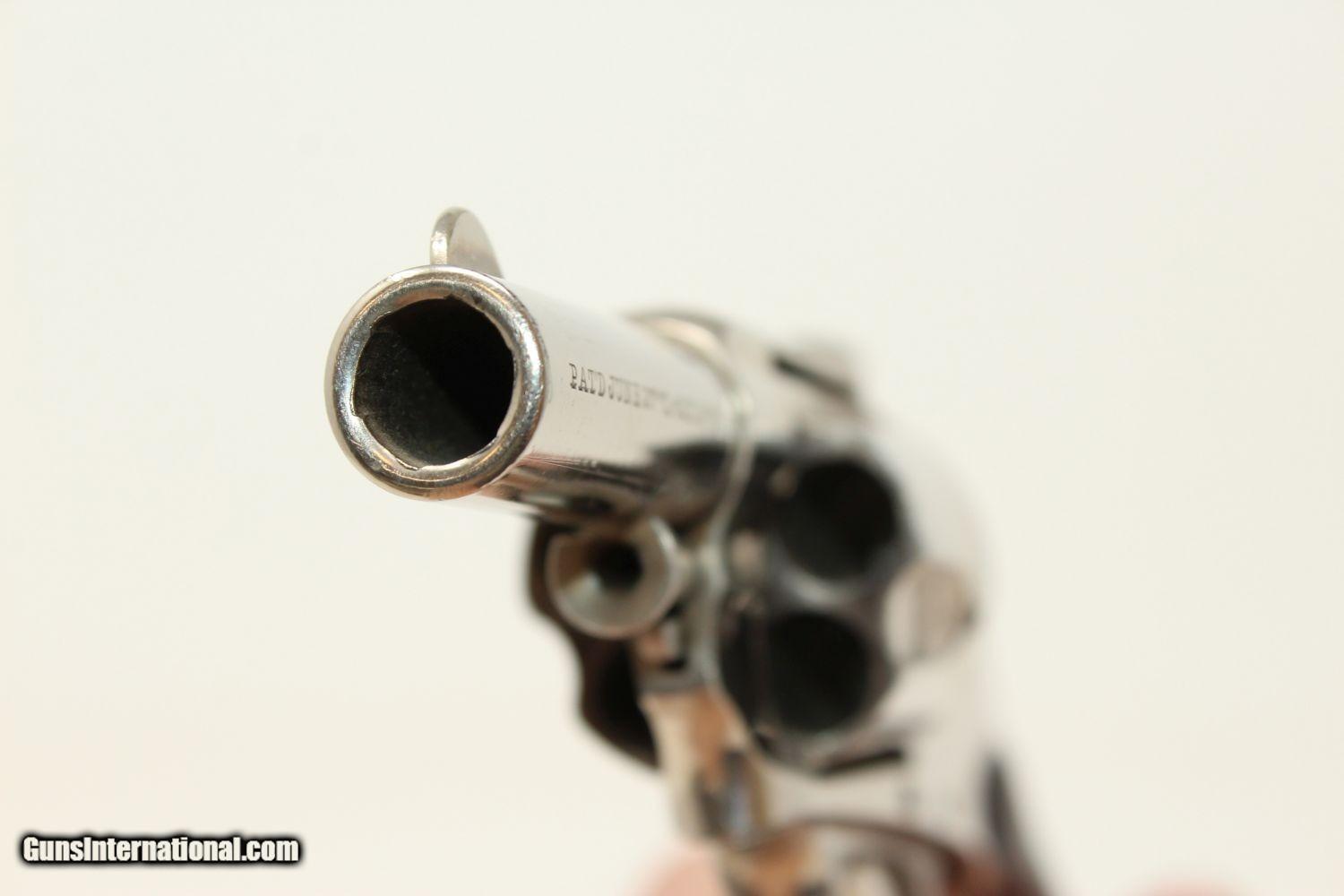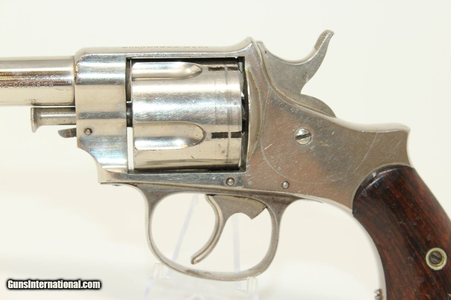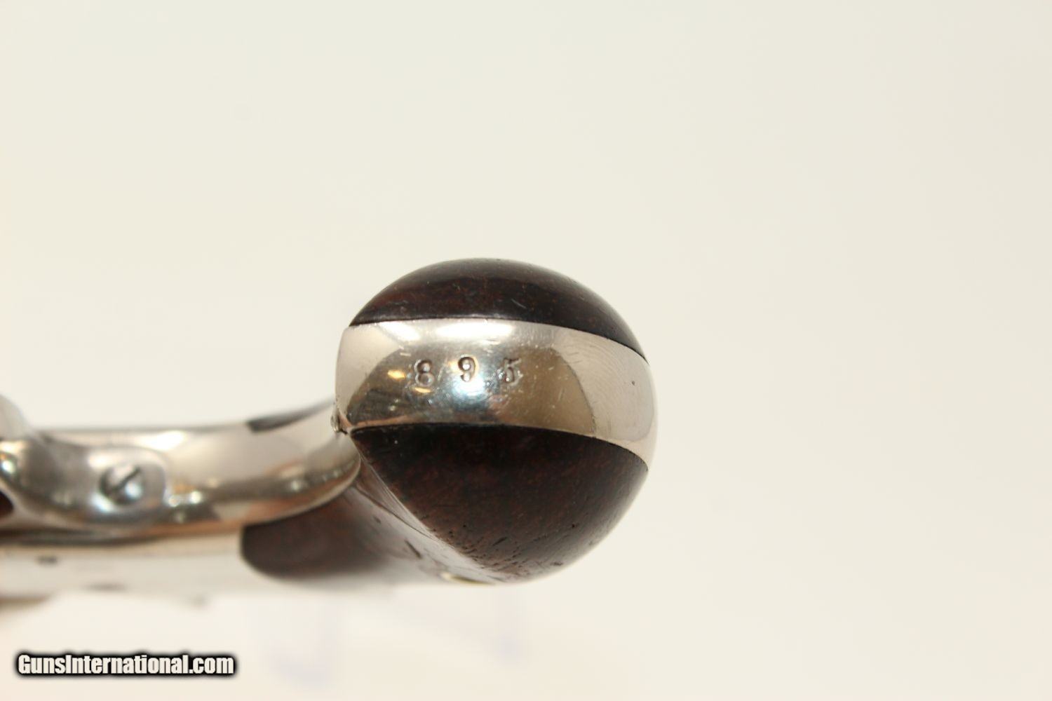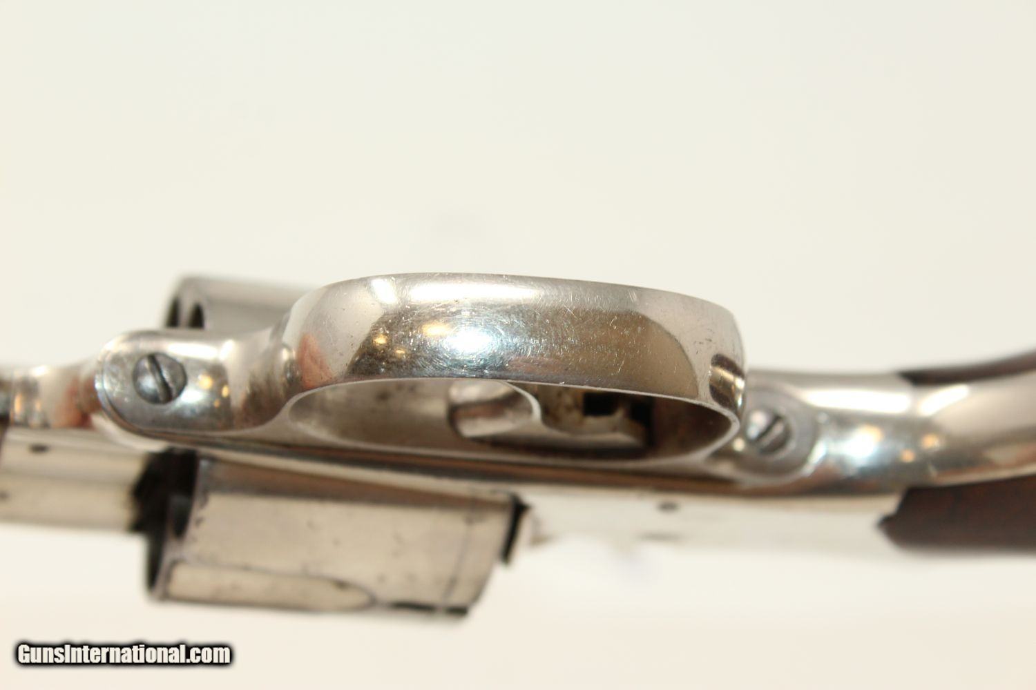 Description: Antique FOREHAND & WADSWORTH “Number 41” Revolver 5-Shot .41 Rimfire Double Action Revolver! Here we present an antique Forehand & Wadsworth No. 41 Double Action Revolver in .41 Rimfire, made circa the 1870s in Worcester, Massachusetts. In 1871, Sullivan Forehand and Henry C. Wadsworth founded Forehand & Wadsworth from the remnants of Ethan Allen & Company after the death of their father-in-law, successful firearms inventor and manufacturer from the 1830s, Ethan Allen. Wadsworth sold his share of the company to Forehand in 1890 in order to retire, and the company was rebranded as Forehand Arms. This revolver was manufactured in the late-19th century in Worcester, Massachusetts. It would have made a great self defense sidearm. This revolver has a great aesthetic and looks and feels like a quality gun through and through. The top of the barrel is marked “PAT’D JUNE 27’71-OCT.28’73”. The top of the frame is marked “FOREHAND & WADSWORTH/DOUBLE ACTION NO.41/WORCESTER.MASS”. The overall condition is very fine. 96% of the original nickel finish remains. The markings are clear. The rosewood grips are in fine shape. The bore is clean with nice rifling. The action is excellent in both double and single action, strong and smooth. Here is a distinctive revolver that would have competed against the likes of the Colt House and Remington Smoot in the 1870s! Own the original! This is a legitimate antique and not a reproduction. Barrel is 2-3/8 inches. Caliber: .41 Rimfire Overall condition as seen in photos. Very Fast. Very Safe. FREE SHIPPING WORLDWIDE. Delivered directly to your door by express mail! Guaranteed AUTHENTIC & Includes CERTIFICATE OF AUTHENTICITY. ancestryguns $885 #190598 SOLD Antique: Yes |