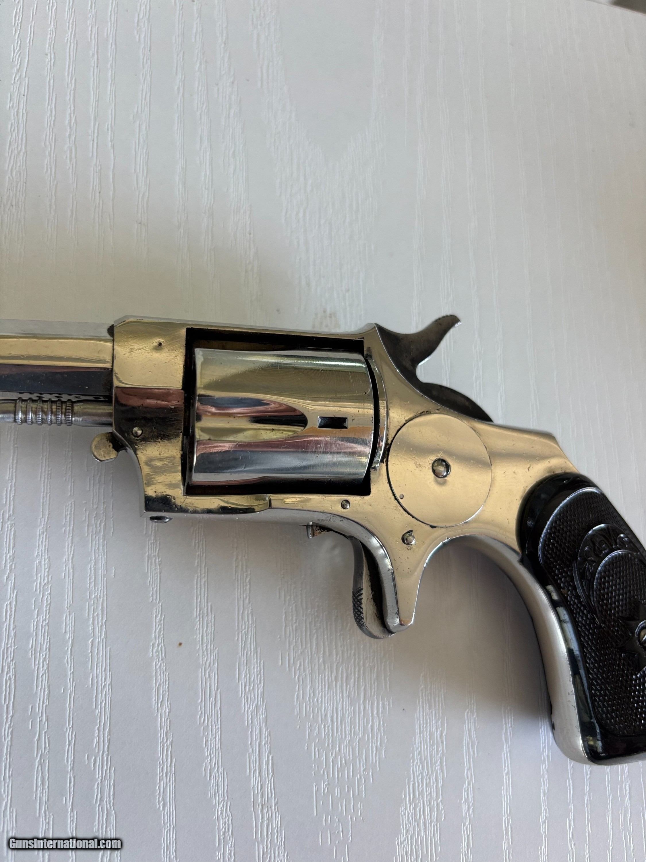 Description: ANTIQUE Forehand & Wadsworth Russian Model 32 Spur Trigger Revolver Manufacturer: Forehand & Wadsworth Model: Russian Model 32 ( Improved Model ) Serial Number: 6929 Production Years: 1880 - 1889 Description: The Forehand & Wadsworth Russian Model 32 is a classic pocket spur trigger revolver known for its compact size and reliability. This particular model, is a 5-shot revolver chambered in .32 RF. It is characterized by its excellent condition, featuring a 2 ½" barrel with a very nice bore and strong rifling. Features and Condition: The revolver metal finish is in beautiful condition and retains most of its original nickel finish. There are some slight scratches and handling marks , some spot pin-prick pitting mostly on the cylinder. This is very minimal and does not detract significantly from the revolver's overall condition. The black checkered grips with the F&W logo are in excellent condition with just some minor handling marks. All parts are correctly numbered to the gun and all barrel makings are very clear and legibile. The action of the revolver functions very good mechanically with good timing and lock-up. The cylinder hand spring is weak and works excellent when pointed straight or barrel down, and rotates as it should with good timing and lock-up . With the barrel pointed up the hand does not always engage. Probably an easy fix but this revolver is for vintage RF ammo not produced any more. This Russian 32 revolver is an excellent example of a rare and historically significant firearm from the late 19th century . Don’t miss your chance to own a piece of history. $375. reasonaable offers considered. History and Rarity: The Forehand & Wadsworth Russian Model 32 was produced by the company from 1880 to 1889. The specific model was manufactured in 1880, The very first year of production for this model. As an antique firearm, it holds historical significance and represents the craftsmanship of its era. The revolver's excellent condition, combined with its specific year of production and model, adds to its desirability among collectors. This is an antique and no FFL required. Will ship USPS “ FREE SHIPPING “. This gun is sold "as-is" as a collectible with no refund and no return. Payment can be made with bank check, postal money order, or personal check. Credit card payment is available through Gun Tab at checkout. If you prefer instant payment and shipping please email me for account info, I can take Venmo, Zelle or Cash App. Antique: Yes Handgun Caliber: .32 Rimfire Manufacturer: Forehand & Wadsworth Model: Russian Serial Number: 6929 Barrel Length: 2 1/2 Price: $375.00 Buy Now Pay with
