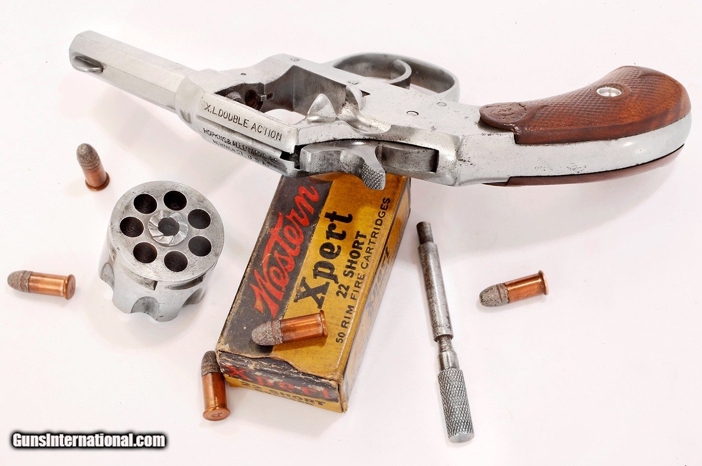 ANTIQUE HOPKINS & ALLEN SMALL POCKET X.L. DOUBLE ACTION 7 RD REVOLVER. NO FFL.