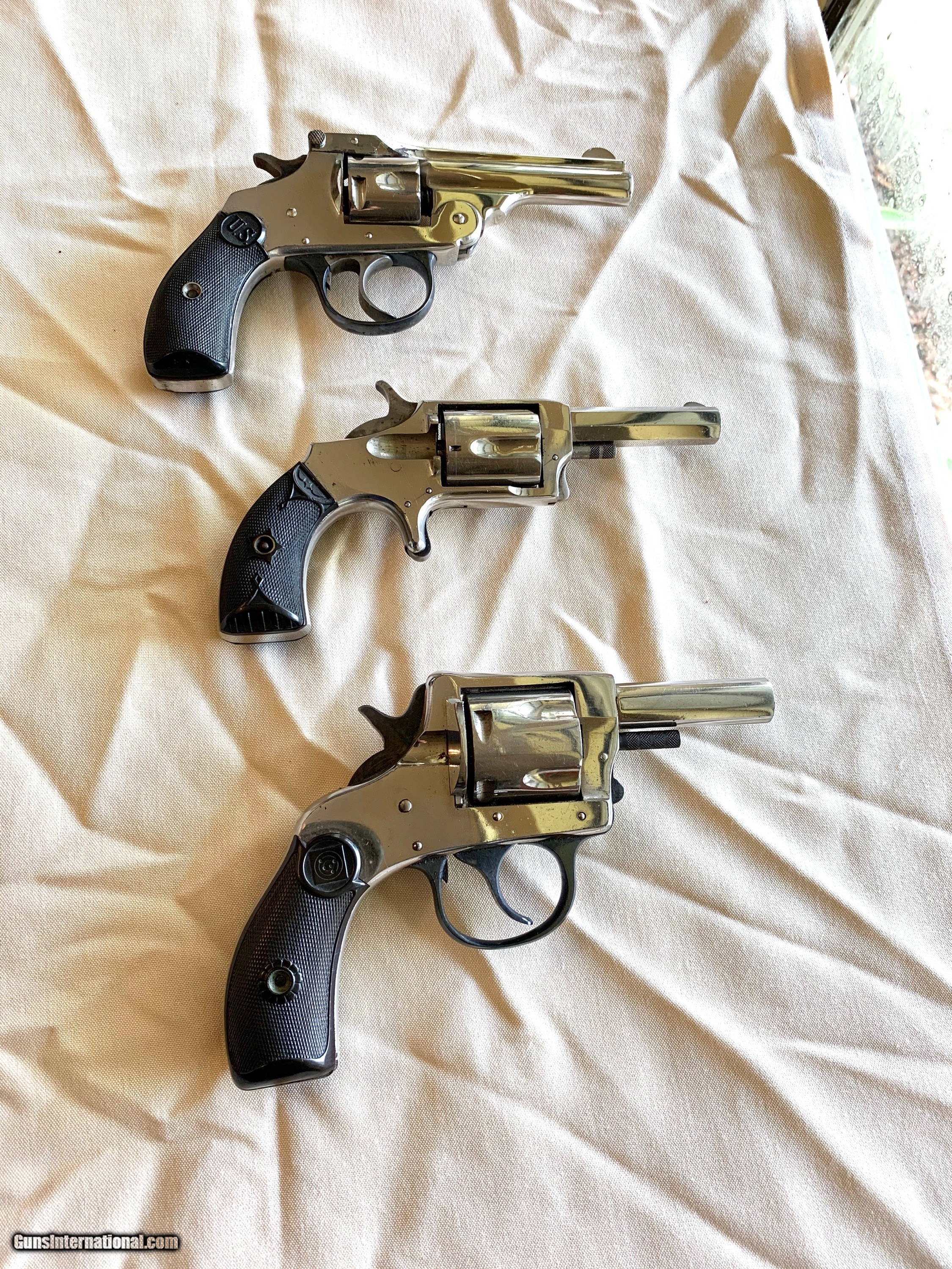 Description: Heres 3 Antique Revolvers in 32 cal . All 3 guns are in Excellent Plus Condition! 100 percent original . All 3 have Original Factory Nickel Finish . All 3 are in Excellent working order . Bores and Mechanics are Excellent Plus! Please review my photos and email me with any questions ? Thank you for looking Little Jo SOLD Antique: Yes |
