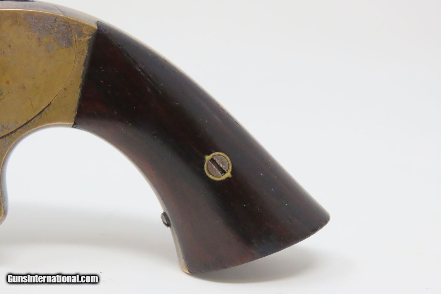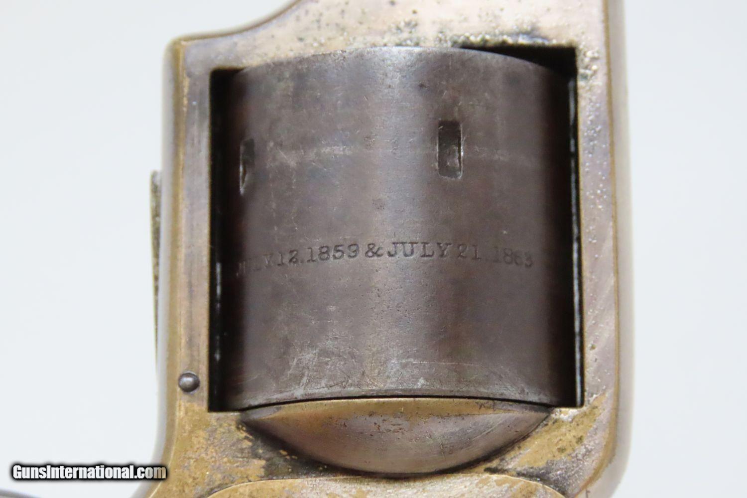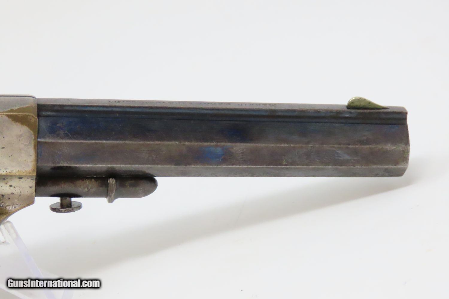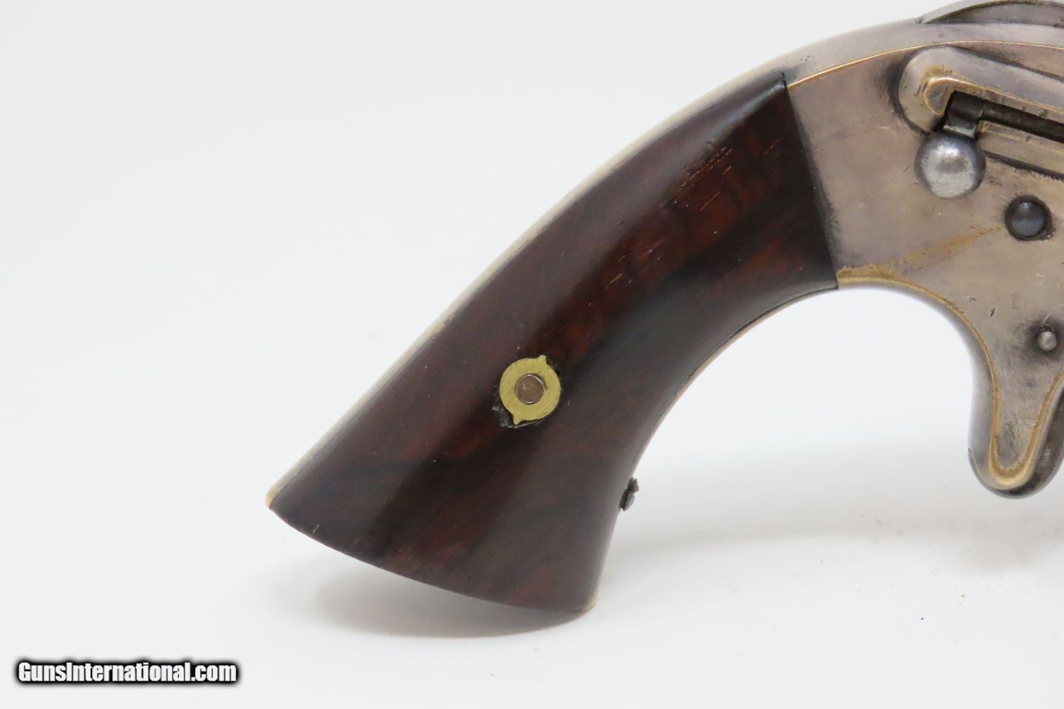 Description: Antique MERWIN & BRAY Front Loading CUP PRIMED Single Action POCKET Revolver Small Scale Version of Plant’s Army Model with HOLSTER! Here we present an antique Merwin & Bray Front Loading Plant Manufacturing Company Pocket Model Revolver, made circa 1865 in New York. Makers of revolvers during the American Civil War had three choices: 1) they could take their chances violating the Smith & Wesson owned Rollin White Patent for the concept of a “bored through cylinder” to accept metallic cartridges, 2) they could continue to make percussion guns with all of their disadvantages, or 3) they could invent their own concept that was both an improvement over percussion guns and circumvented the Rollin White Patent. The latter option is what Plant’s chose. Around 20,000 of these were manufactured in mid-1860s. Atop the barrel rib "MERWIN & BRAY FIRE-ARMS CO" can be read. "PATENTED. JULY 12. 1859. & JULY 21. 1863" can be seen on the cylinder. The serial number is on the barrel, the butt, the left side of the grip, and the inside the right grip. This example also comes with a leather holster with silver heart ornament. Plant’s Mfg. Co. was financed and represented by the famed firearms agents Merwin & Bray, hence their name on the top of the barrel. Their revolver featured a “cup-primed” and front-loading concept, which was among the best attempts to get around S&W’s 12-1/2 year stronghold on cartridge revolvers. They found relative success with the public rather than with the military. The overall condition is fine. Original blue finish and silver plate on the brass frame. The action is strong. Glossy rosewood grips. The bore is in good shape with nice rifling. The leather holster is near fine. A truly handsome little rig from the 1860s! Own the original! This is a legitimate antique and not a reproduction. Barrel is 3-1/2 inches. Caliber: .30 Cup-Fire Overall condition as seen in photos. Very Fast. Very Safe. FREE SHIPPING WORLDWIDE. Delivered directly to your door by express mail! Guaranteed AUTHENTIC & Includes CERTIFICATE OF AUTHENTICITY. ancestryguns $1625 #200883 SOLD Antique: Yes |