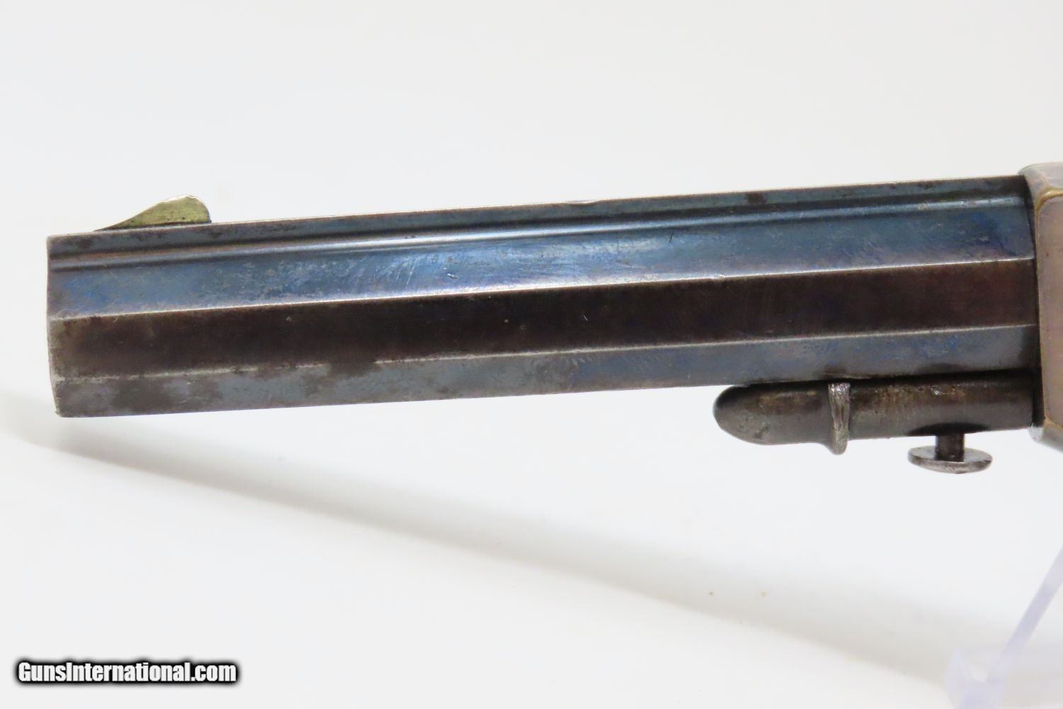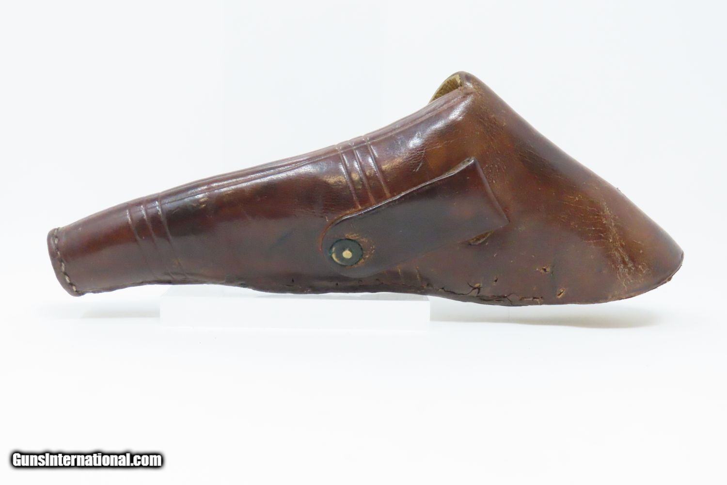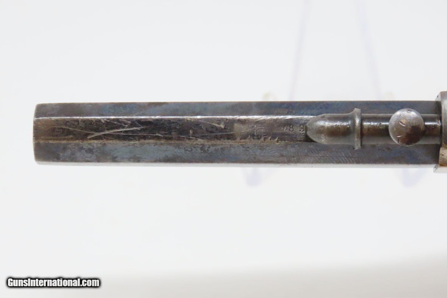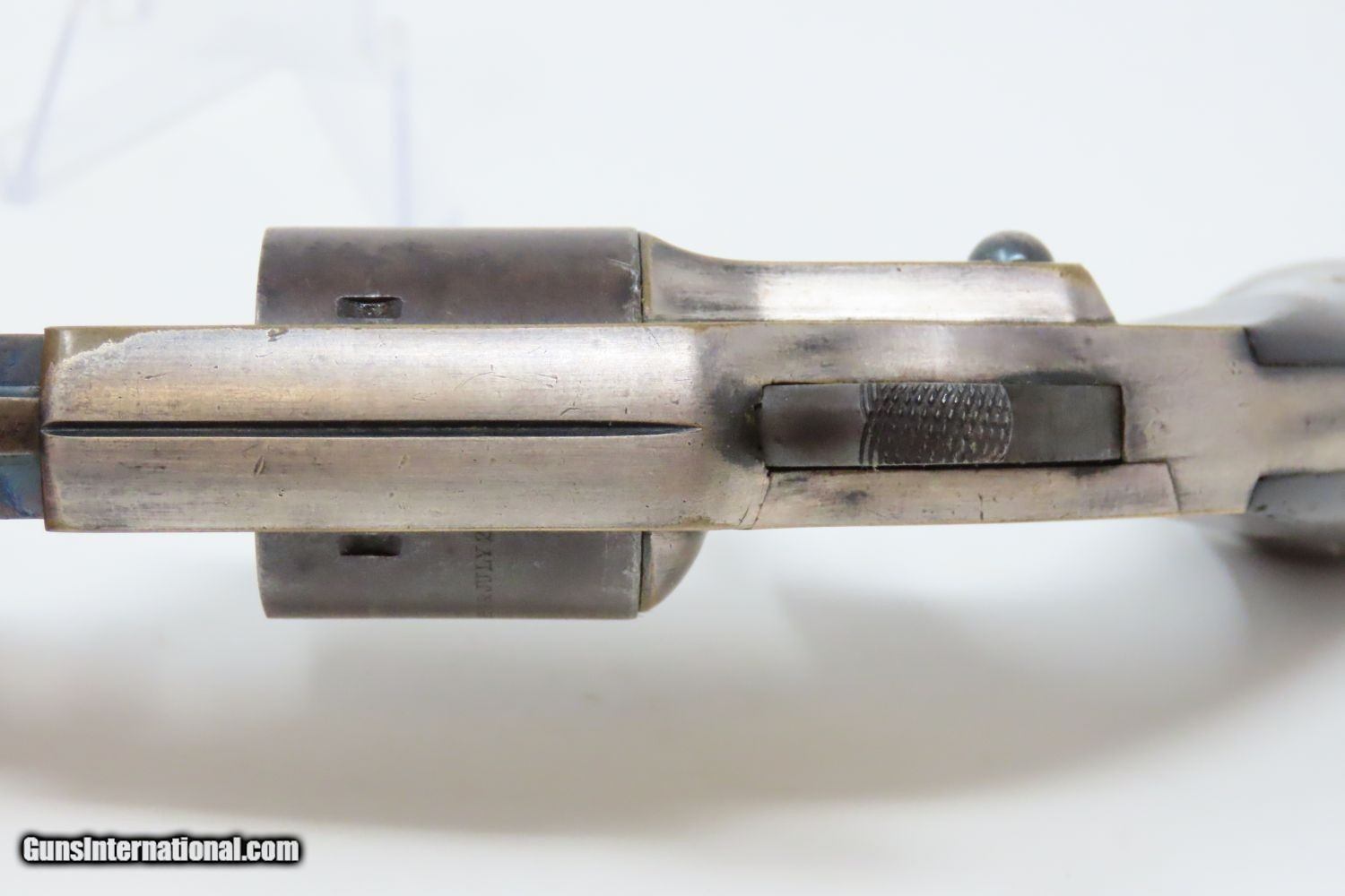 Description: Antique MERWIN & BRAY Front Loading CUP PRIMED Single Action POCKET Revolver Small Scale Version of Plant’s Army Model with HOLSTER! Here we present an antique Merwin & Bray Front Loading Plant Manufacturing Company Pocket Model Revolver, made circa 1865 in New York. Makers of revolvers during the American Civil War had three choices: 1) they could take their chances violating the Smith & Wesson owned Rollin White Patent for the concept of a “bored through cylinder” to accept metallic cartridges, 2) they could continue to make percussion guns with all of their disadvantages, or 3) they could invent their own concept that was both an improvement over percussion guns and circumvented the Rollin White Patent. The latter option is what Plant’s chose. Around 20,000 of these were manufactured in mid-1860s. Atop the barrel rib "MERWIN & BRAY FIRE-ARMS CO" can be read. "PATENTED. JULY 12. 1859. & JULY 21. 1863" can be seen on the cylinder. The serial number is on the barrel, the butt, the left side of the grip, and the inside the right grip. This example also comes with a leather holster with silver heart ornament. Plant’s Mfg. Co. was financed and represented by the famed firearms agents Merwin & Bray, hence their name on the top of the barrel. Their revolver featured a “cup-primed” and front-loading concept, which was among the best attempts to get around S&W’s 12-1/2 year stronghold on cartridge revolvers. They found relative success with the public rather than with the military. The overall condition is fine. Original blue finish and silver plate on the brass frame. The action is strong. Glossy rosewood grips. The bore is in good shape with nice rifling. The leather holster is near fine. A truly handsome little rig from the 1860s! Own the original! This is a legitimate antique and not a reproduction. Barrel is 3-1/2 inches. Caliber: .30 Cup-Fire Overall condition as seen in photos. Very Fast. Very Safe. FREE SHIPPING WORLDWIDE. Delivered directly to your door by express mail! Guaranteed AUTHENTIC & Includes CERTIFICATE OF AUTHENTICITY. ancestryguns $1625 #200883 SOLD Antique: Yes |