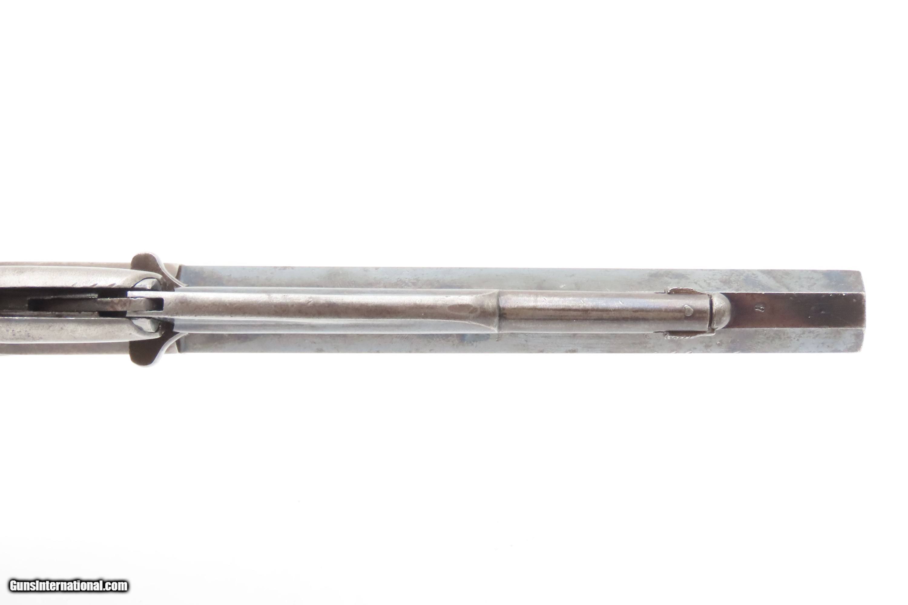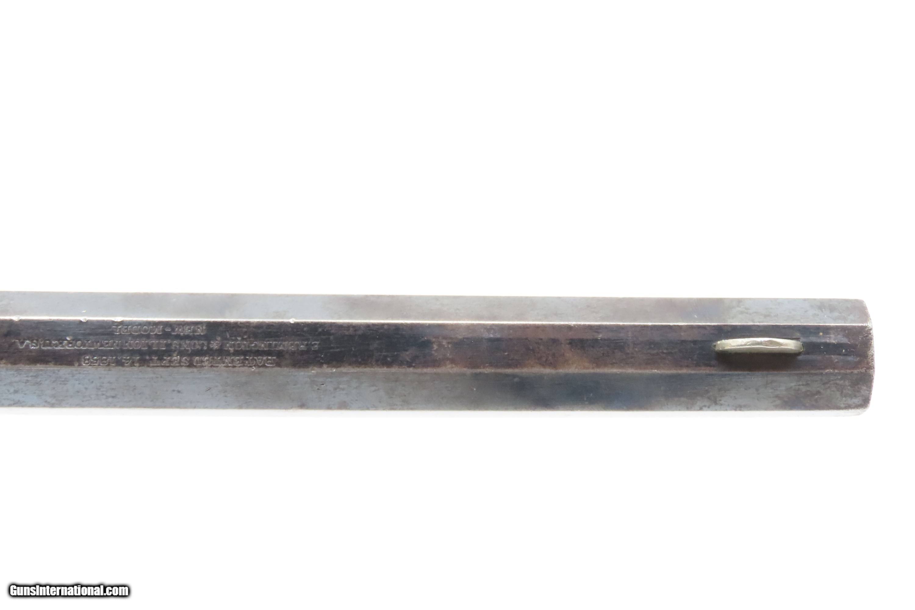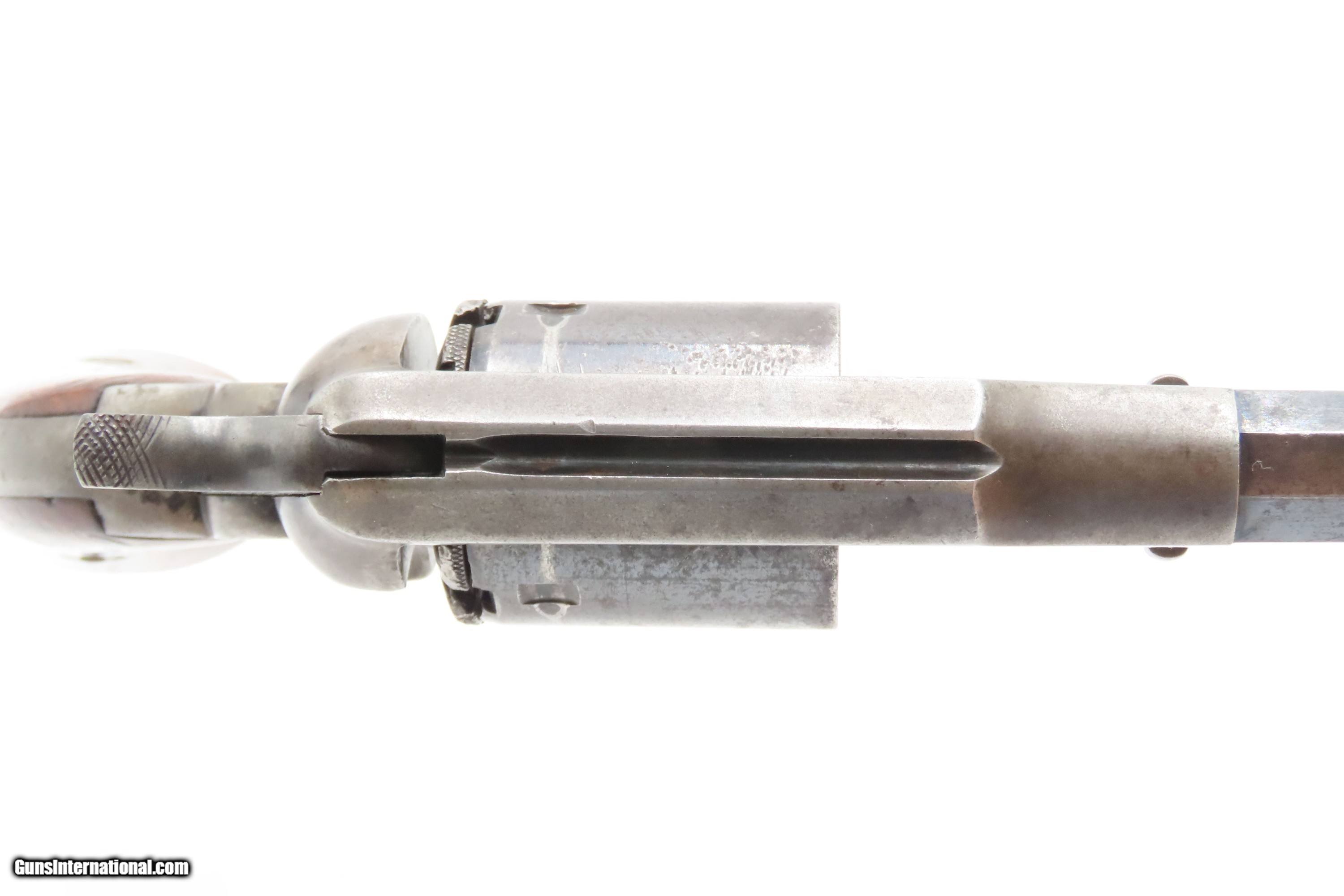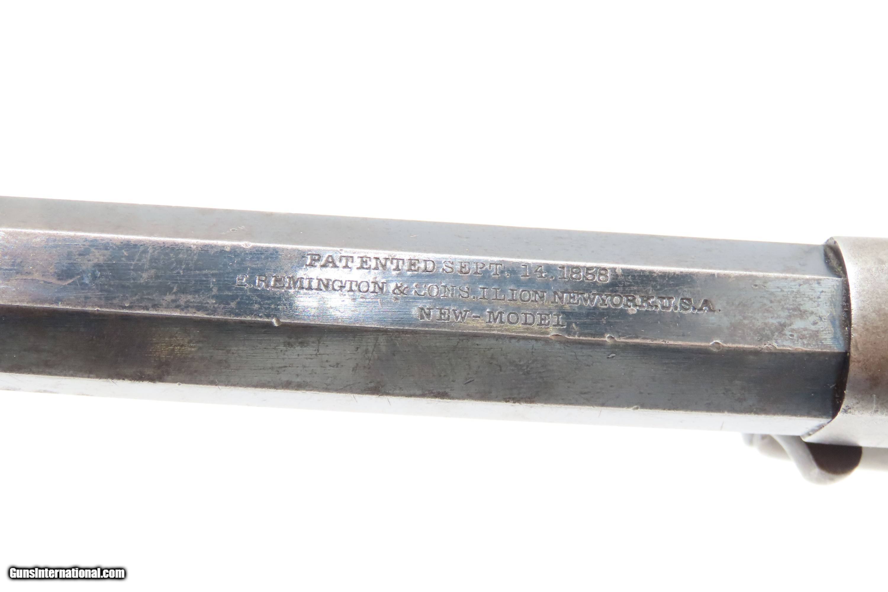 Description: Antique REMINGTON-RIDER Percussion New Model BELT Single Action Revolver SCARCE .38 CF Caliber SELF DEFENSE Revolver Here Ancestry Guns presents an antique Remington-Rider New Model Belt Percussion Revolver, made circa 1865 to 1873 in Ilion, New York. Production of this revolver started out as a single-action, percussion revolver that was produced from 1863 to 1873. These revolvers were made during a period when Smith & Wesson owned the Rollin White Patent. Companies like Remington and Colt were relegated to continue production of revolvers with the percussion firing system until the patent expired in 1869. Once this happened, companies lost no time fitting their percussion models with various cartridge conversions or incorporating this new technology at the factory. The later manufactured revolvers in this series had the ability to fire either cartridge or percussion cylinders from the same gun. It was a smaller version of the New Model Army and Navy revolver, but larger than the New Police. The revolver was a result of a collaboration between Remington Arms and Joseph Rider of Newark, Ohio. The new gun was introduced in 1863 and would remain in production for a decade, with total production between 2,500 and 3,000 revolvers per “Flayderman's Guide”. As the guns were serial numbered in the same range as the Remington New Model Single Action Revolvers, it is difficult to know for sure how many were produced, and a lack of surviving factory records make investigation into the matter difficult. The New Model Belt series of revolvers appear to be a concerted effort by Remington to produce a handy, personal, self-defense type revolver that would be at home in a belt holster or even a large overcoat pocket. This revolver features a six-shot cylinder chambered in .38 centerfire caliber and was designed for defensive carry. The overall condition is fine. Original blue barrel and cylinder finish is preserved. Original silver on the trigger guard. The bore is mostly bright with strong rifling. The action is strong, although when the muzzle is pointed up the cylinder does not index. Very good grips contain average wear. Markings are legible. Matching serial numbers on the barrel, trigger guard tang, grip frame, and both grips. Own the original! This is a legitimate antique and not a reproduction. Barrel is 6-1/2 inches. Caliber: .38 Centerfire Overall condition as seen in photos. Very Fast. Very Safe. FREE SHIPPING WORLDWIDE. Delivered directly to your door by express mail! Guaranteed AUTHENTIC & Includes CERTIFICATE OF AUTHENTICITY. $2995 #259336 Antique: Yes Price: $2,995.00 Buy Now Pay with